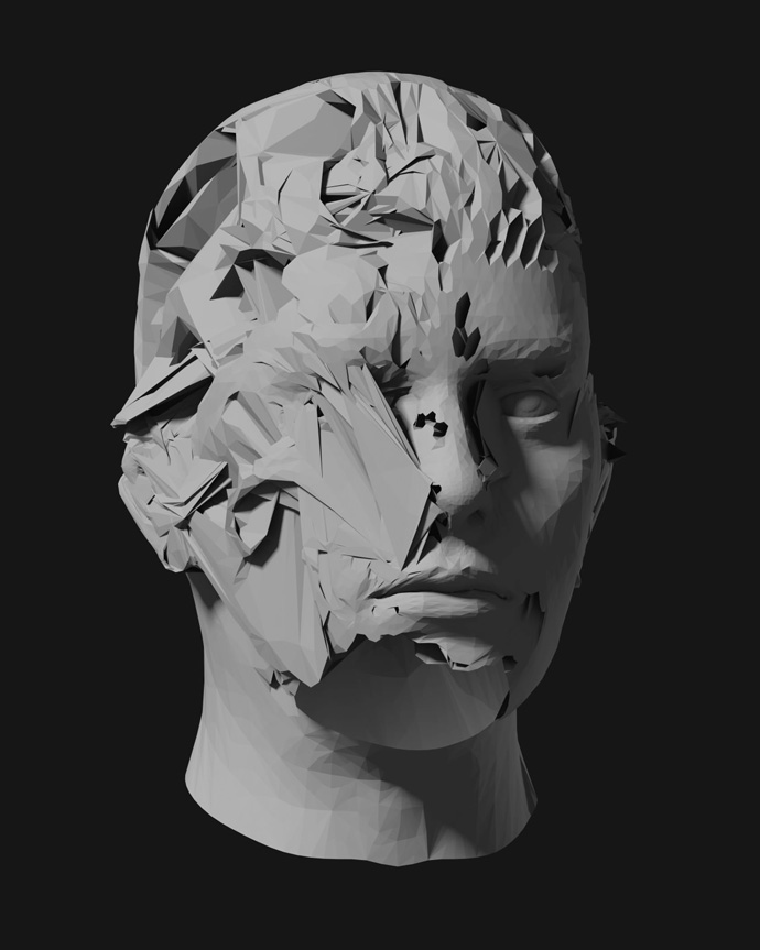 Mark: Initially it was simple curiosity. Glitch Art has been a phenomenon that has been going on for several years. I had experimented a little with methods that were already commonly in use. My personal breakthrough came when it occurred to me that similar methods could be applied to 3d file formats.