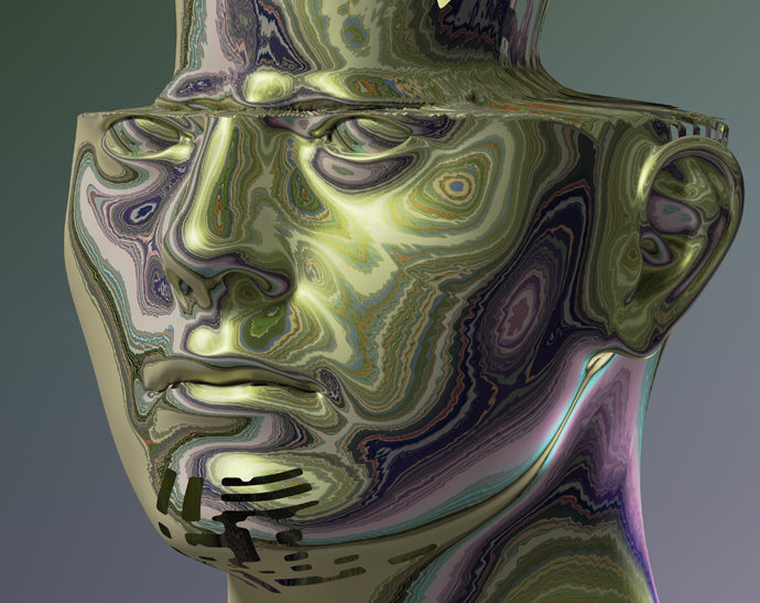 Mark: While I am thoroughly enmeshed in digital art and its possibilities, in some ways I’m a very traditional artist. You might even say I am a romantic and a humanist. I still believe that art makes no sense except as a manifestation of human intentionality. Even when an artist contrives an utterly mechanical algorithm to generate an image, the selection and interpretation of that image is a function of human sensibility. We humans really are the most interesting things there are! It is often said that there has been a progressive demotion of humanity. Copernicus demonstrated that we’re not at the physical center of the Universe. After Darwin we knew we were not some special creation exalted above nature. Now accelerating technological progress and especially the prospect of artificial intelligence raises the specter of human obsolescence, or at least some trans-human future in which our cherished values will be meaningless.. and, yes, that may happen.. but, in the meantime, we are “it”. We are the drivers, the source of meaning in this world. In a sense, we really are at the center of the world. For me, the image of the human face and the human head is somehow emblematic of this. We look at the face in a painting by Van Eyck, and it is as though that person is still looking at us, still projecting his or her individual humanity through the intervening centuries.