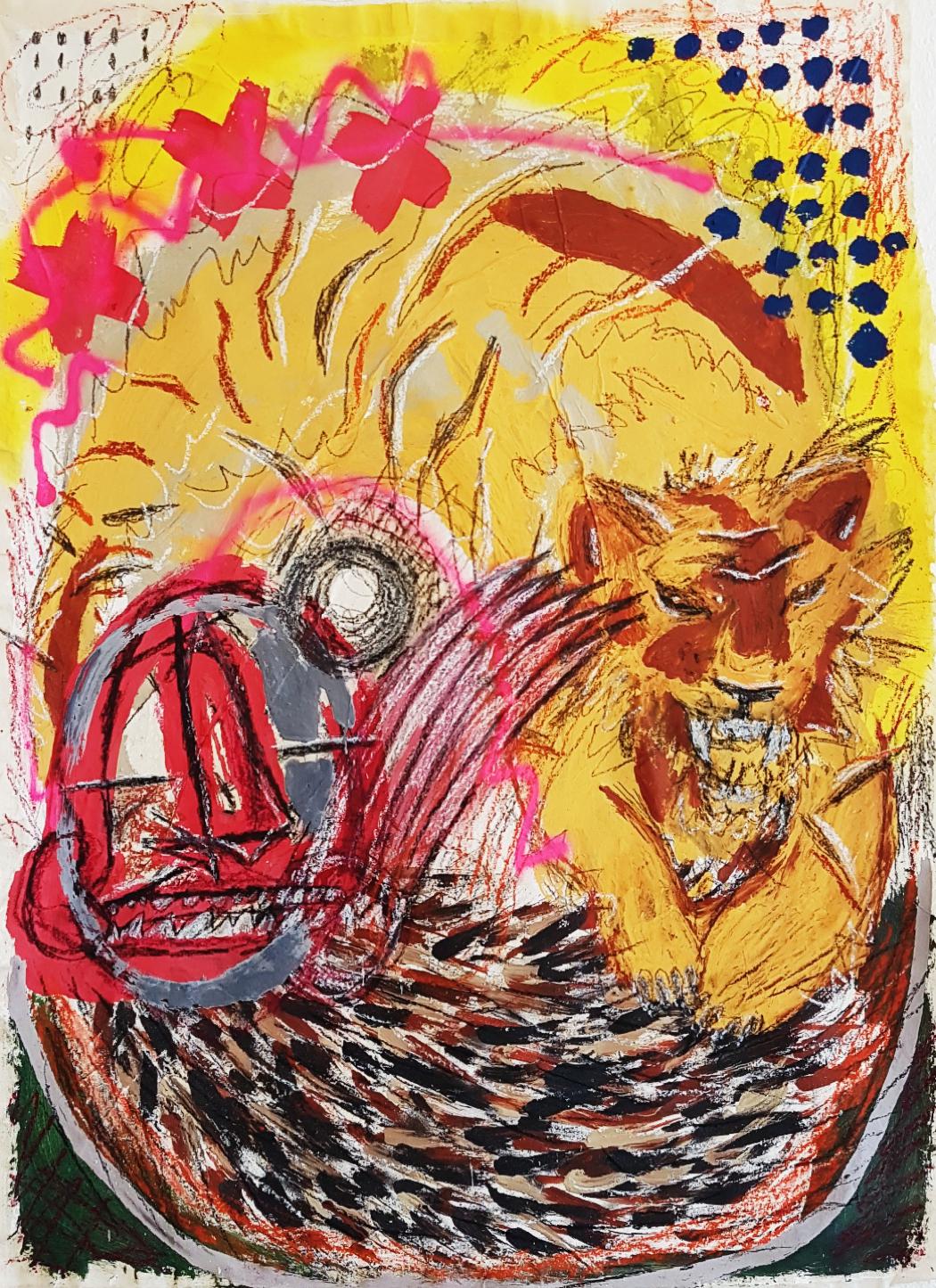 Rafaella Braga is a Brazilian emerging artist living in Berlin. As a woman artist, she likes to run away from the softness stereotypical of femininity, always using different materials, working with a striking, strong and fearless trait, highly influenced by the subversive. Braga’s work talks about awakeness and transmutation. Every single piece represents herself and her present feelings, like a way to uncover ideas and emotions hidden by shame or fear. “Because what we most fear is what can revolutionize when transformed into love”.