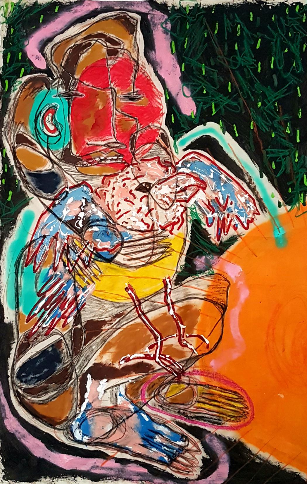 Rafaella: When you are a low-income artist, you kinda learn how to improvise and take advantage of any mediums, expressing with your fingers or brushes, using acrylic paint as much as using wall paint. For now, I have fallen in love with pastels and the way they translate me into a velvety texture. You can’t edit with pastels or start over like in oil painting, for example. Nothing dries, what you do stays exactly as it is. I also like the sprays roughness and how their lines can affront.