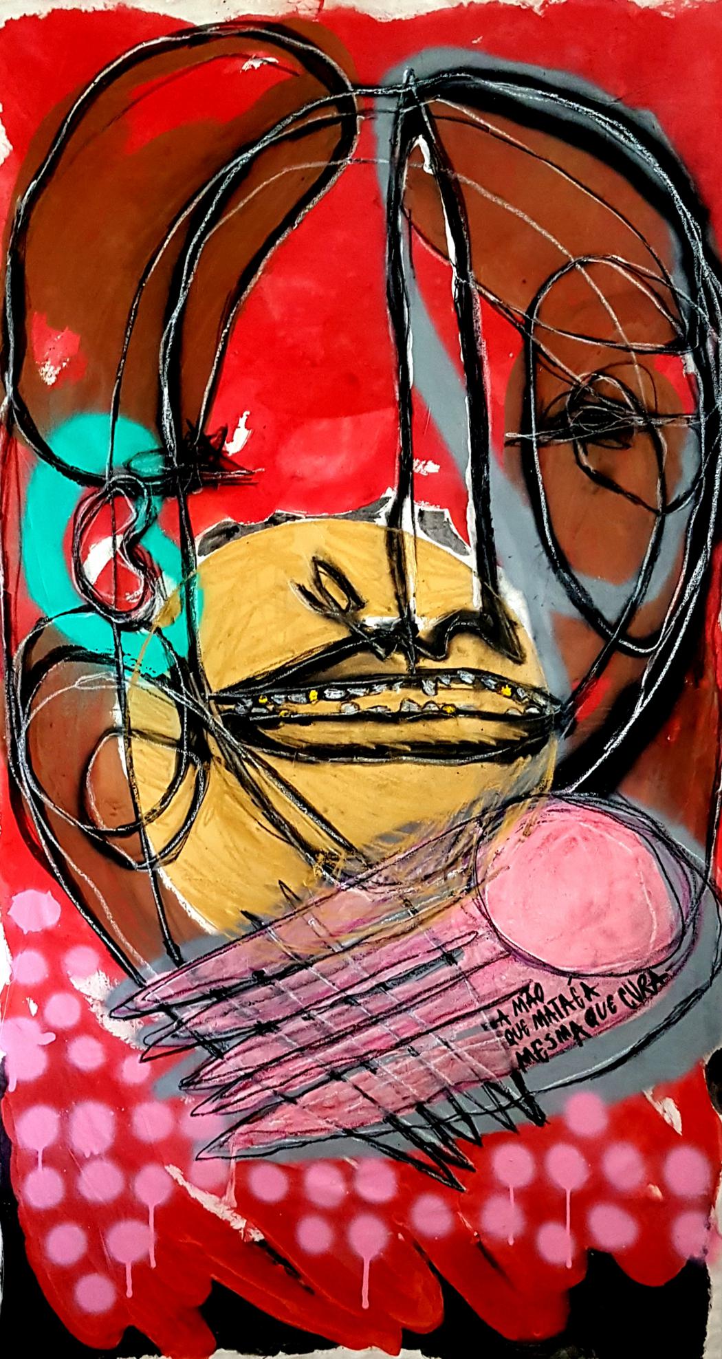 Rafaella: I just want to create something that is honest to who I am. The act of making art as a young Latin woman, in a hegemonic white patriarchy society and as an independent artist, self-managed and self-trained, in a system that delegitimate and underestimate this, makes me find myself denying limitations, despite the social mores and norms, going beyond gender construction and female identity, representing those who identify with me. Making more than feeds for the hierarchy of fine art with the academically correct and undoing the doctrines with an idiosyncratic voice saying “Fuck off. I don’t want anyone fucking telling me shit. Hell, at least on this fucking canvas I’ll be free.”