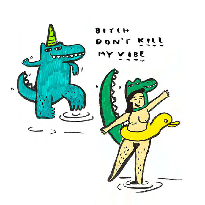 ShutUpClaudia: I’m a young Portuguese girl without a moustache based in Milan, where I work as illustrator and art director. In my free time I’m a clown and I call myself Tequila, as my artistic name.