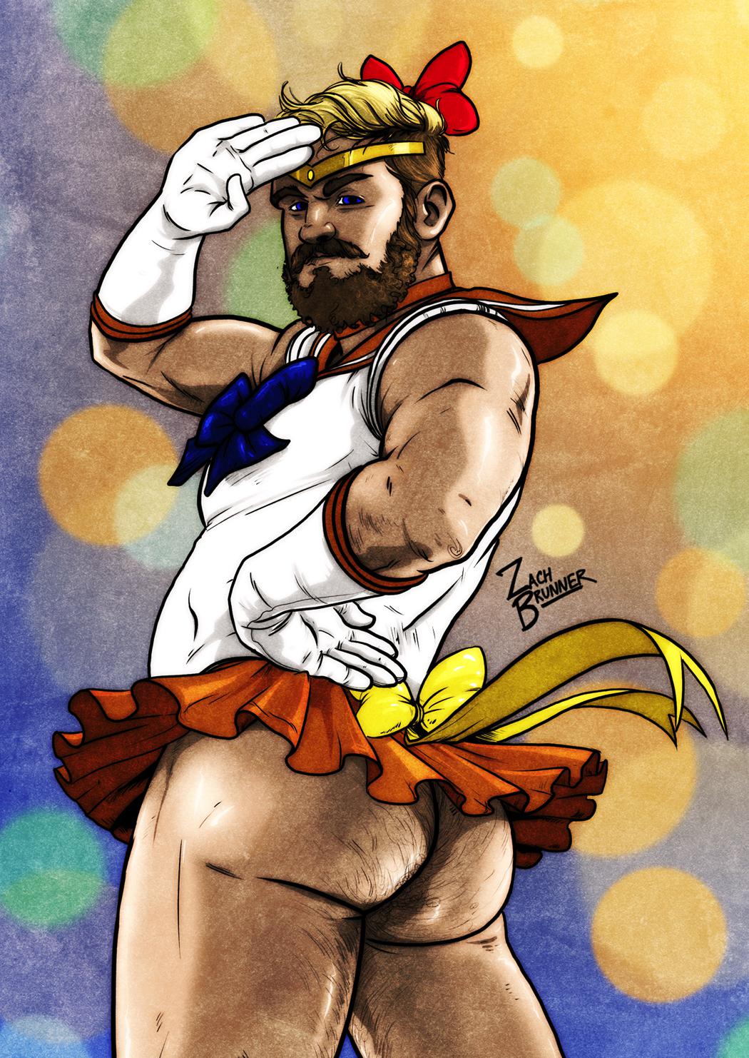 Zachary: Currently, I think I’m trying to fight against the modern idea of masculinity and what that really means. I like to draw men in dresses, in silly, compromising positions, wearing pink, and looking pretty. The way we’re used to seeing women in pinup art portrayed. I think I’m trying to start a conversation, at least in my own head, of what really is masculinity? And to be honest, why is it so damn important? If I draw a man who’s confident in himself and his body wearing a dress, is he any less masculine? Why is defining ourselves really important in the first place? Instead of caring about whether people are masculine and feminine, we should focus more on being true to ourselves, having confidence in who we are, and making the world better than it was yesterday. I think we need to move forward to a world where we don’t define ourselves by whether or not we’re “Masc” or “Femme”, but instead by the quality of our hearts and deeds.