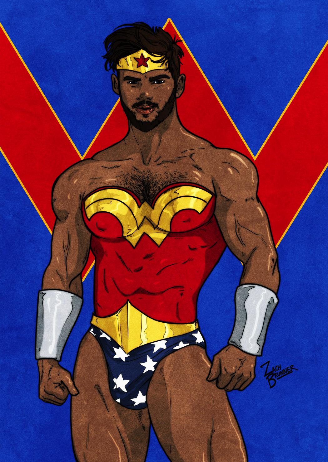 Zachary Brunner is a New York-based comic and storyboard artist, “trying to save the world one butt at a time.” Brunner has been working freelance since 2011 when he illustrated his first graphic novel, The High Cost of Happily Ever After, written by Eisner award-winner Jim Krueger. Zachary is a real game changer. Are you tired of seeing female superheroes hypersexualized in tiny outfits but males – let’s say it – very muscular and manly but never in a sexy way? Brunner is taking this real problem to another level, creating genderbending versions of the classic superheroes we know – and we love it!