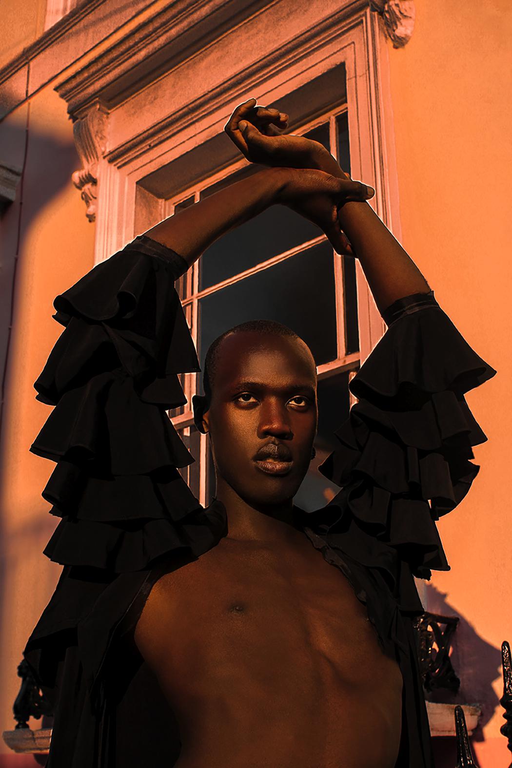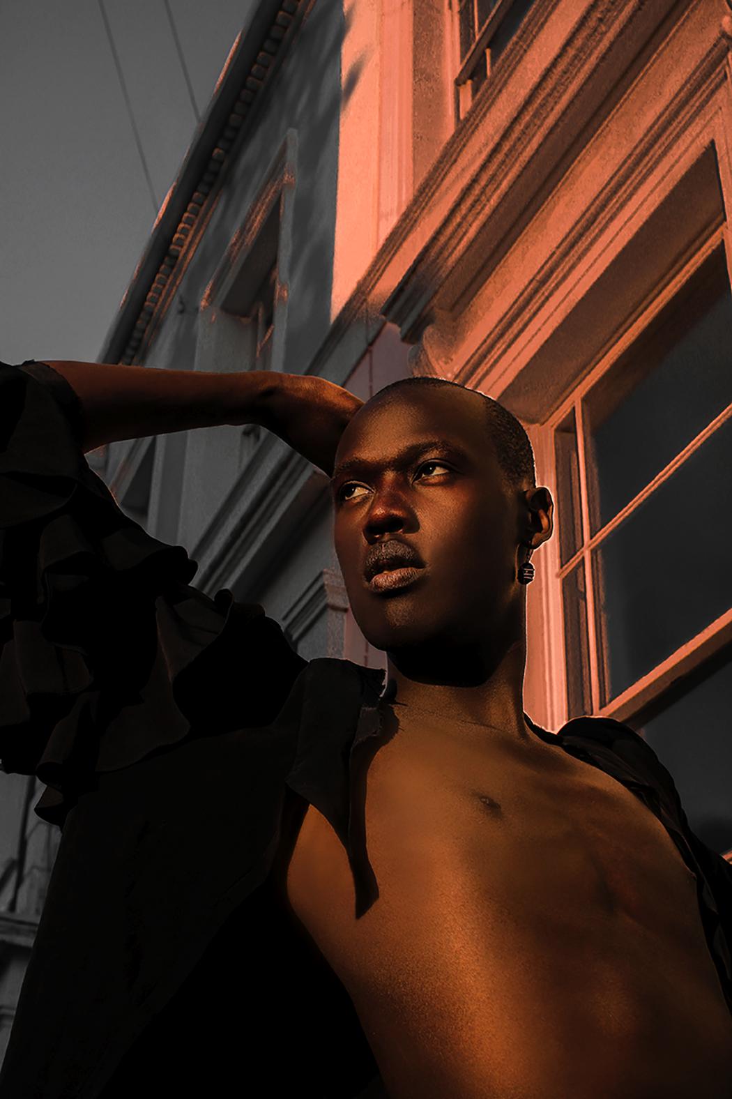 Jugu is a model and performer, born in Uganda, and moved to London when he was 15 years old. He’s been in ballroom for two years and counting is part of the Kiki House of Louboutin in the Kiki scene and walks Runway and Vogue fem at balls.