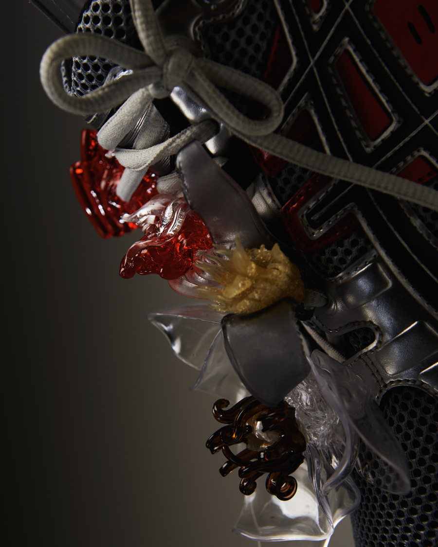 For this edition of Crafts for Mind, Tétier has reimagined Gel NimbusTM 9 sneakers, a model which she wears every day. She brings her special touch without altering the model by creating a series of handmade jewellery in found plastic. The wearer can decide whether to wear the shoes with or without the shoe accessories, making them completely personalisable.