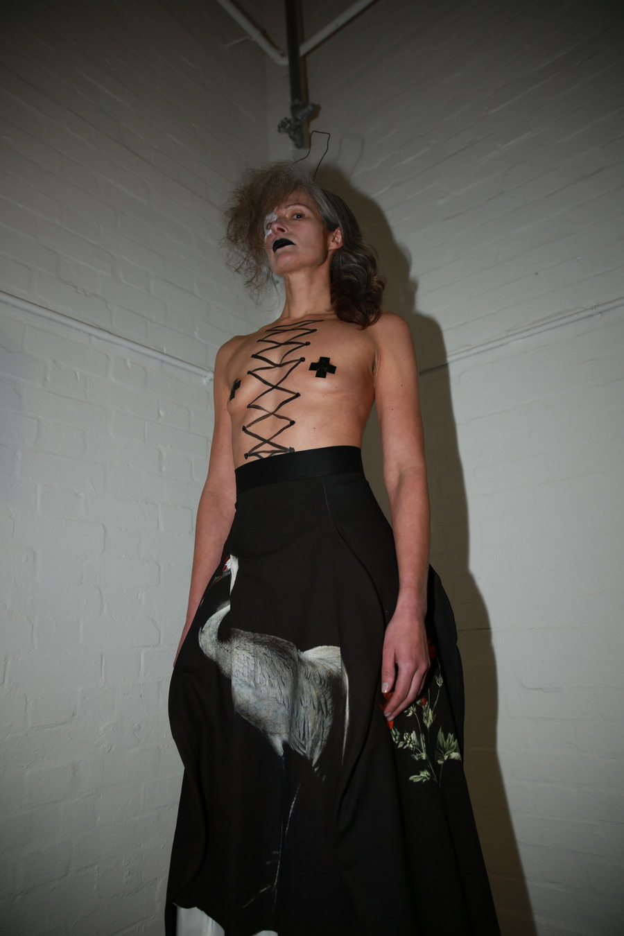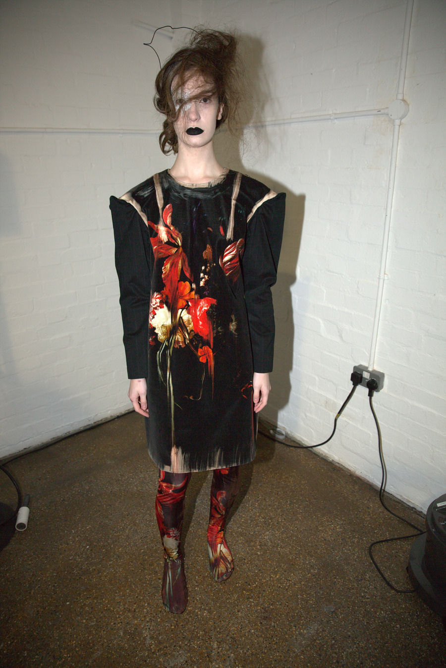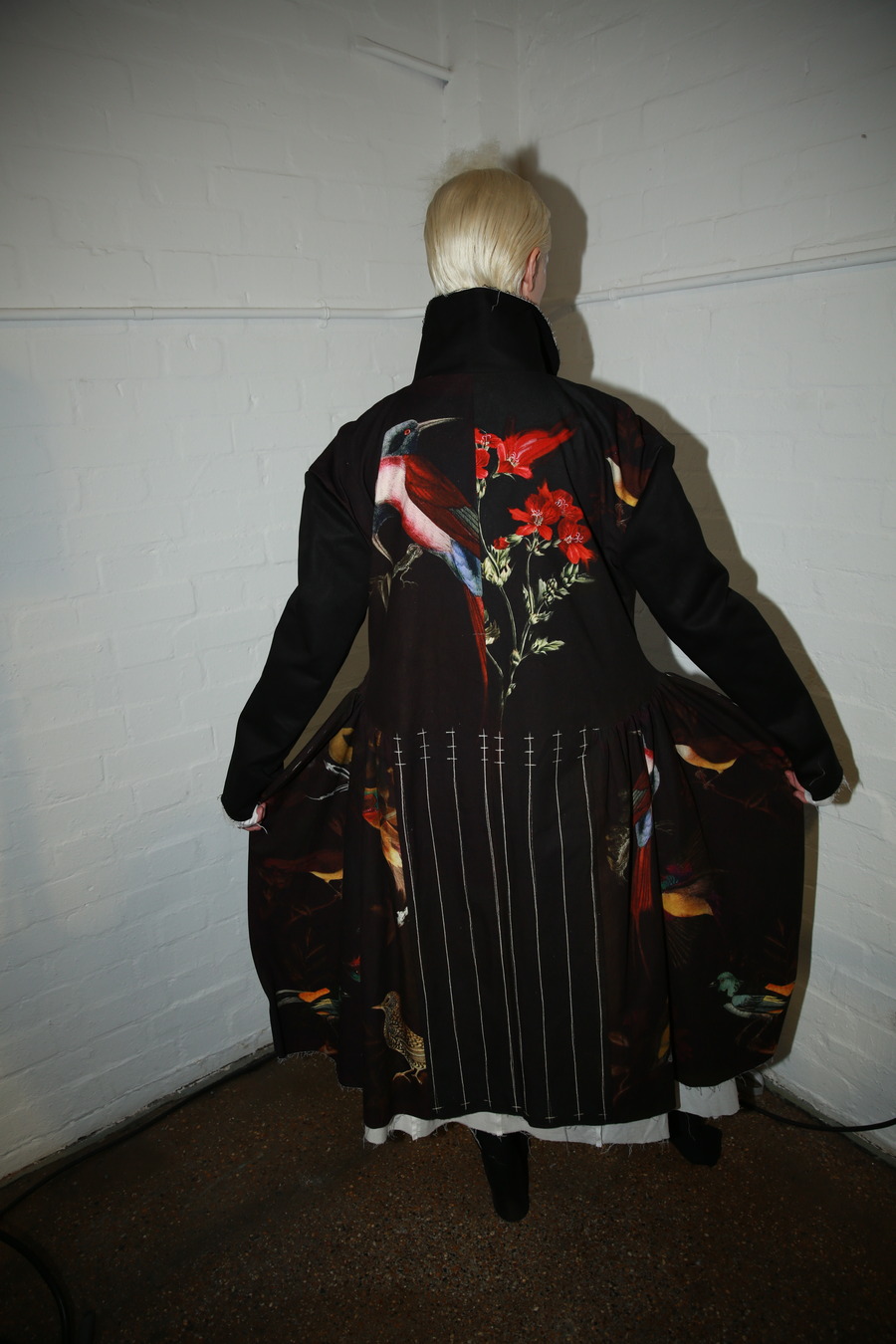 In this collection, bilateral symmetry is corrupted; bold prints feature animal mutations, reformed and abnormal plants, and distorted and dissolving objects. The garments, sometimes recognisable, sometimes unfamiliar respond to asymmetry in both subtle and overt ways.