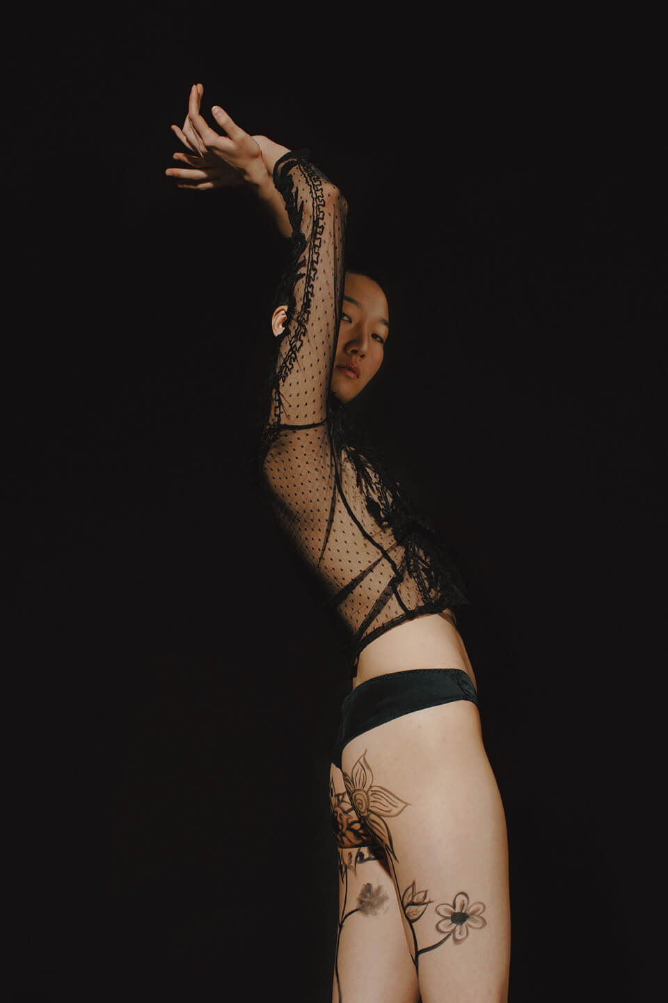 As a dancer, she looks for freedom in movement: she likes her models floating in space and expressing their inner nature as humans doing casual movements or sports inspired poses.