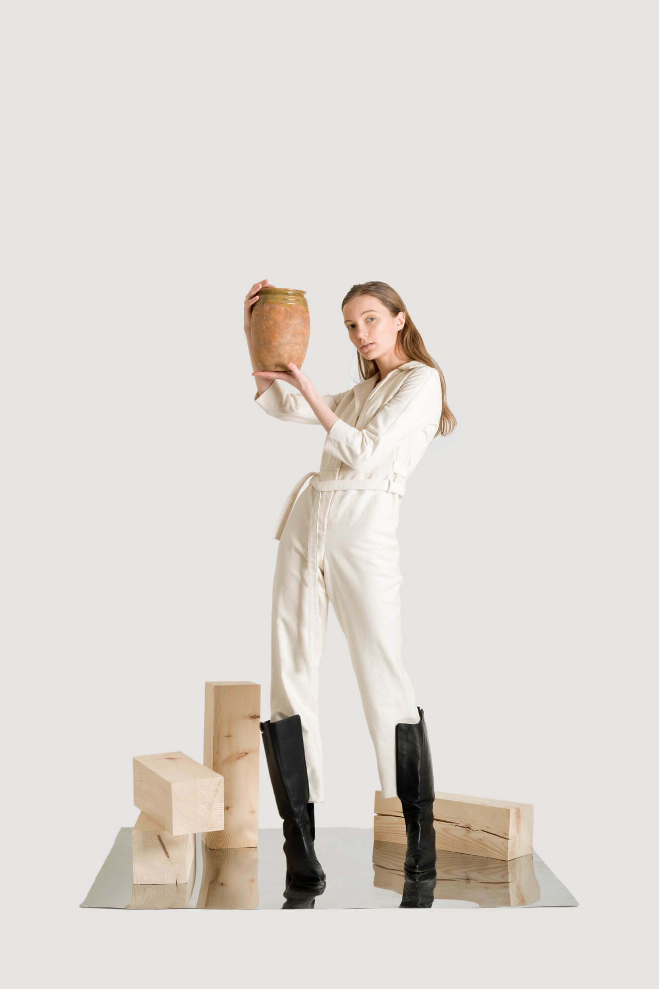 The photo session combines the textures that inspired our collection – metal and untreated wood. One of the key objects was a clay vase with a rough surface and peeling paint.”