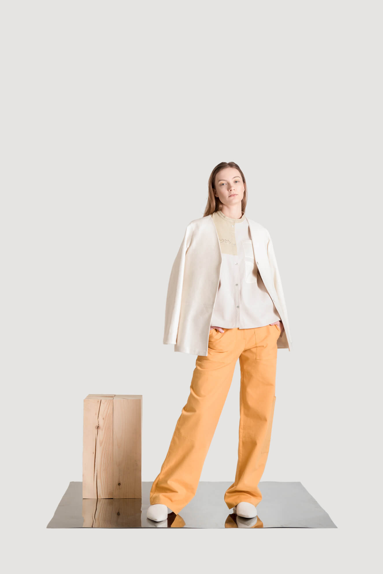 OK KINO is a team from two different fields – architecture and fashion design. We use an interdisciplinary approach in our work, complementing the collections with industrial design, art and photo projects. Authenticity is both a goal and a source of inspiration.