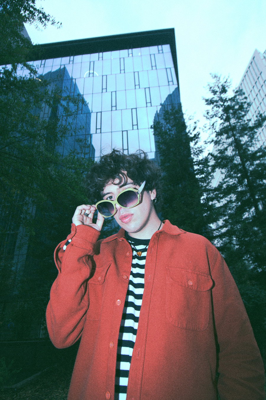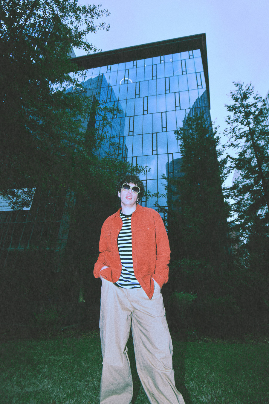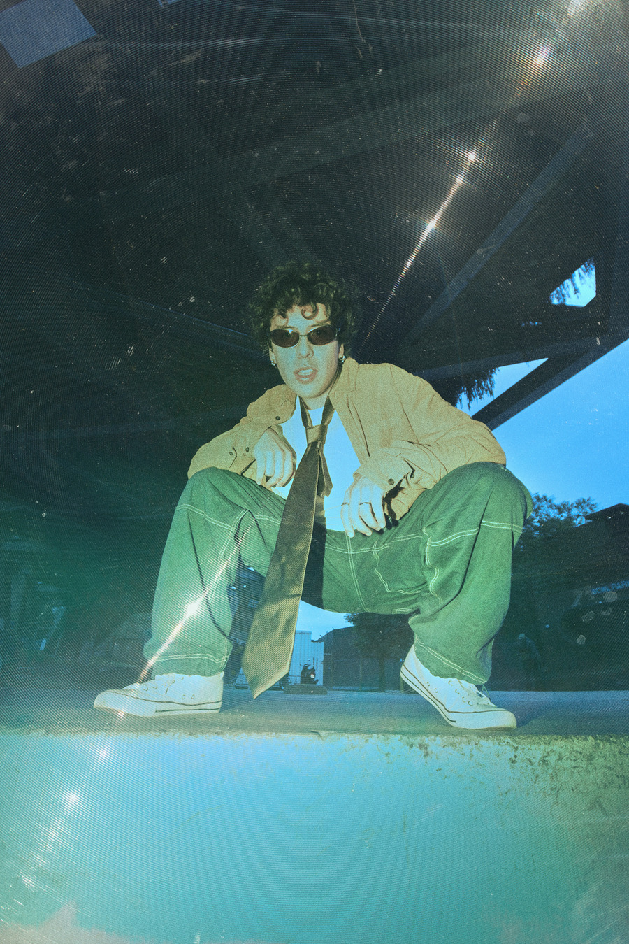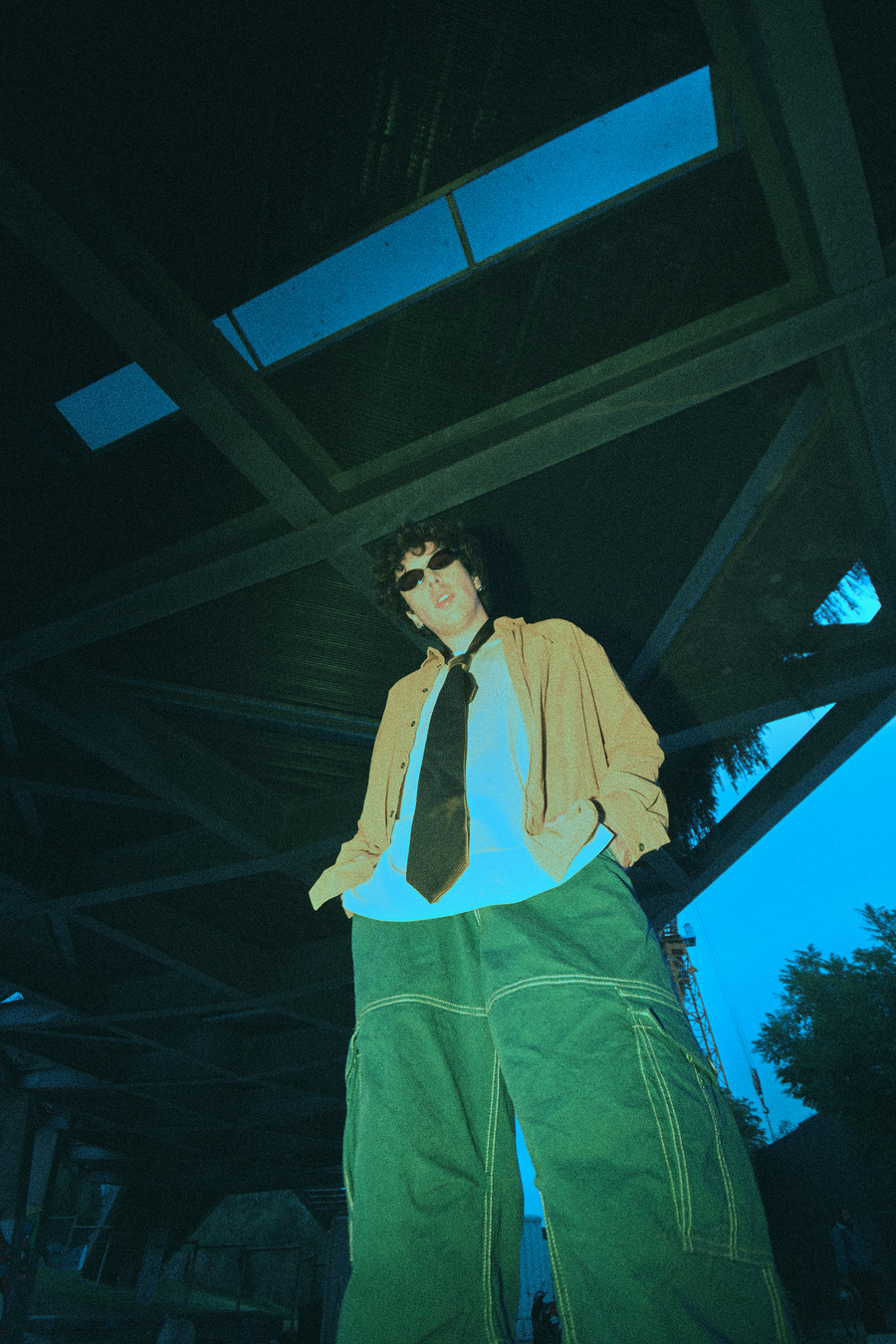 This editorial is a visual manifesto of freedom; it is a way to challenge the established norms through fun and authenticity. The outfits in the editorial are a mix of casual, simple, and comfortable styles, without straying from the idea of feeling free when getting dressed. These garments contrast with scenes that reflect modern society in all its splendour: the model is found among the shadows of buildings, in small civic parks, and even in the city’s trash, searching for a space to exist and be himself.