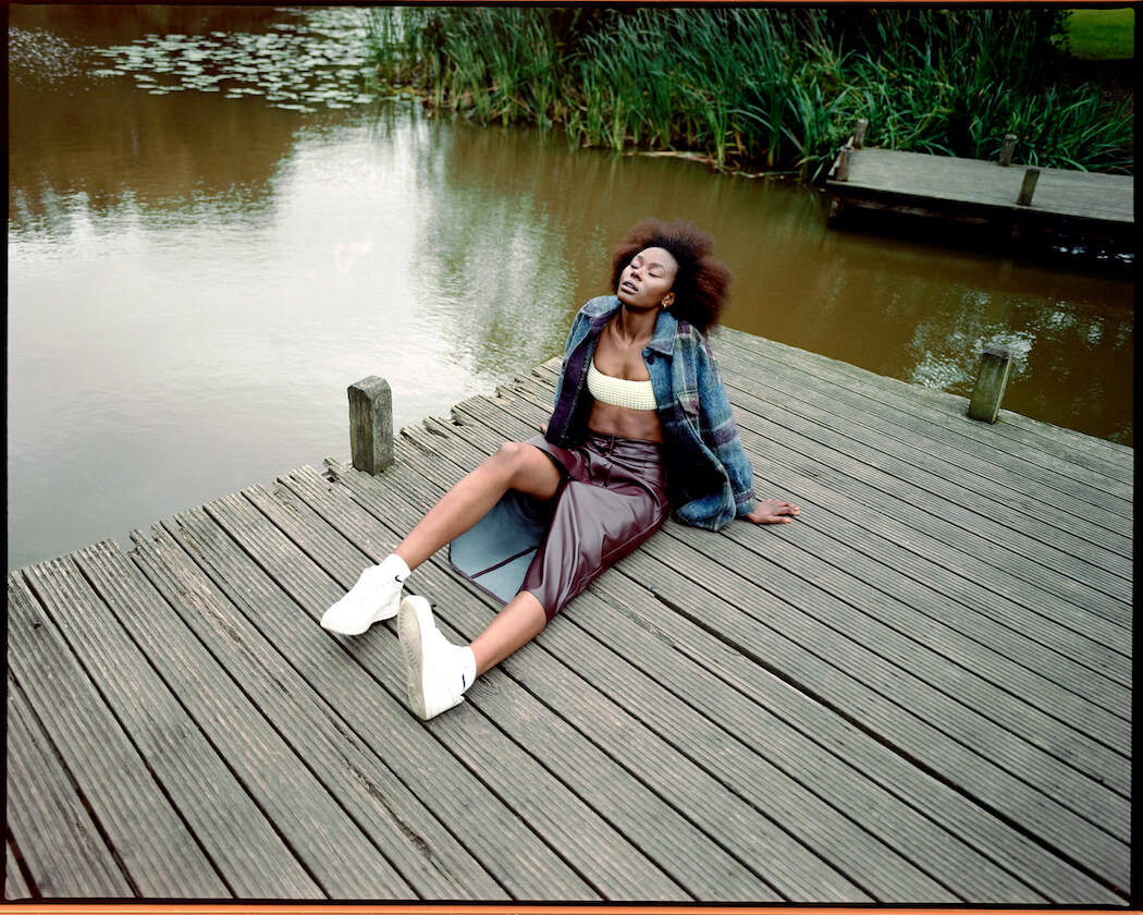 A KALTBLUT exclusive. Model is Lindiwe Dim signed to Leni’s Model Management London. Photography by Liam Young. Stylist is Kareen Prince. Makeup by Katy Jane using Clarins. Hair by Elayne Peddy. Retouched by Caitlin Davis. Creative Producer is Rimah Shah. Brands are Pak Cosmetics, Zara, J Brand, Russel & Bromley, Missoma, Mango, Loeffler Randall, & Other Stories, New Look, Joseph, Dr Martin, Ganni, Superdry, Cos, Rokit Vintage, Topshop, H&M, Triangl, Nike.