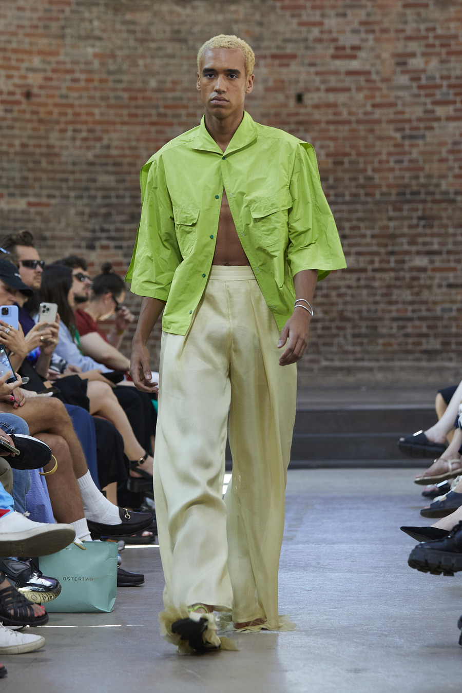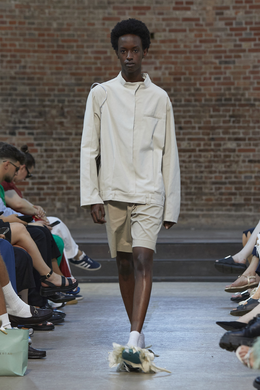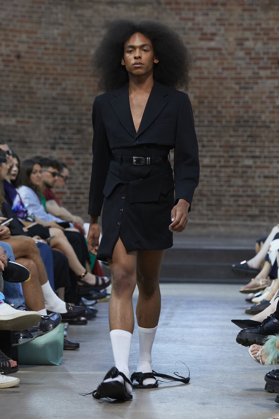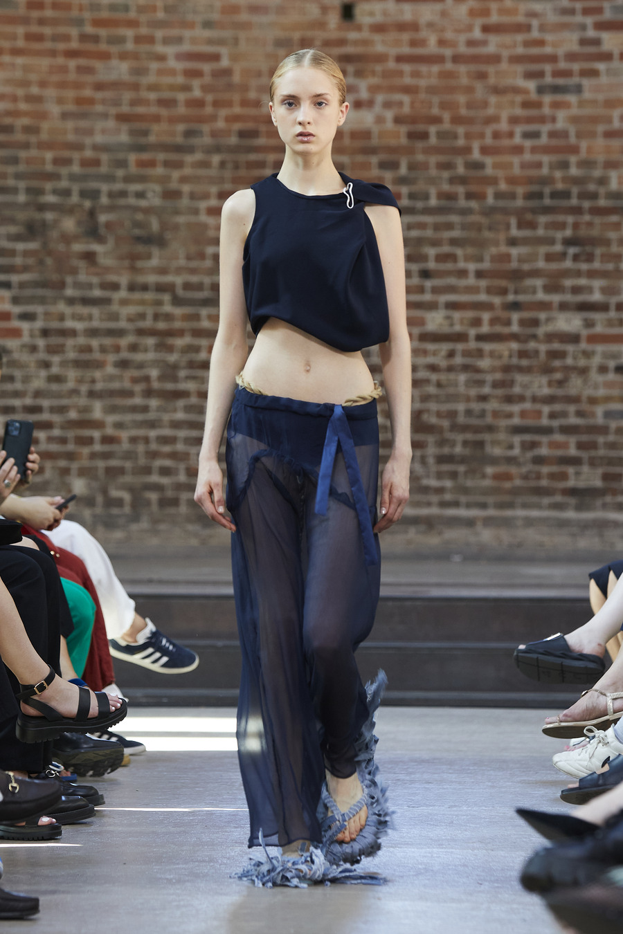 The collection breathes new life into classic tailoring, skillfully challenging patriarchal archetypes of masculinity. Organic forms disrupt rigid norms, casting historic silhouettes in a fresh light. Intricate denim sets and accessories mesmerize with hypnotic details, while jackets and outerwear embrace intertwined and knotted elements. Denim, a material steeped in feminist symbolism since its revolutionary adoption by women’s rights activists, takes center stage, amplifying the collection’s feminist undertones. Recycled suit fabrics, shirting, and knitwear evoke a dissonant echo, united by the show’s leitmotif: hair. Symbolically, “body hair” plays a vital role in each garment, emphasizing the autonomy, agency, and uniqueness of every individual who views or wears them.