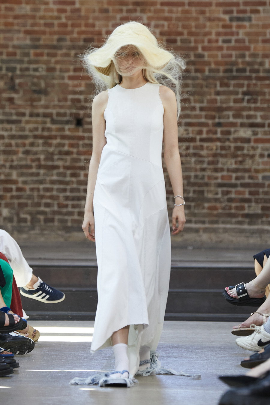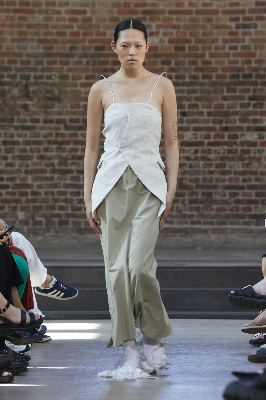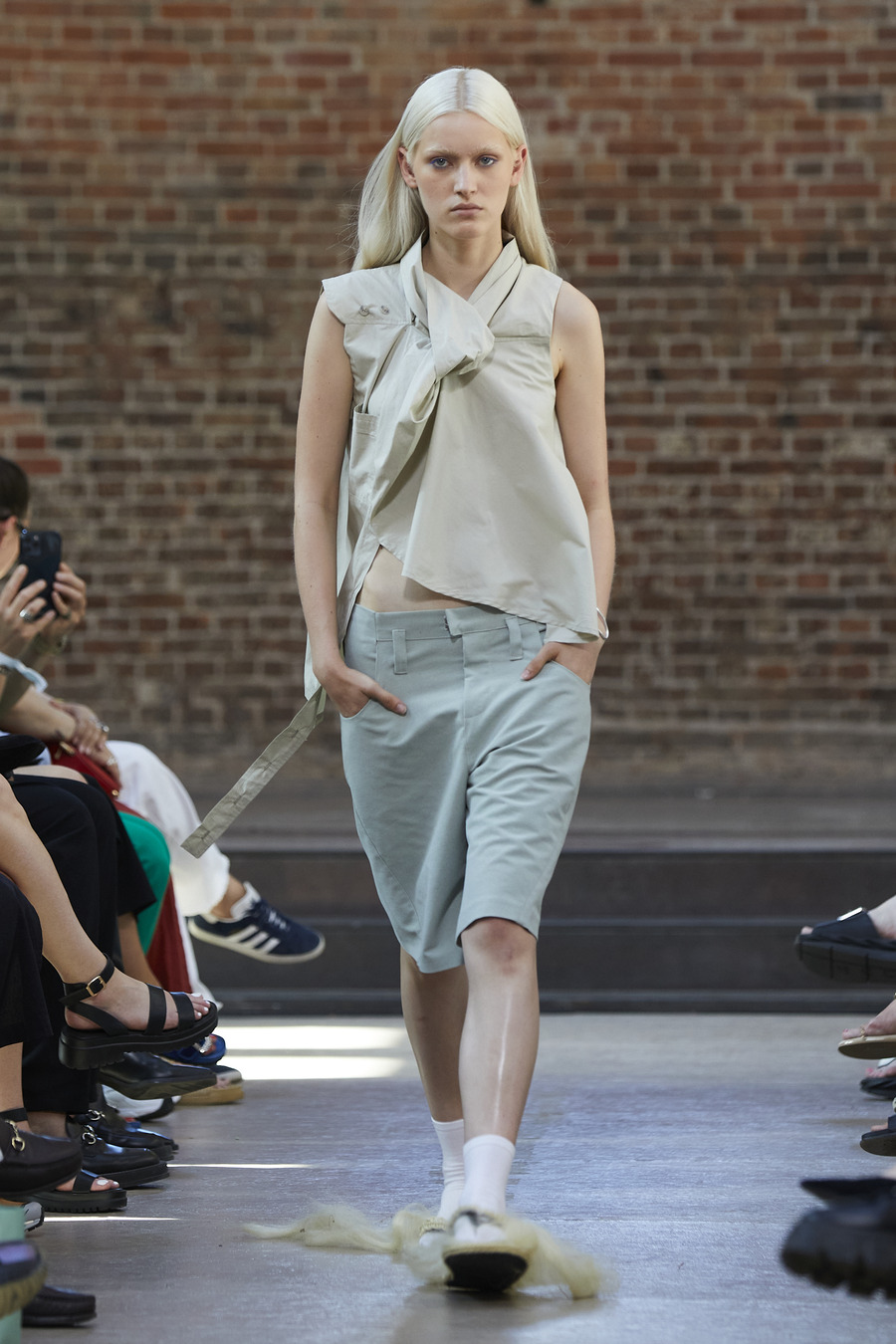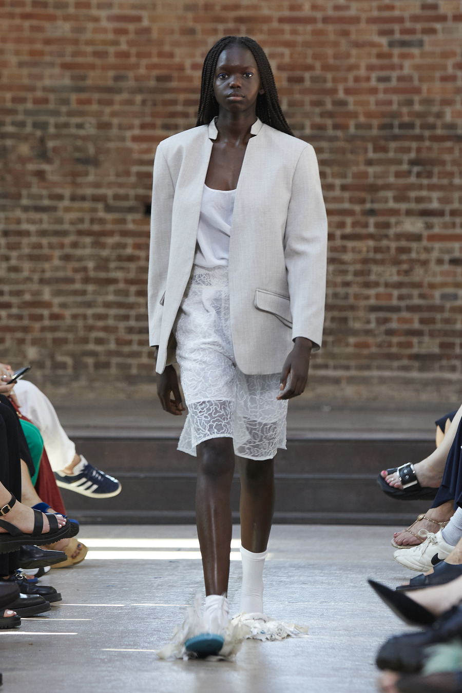 The collection breathes new life into classic tailoring, skillfully challenging patriarchal archetypes of masculinity. Organic forms disrupt rigid norms, casting historic silhouettes in a fresh light. Intricate denim sets and accessories mesmerize with hypnotic details, while jackets and outerwear embrace intertwined and knotted elements. Denim, a material steeped in feminist symbolism since its revolutionary adoption by women’s rights activists, takes center stage, amplifying the collection’s feminist undertones. Recycled suit fabrics, shirting, and knitwear evoke a dissonant echo, united by the show’s leitmotif: hair. Symbolically, “body hair” plays a vital role in each garment, emphasizing the autonomy, agency, and uniqueness of every individual who views or wears them.