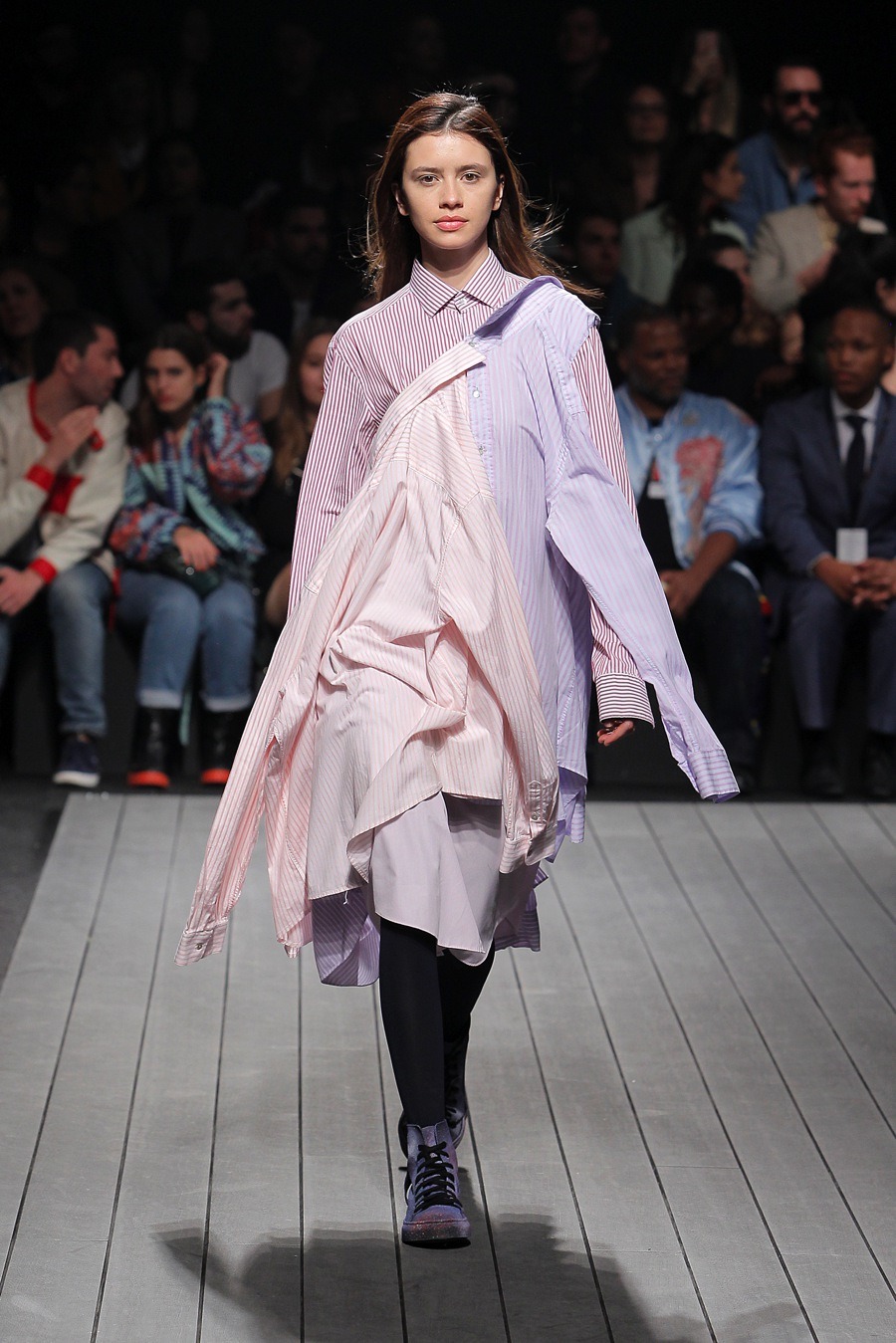 The Fall/Winter 19/20 collection was co-created with clothing sent by AWAYTOMARS members, consumers and partner brands. The collection is a critical analysis of consumption and overproduction and has as its main objective the non-production and the re-evaluation, re-design and recycling of pieces of clothing discarded by their previous users.