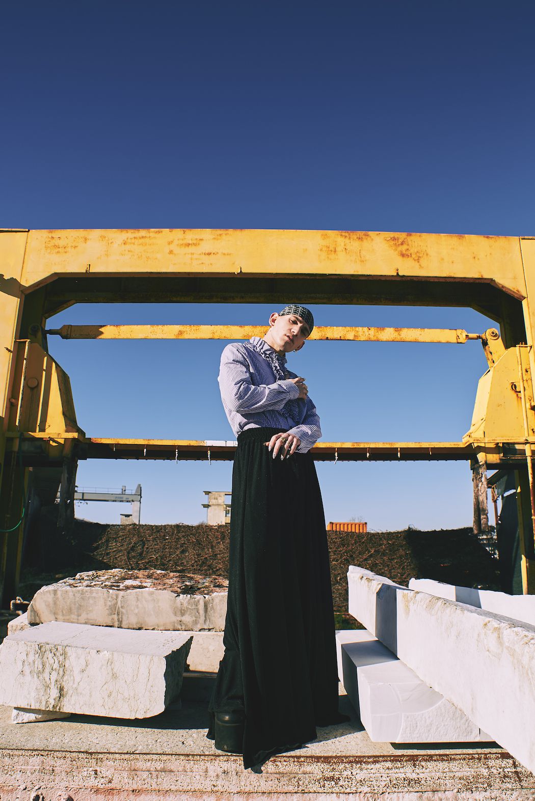 A KALTBLUT exclusive. Azazel is a visual project by Daniele Golia, a photographer based in Milan. The shoot faces the concept of fluidity and genderless that clashes with the sharp lines a really masculine face. The project is in collaboration with the stylist and emerging singer Azazel.