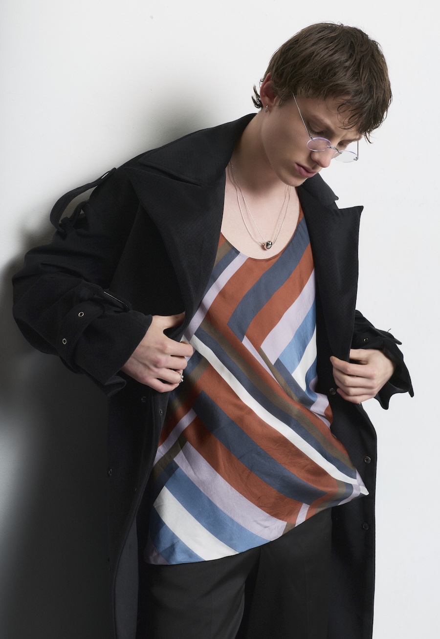 A KALTBLUT exclusive. Photography by Matthew Tate. The model is Hugo Payne, signed at PRM Agency. Grooming by Kira Amin. Styling by Nyle Amin using Ann Andelman, Hisu Park, Retro Chic, Lagomist, Jennifer Milleder, Savage x Fenty, Cubitts, Alexandar Nikolich and Luroq London.