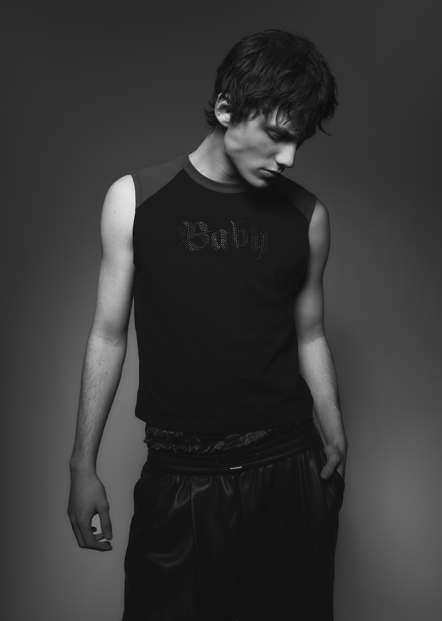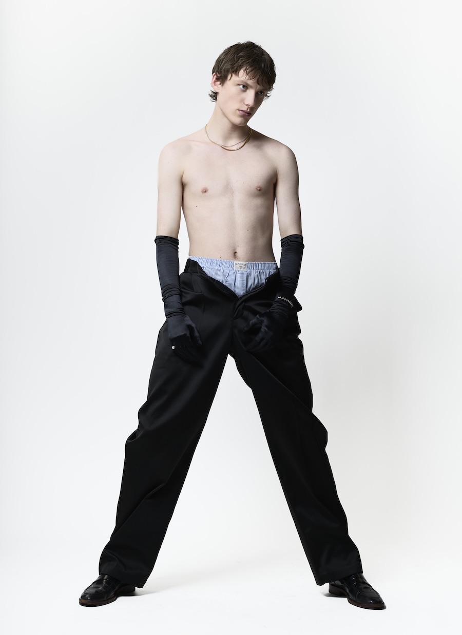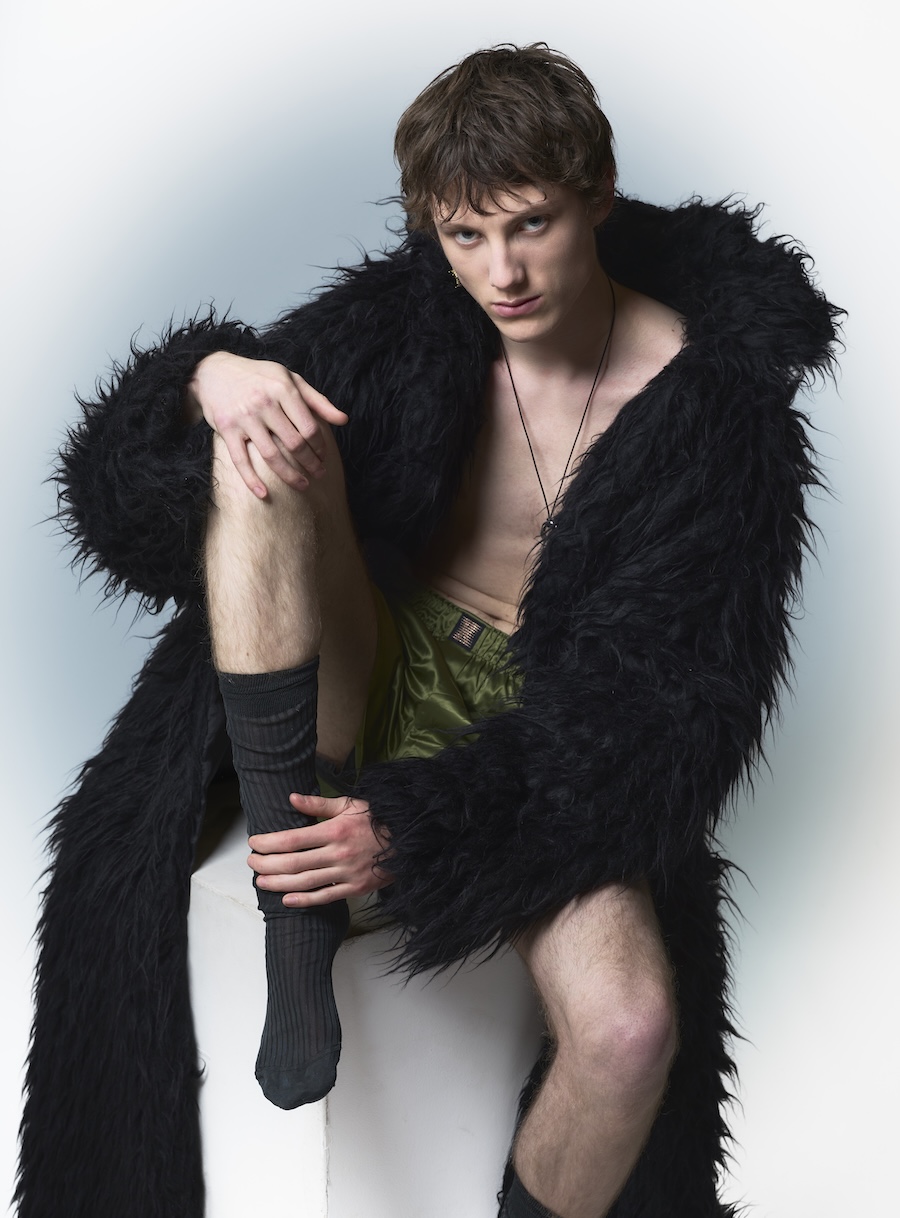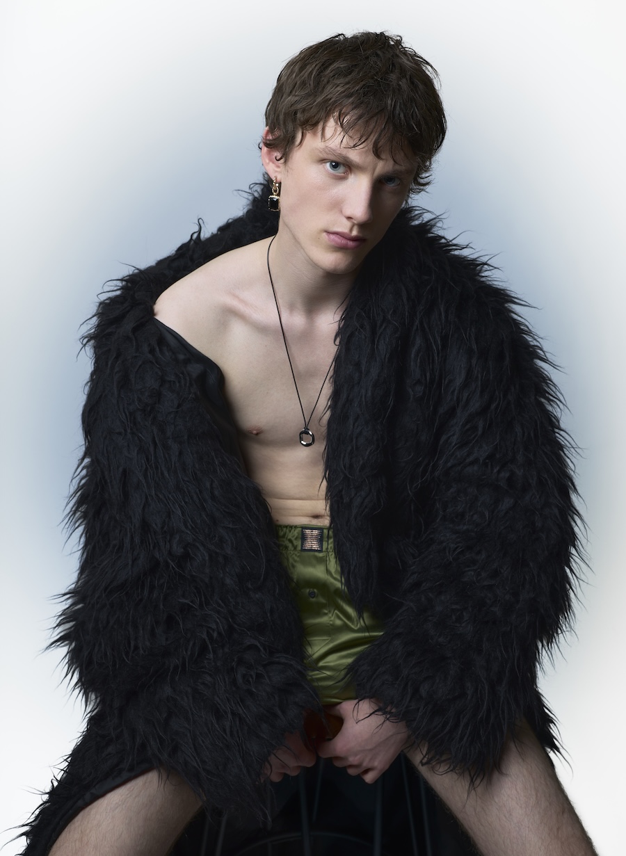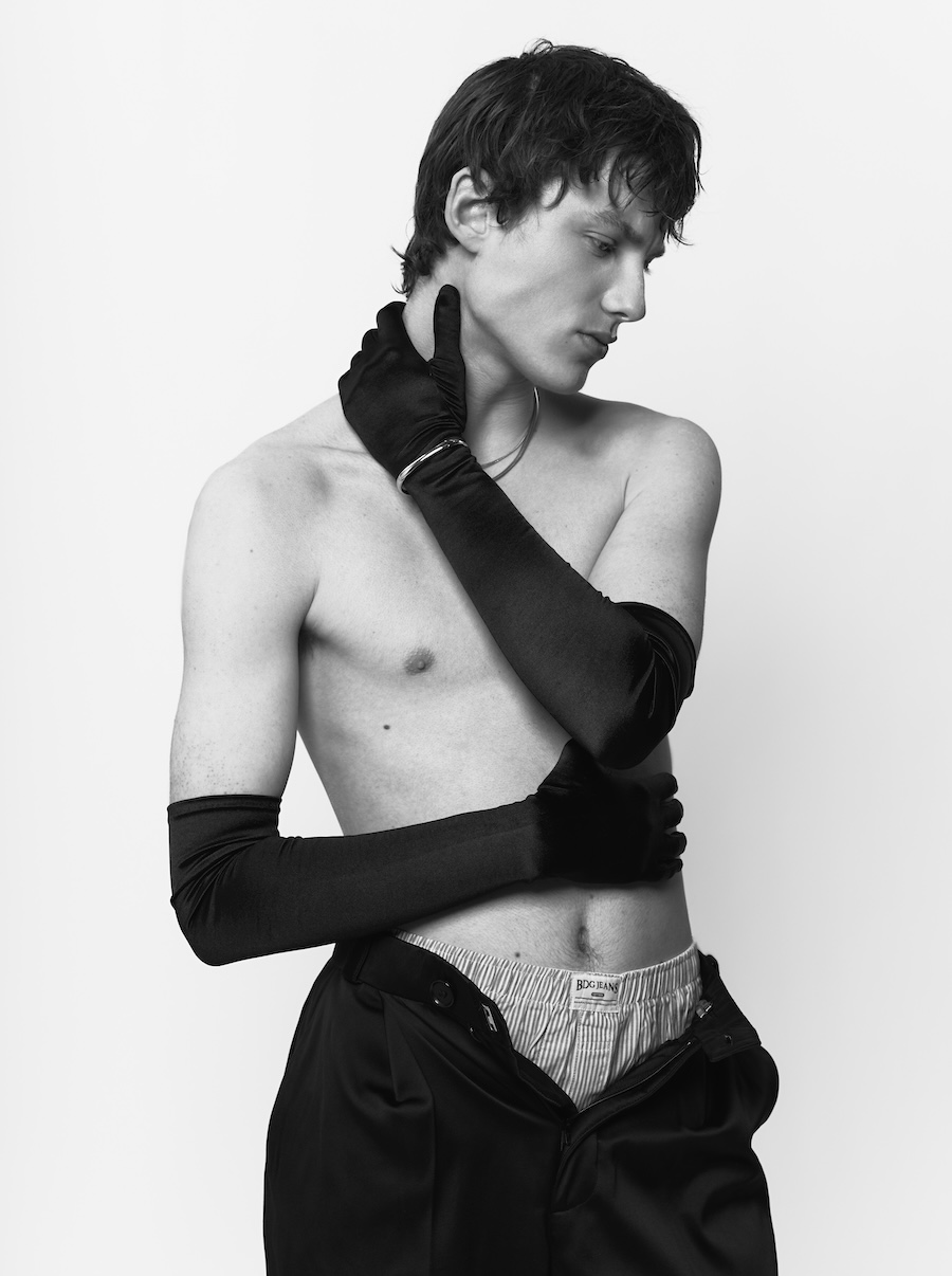 A KALTBLUT exclusive. Photography by Matthew Tate. The model is Hugo Payne, signed at PRM Agency. Grooming by Kira Amin. Styling by Nyle Amin using Ann Andelman, Hisu Park, Retro Chic, Lagomist, Jennifer Milleder, Savage x Fenty, Cubitts, Alexandar Nikolich and Luroq London.