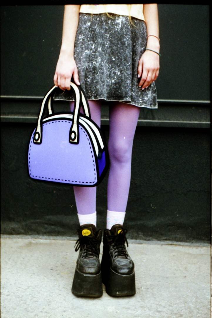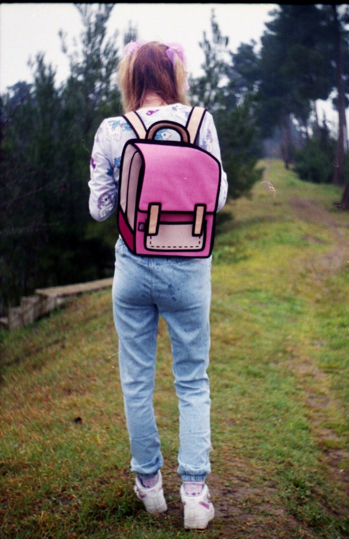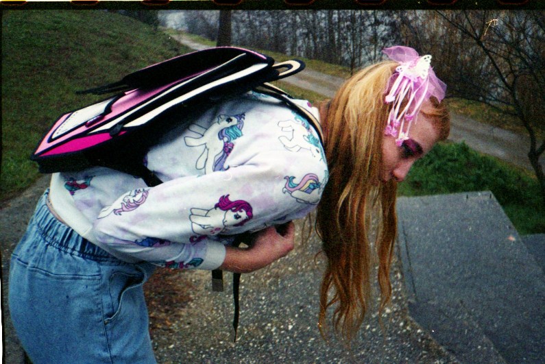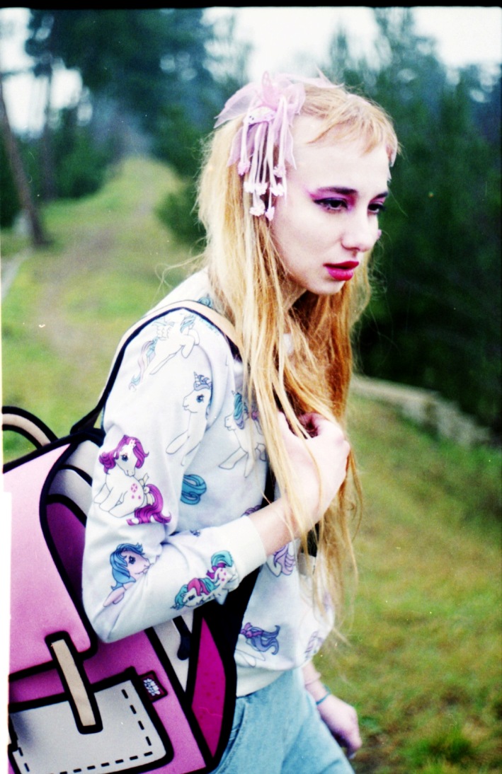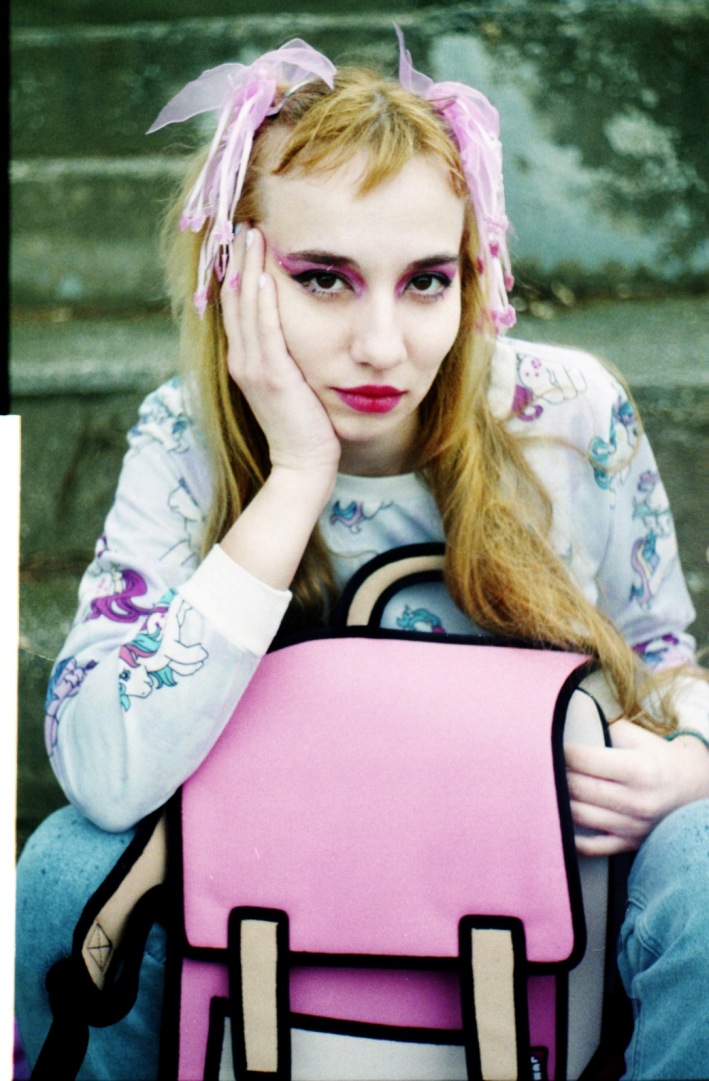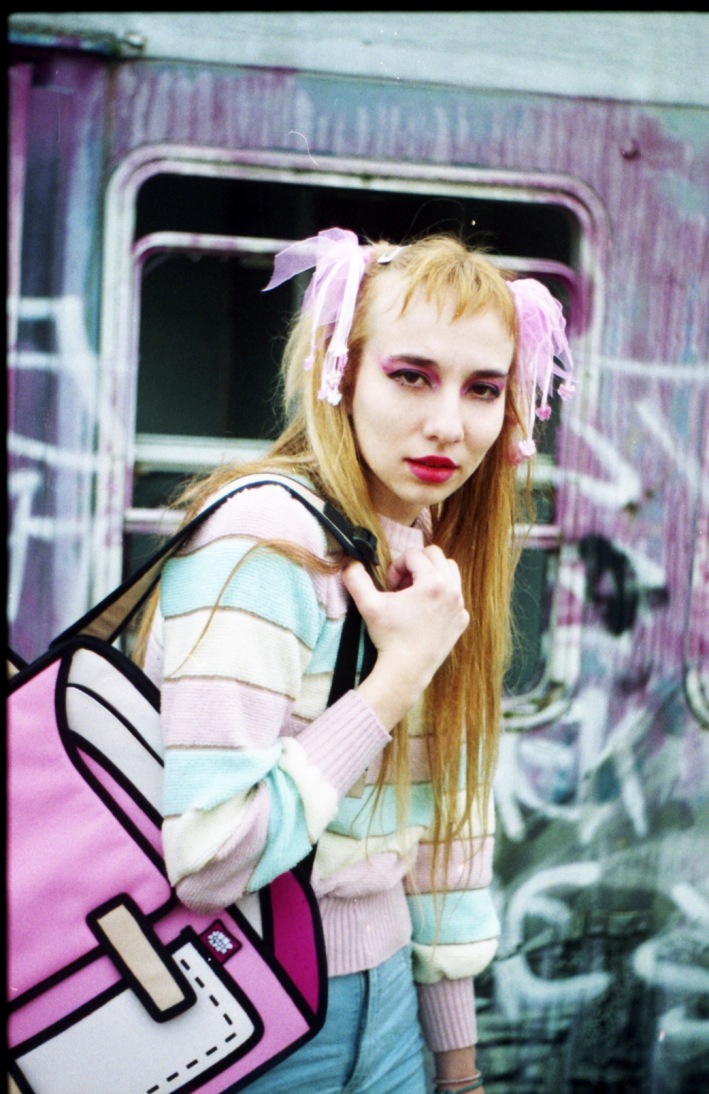 A KALTBLUT exclusive editorial featuring JumpFromPaper photographed by ROKOVOY. ROKOVOY lensed artist Emma TheCatt holding her favourite backpack and purse on a day out. Hair and make-up by: Emma TheCatt. Styling by Gina Pantazi using JumpFromPaper and vintage clothing from the model’s own wardrobe (including Asos, Nike, Buffalo, Weekdays, Etsy Vintage).