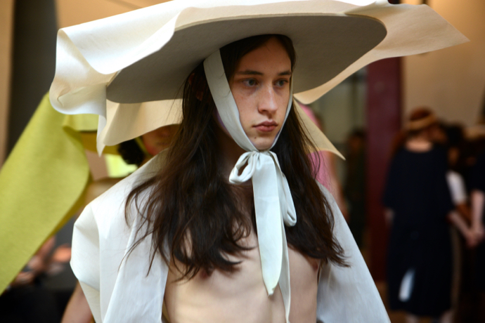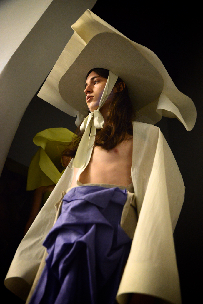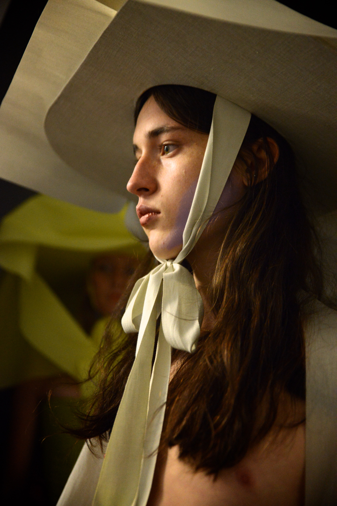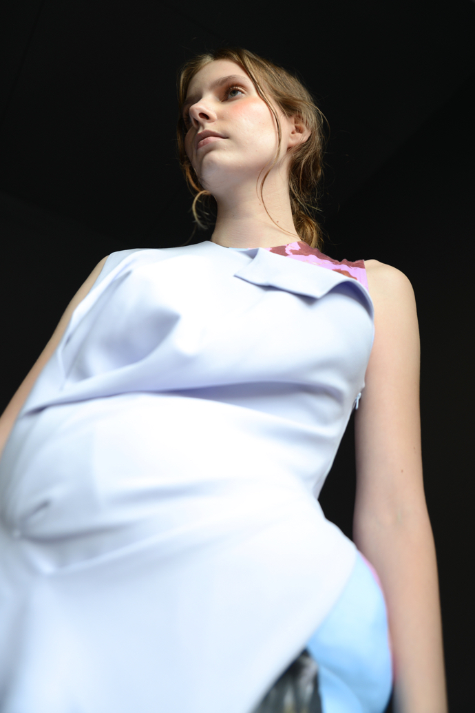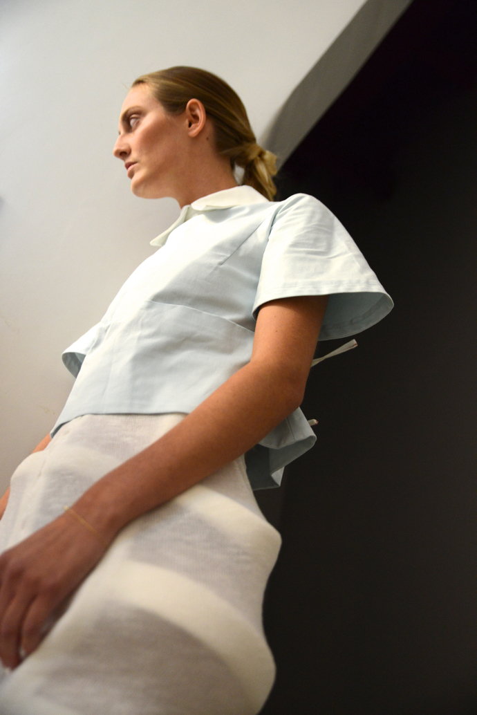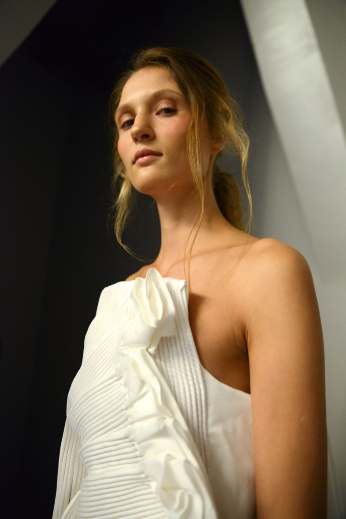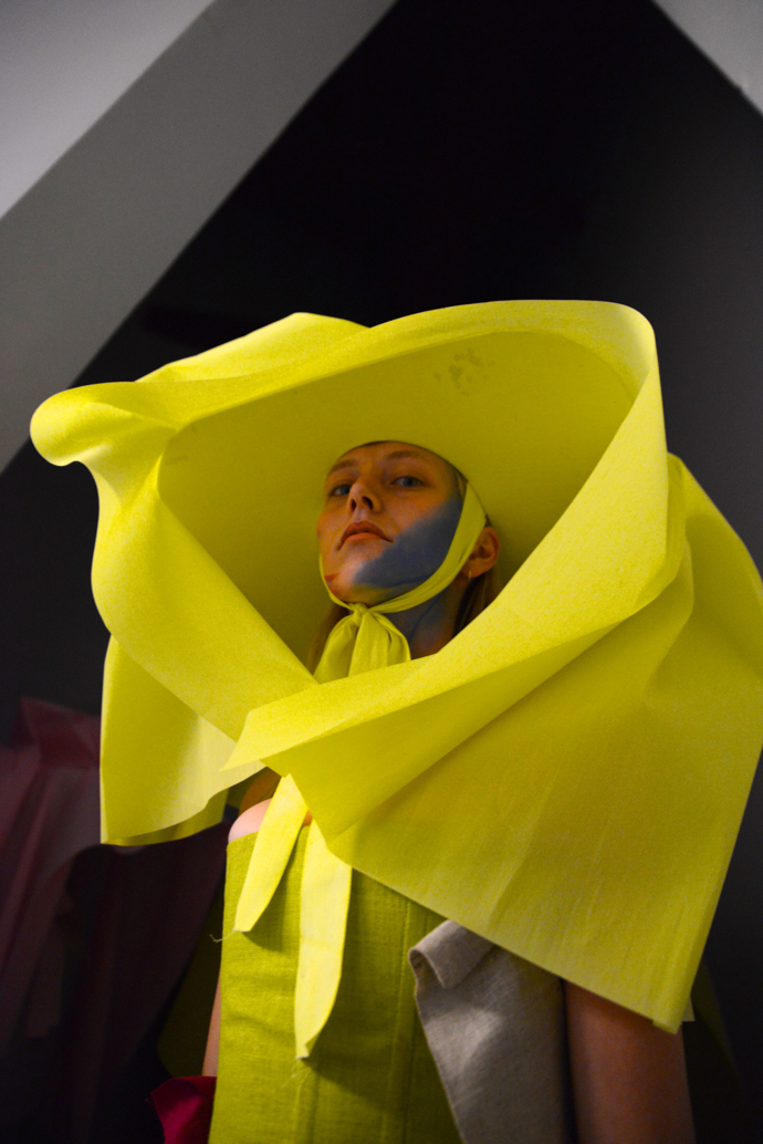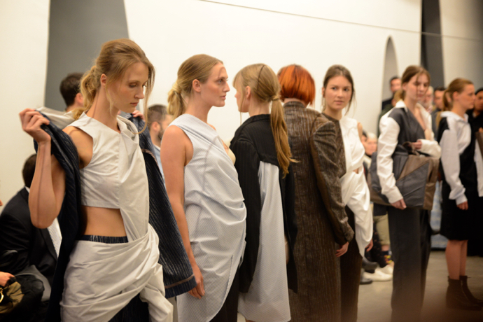 For the last 10 years, ESMOD BERLIN International University of Art for Fashion – has been offering its students the perfect stage for their capsule collections with a graduate fashion show. The collections of the 60 students were examined by representatives from the fashion industry. Jury members for this year ‘s final presentation were Dries van Noten, Salvatore Ferragamo, Balenciaga, Schumacher, ESMOD and Parsons. Together with Berlin based photographer Sebastian Pollin KALTBLUT went backstage for an exclusive view on the capsule collections. The event was held at Anomalie Art Club. And we have to be honest it was the wrong place for the show, but some students surprised us with their design ideas.