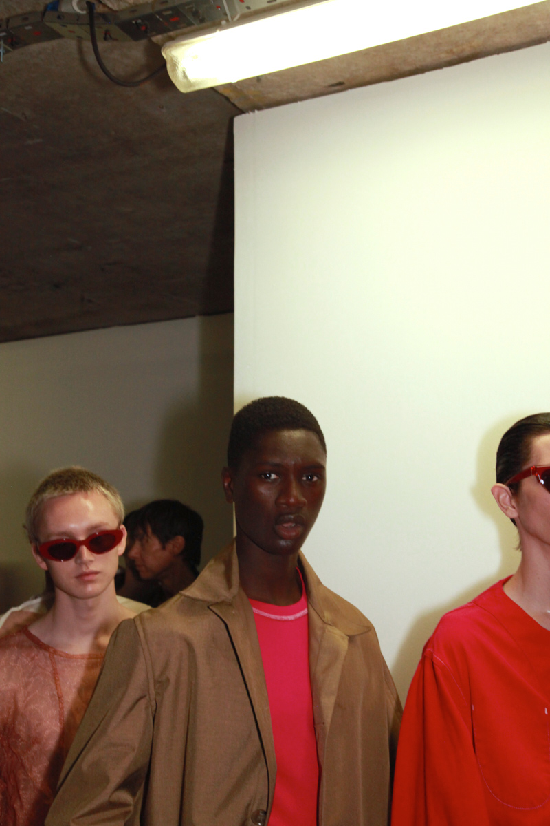 #LondonFashionWeekMen´s – Alex Mullins was kind enough to invite our UK fashion editor back stage at their spring / summer 18 show. This season see’s Mullins working in twisted and manipulated digital prints of faces and people, adding a mind bending effect to the garments. Photography by Karl Slater