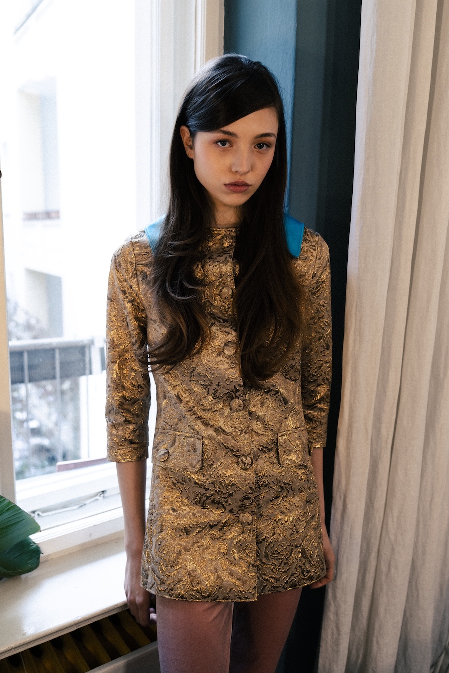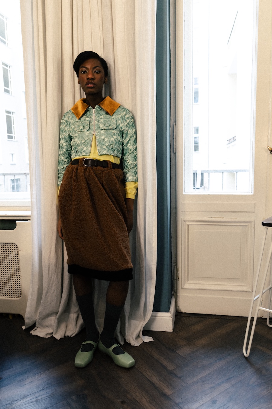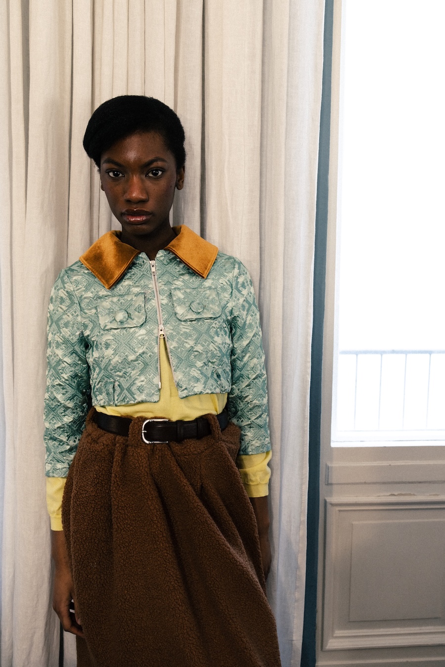 With a vivid palette of saturated yellows, turquoise, mint, and gold, the collection recalls an era where velvet and velour once dominated interiors. Whimsical patterns are worn with pride, clashing deliberately with cold bureaucratic greys, those uniforms we don when stepping into the outside world. In this collection, restraint meets indulgence, celebrating comfort as a badge of confidence and privacy as an empowering statement.