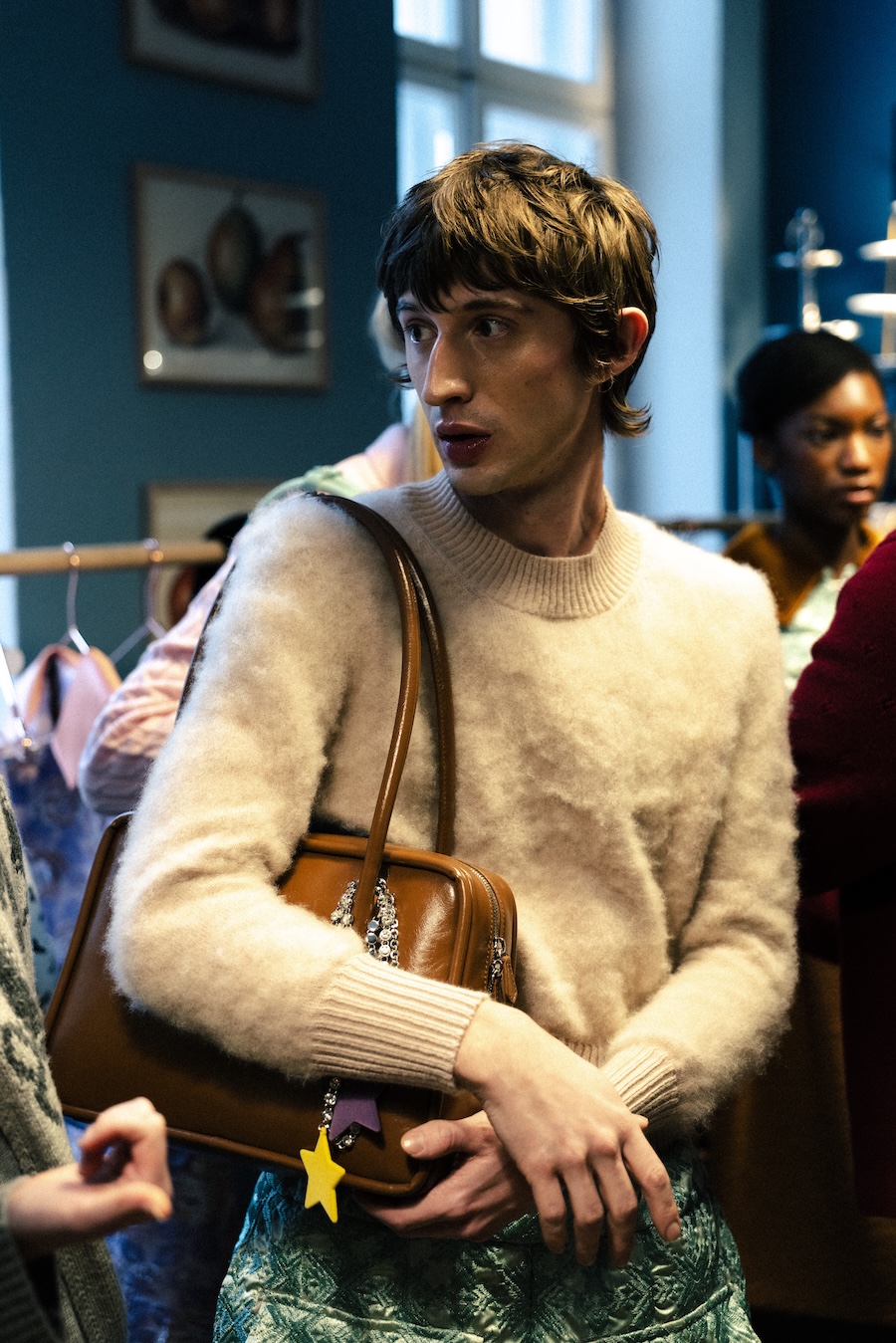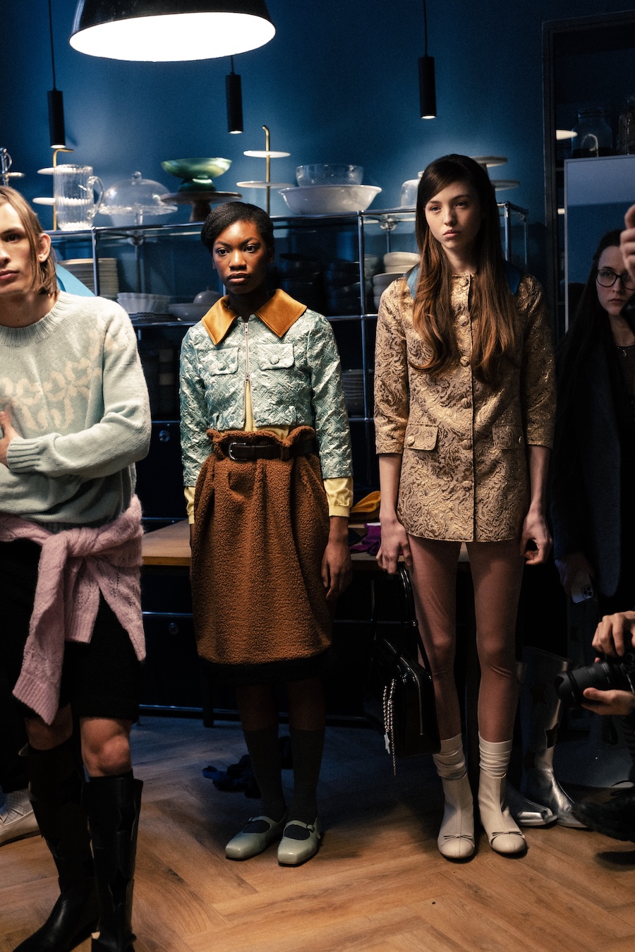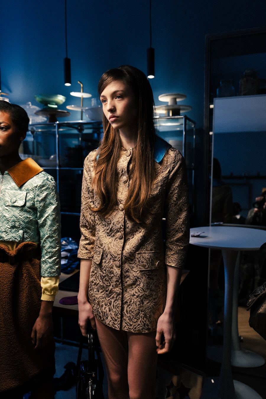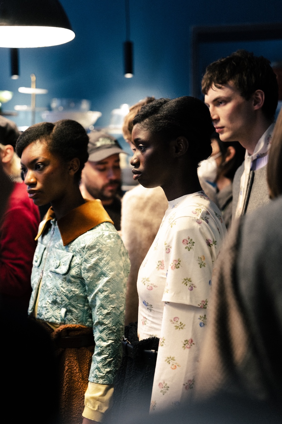 Themes of velour meeting brocade evoke ornamental stucco, with hoodie hoods cascading like drapery. The collection communicates that interior logic can become silhouette, embodying gestures that are serious yet playful. They resonate with Walter Benjamin’s conception of interiors as spaces where traces of self and identity accumulate.