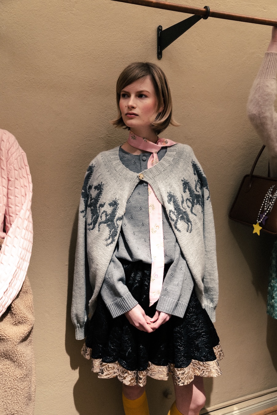 As a graduate of Central Saint Martins, Gronau’s eponymous line merges nostalgia with contemporary design elements, delivering pieces that exude a sense of playful sophistication. The collection reimagines familiar motifs, seamlessly blending youth culture with timeless influences, weaving together the past and present through traditional craftsmanship and modern flair. Intricate detailing and expressive silhouettes are at the heart of this unique offering, which balances childlike imagination with meticulous craftsmanship.