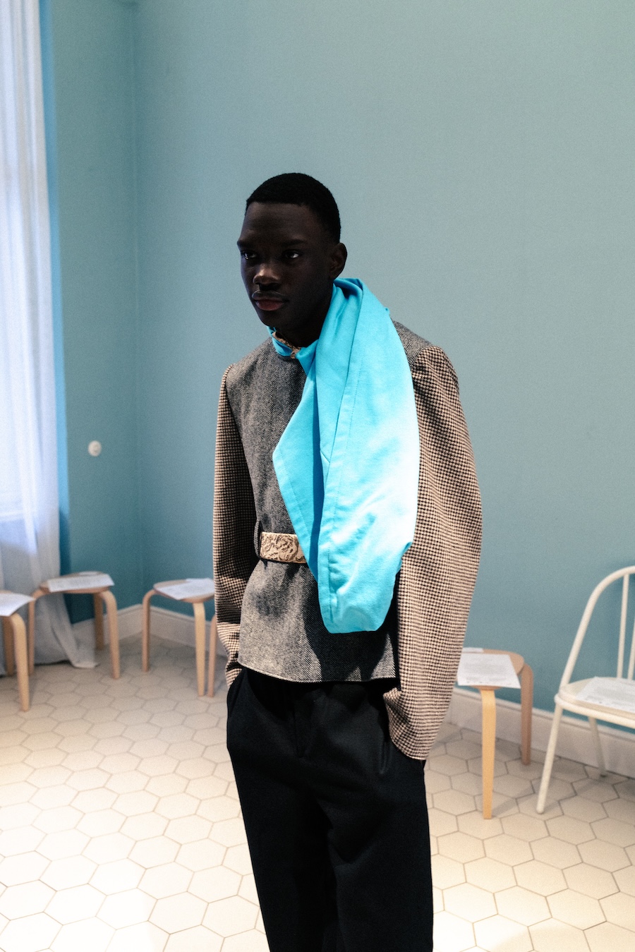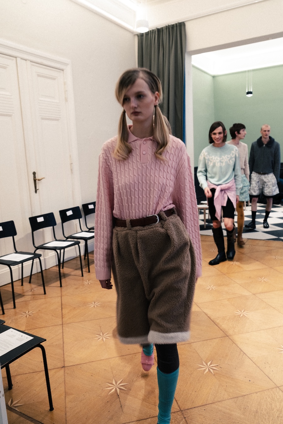 Last week at Berlin Fashion Week, ANDREJ GRONAU unveiled his latest ready-to-wear collection, a striking exploration of the tension between youthful naiveté and refined elegance. Launched in 2022, this brand has quickly garnered attention for its ability to juxtapose traditional tailoring with unexpected textures, creating a distinctive aesthetic.