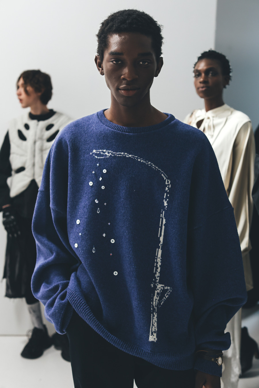 With the concept of “clothing with free thought,” the duo behind BILL BILL seeks to create garments that enhance artistic expression. Their collection, “Colorless Bible,” embodies the desire to reinterpret rigid artistic conventions into wearable art. By employing pure white fabrics alongside exaggerated expressions inspired by cartoons, the designers invite creativity and imagination into the realm of fashion.