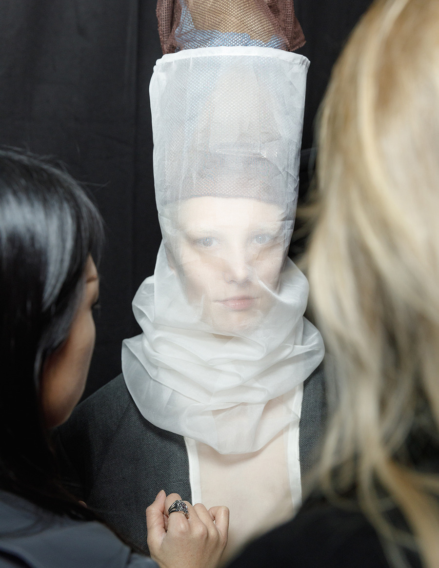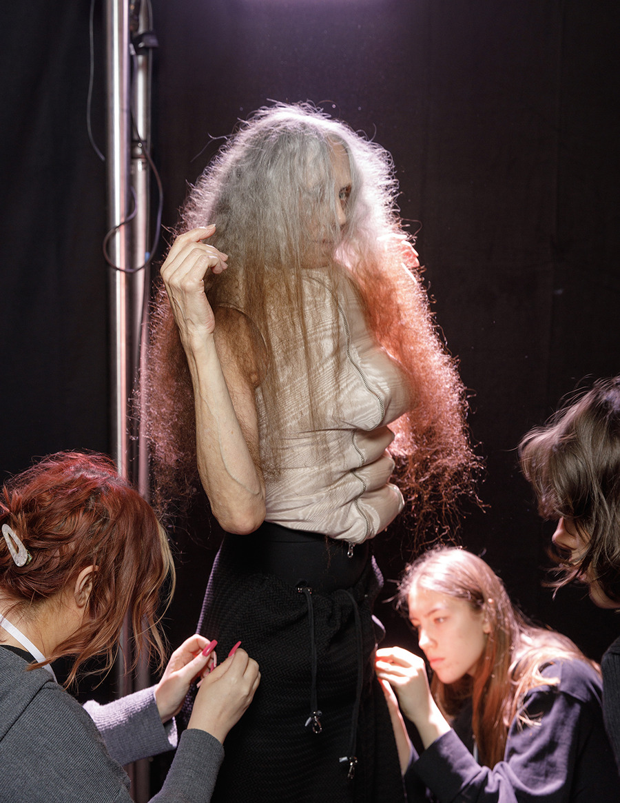 Irina Dzhus’ latest collection, while cutting through the gloom of her trials, implores us to gaze deeper into the liberated fabric of existence itself — nothing short of a masterclass in the alchemy of art and life, as we’ve vicariously witnessed through Reznikov’s evocative imagery backstage at Berlin Fashion Week.