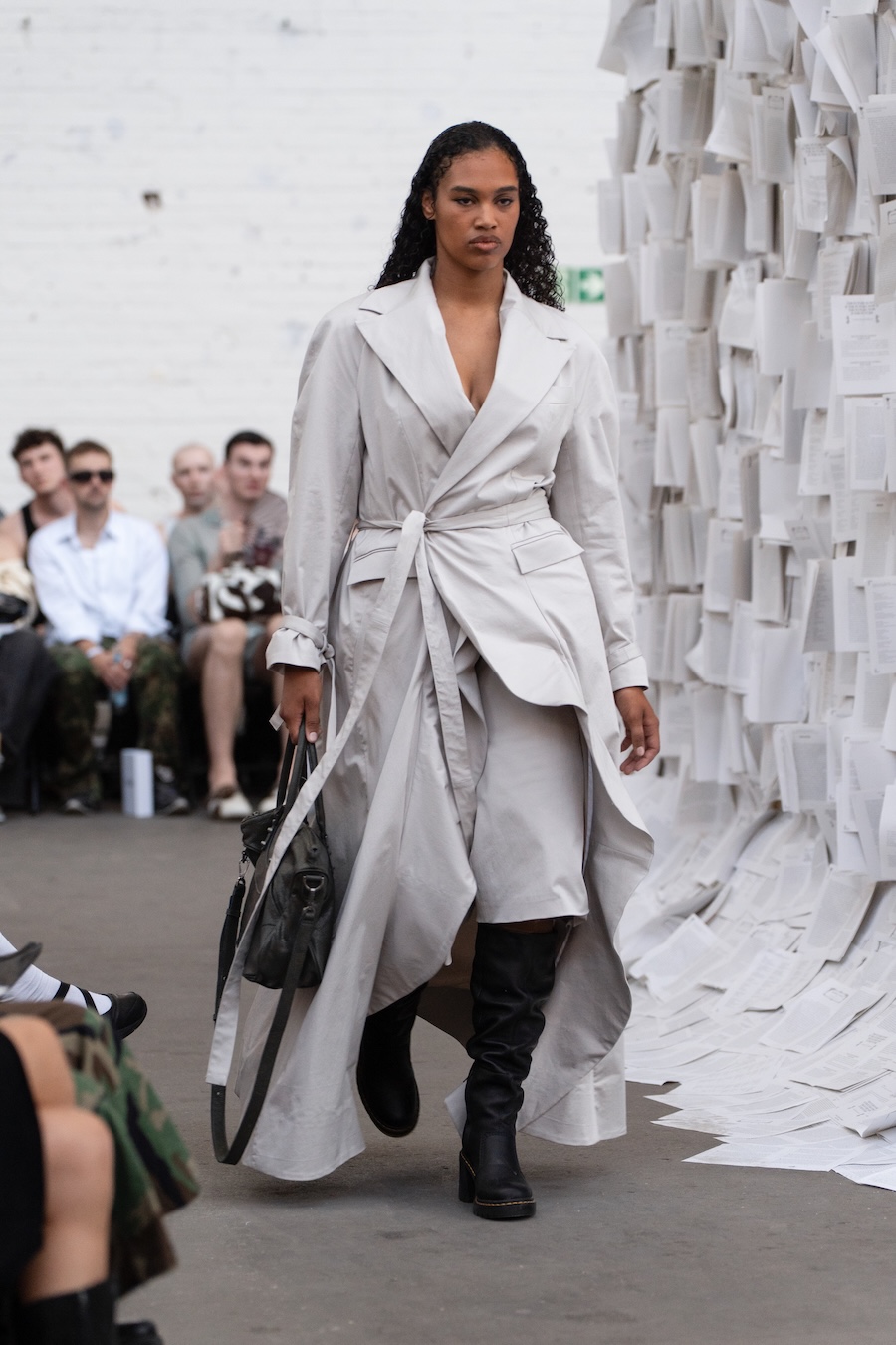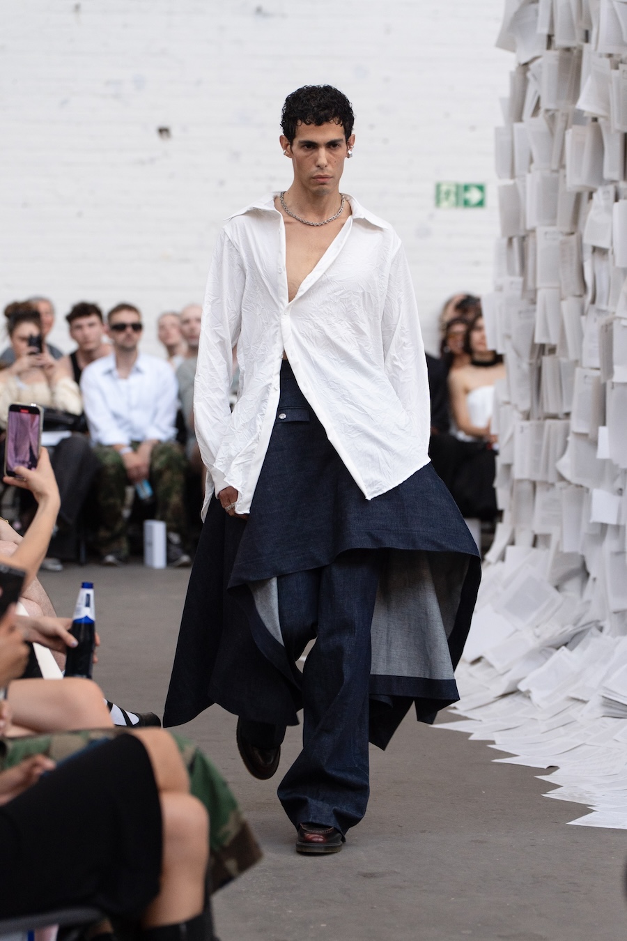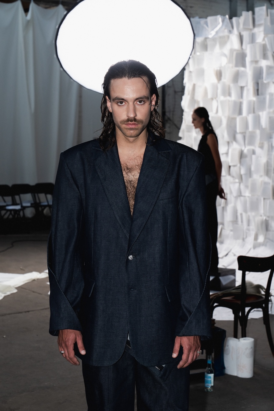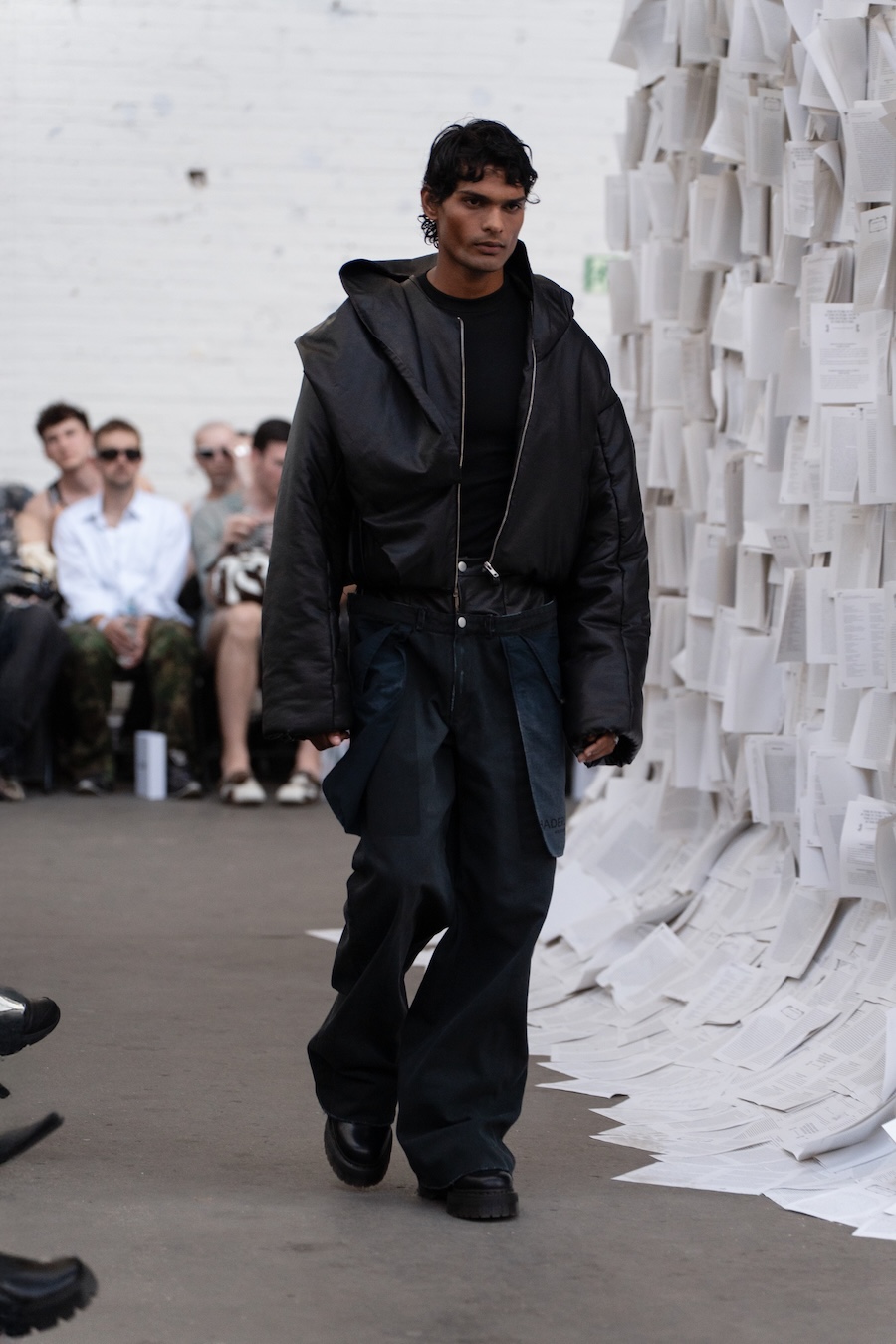 The runway at Haus der Visionäre provided a backdrop of introspective calm. Guests were enveloped in a kinetic soundscape crafted by Chontane, where object-based audio technology adapted in real-time to accompany the models, echoing the collection’s exploration of presence and identity. The thoughtfully selected model cast, curated in partnership with Joy Livia, underscores HADERLUMP’s unwavering commitment to authenticity and representation.