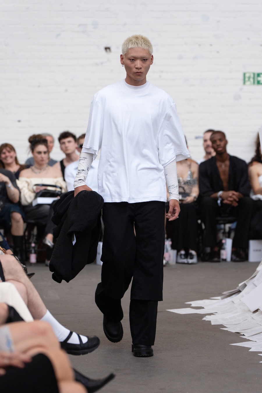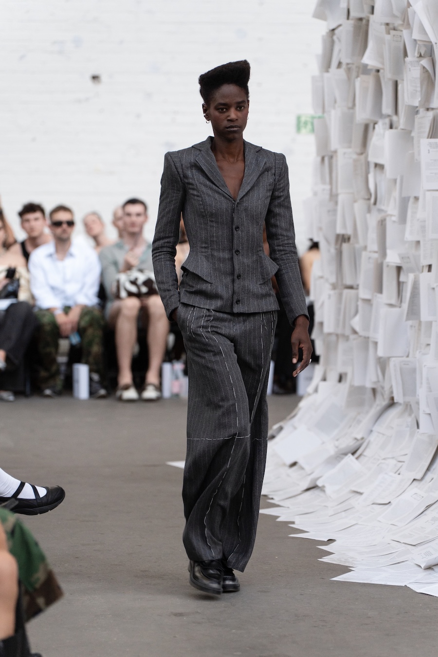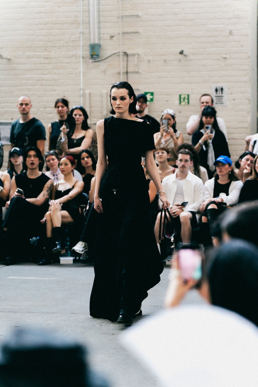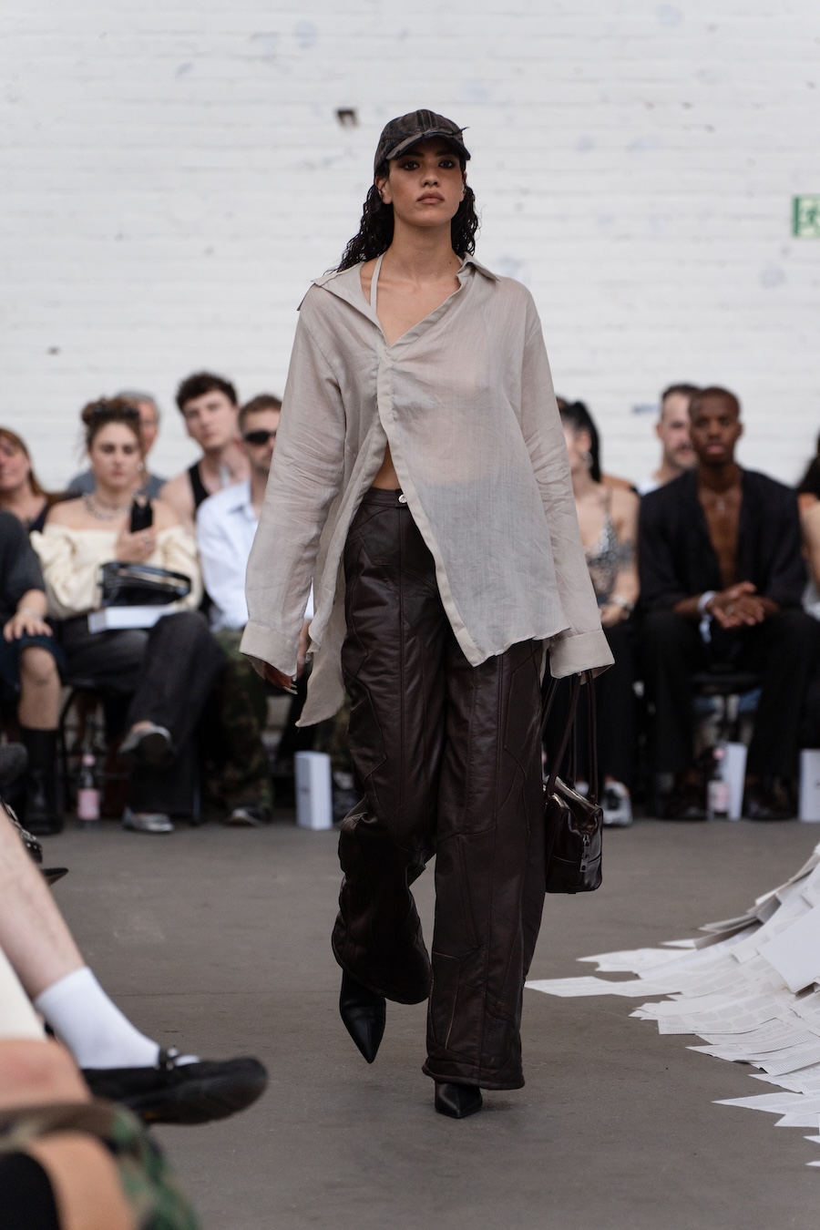 The runway at Haus der Visionäre provided a backdrop of introspective calm. Guests were enveloped in a kinetic soundscape crafted by Chontane, where object-based audio technology adapted in real-time to accompany the models, echoing the collection’s exploration of presence and identity. The thoughtfully selected model cast, curated in partnership with Joy Livia, underscores HADERLUMP’s unwavering commitment to authenticity and representation.
