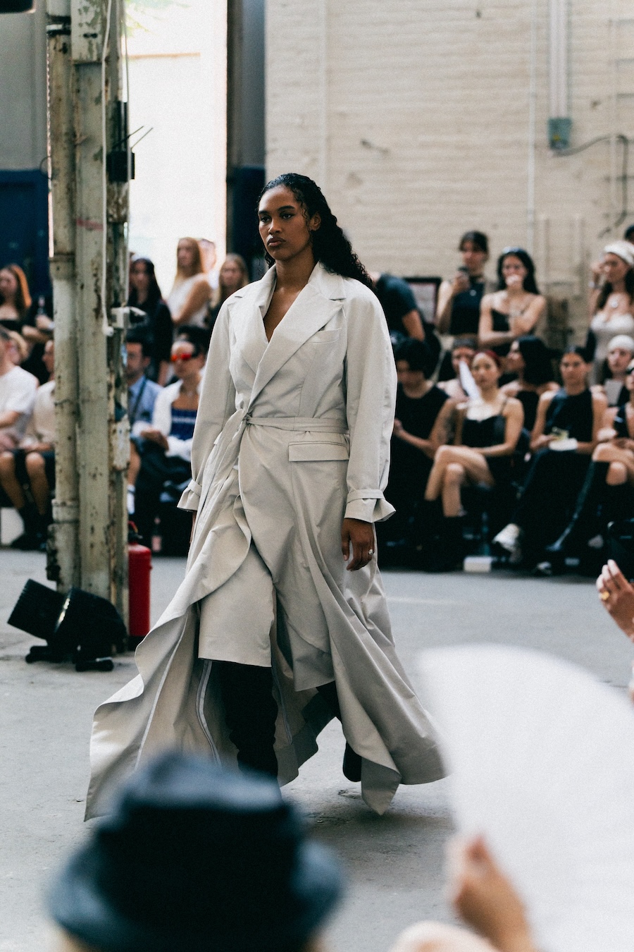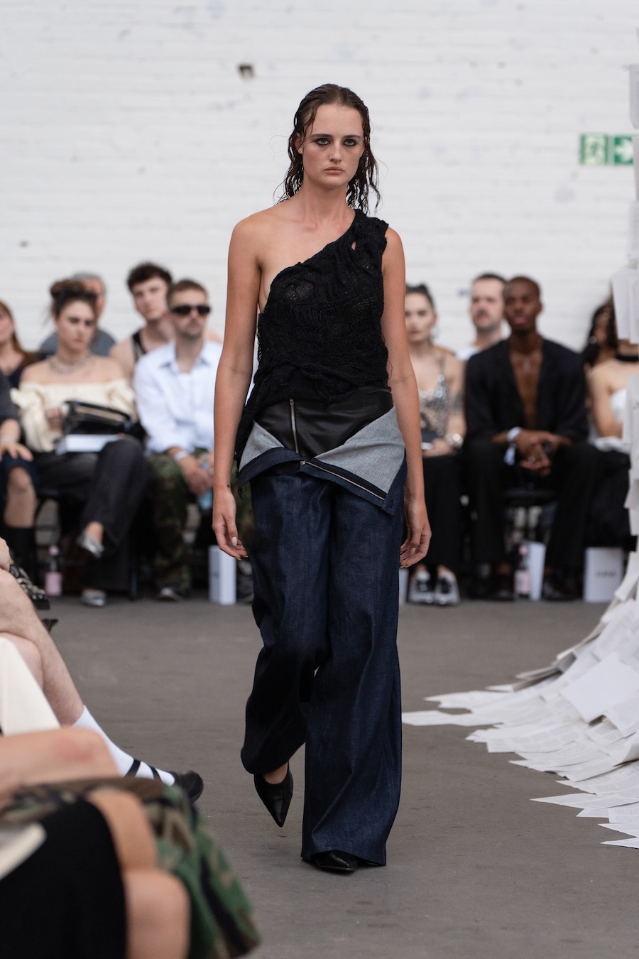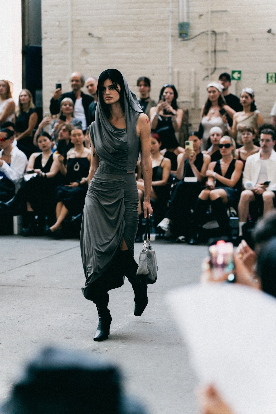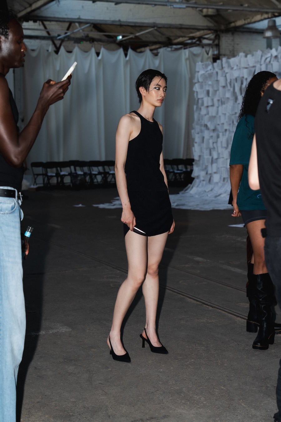 The runway at Haus der Visionäre provided a backdrop of introspective calm. Guests were enveloped in a kinetic soundscape crafted by Chontane, where object-based audio technology adapted in real-time to accompany the models, echoing the collection’s exploration of presence and identity. The thoughtfully selected model cast, curated in partnership with Joy Livia, underscores HADERLUMP’s unwavering commitment to authenticity and representation.