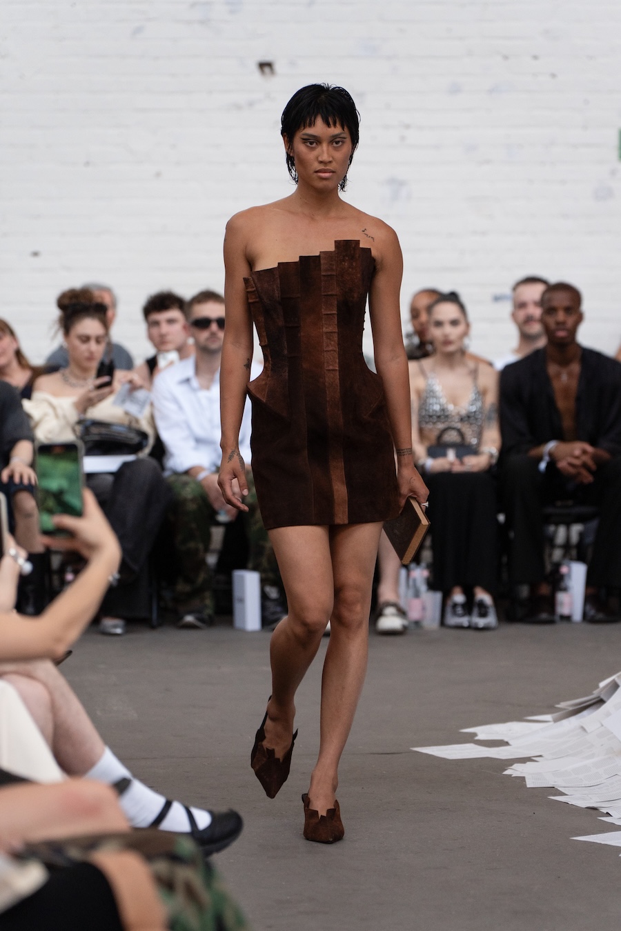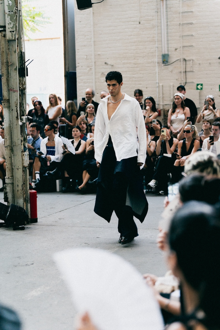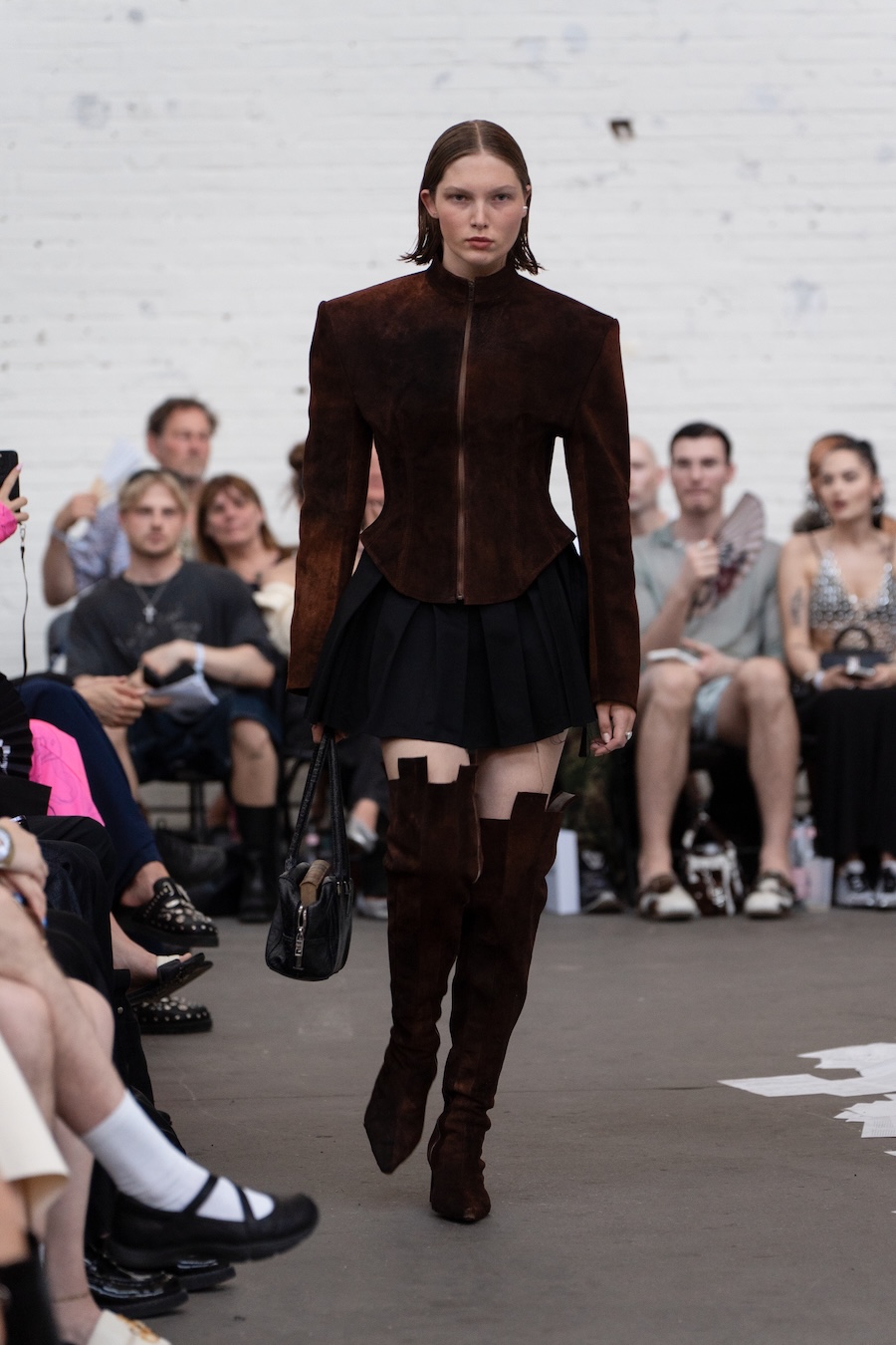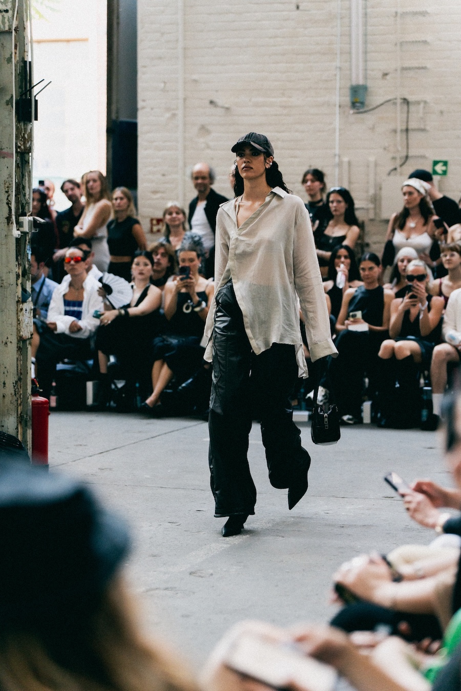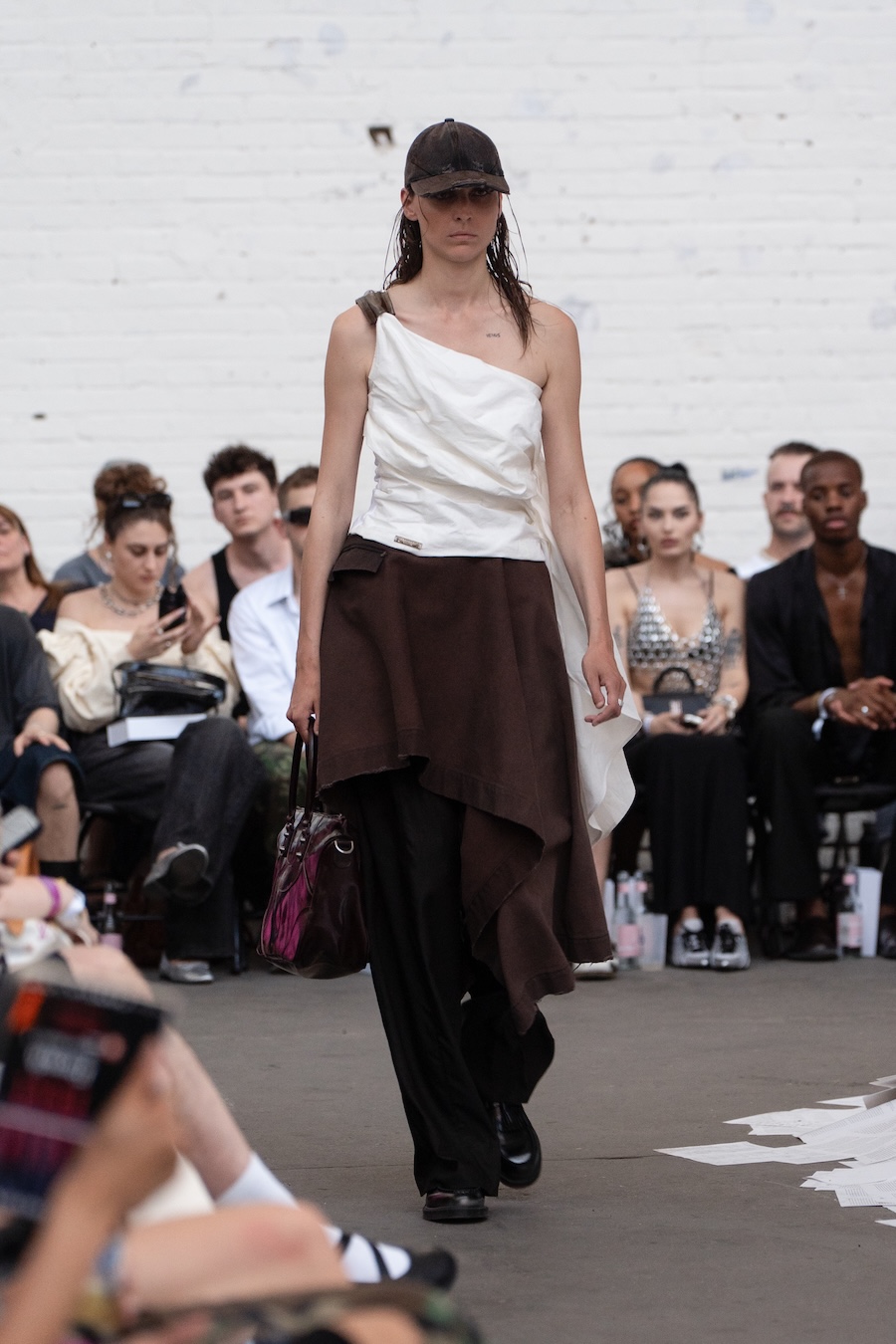 The runway at Haus der Visionäre provided a backdrop of introspective calm. Guests were enveloped in a kinetic soundscape crafted by Chontane, where object-based audio technology adapted in real-time to accompany the models, echoing the collection’s exploration of presence and identity. The thoughtfully selected model cast, curated in partnership with Joy Livia, underscores HADERLUMP’s unwavering commitment to authenticity and representation.