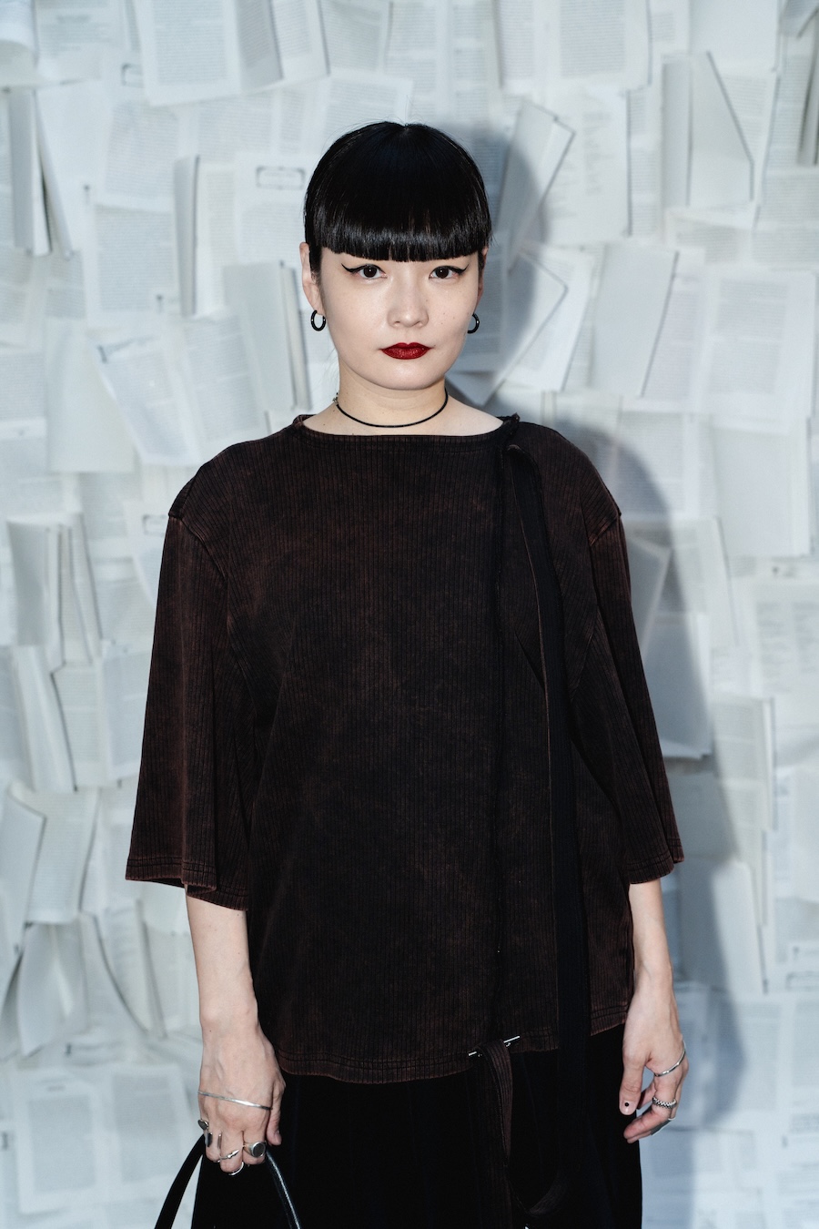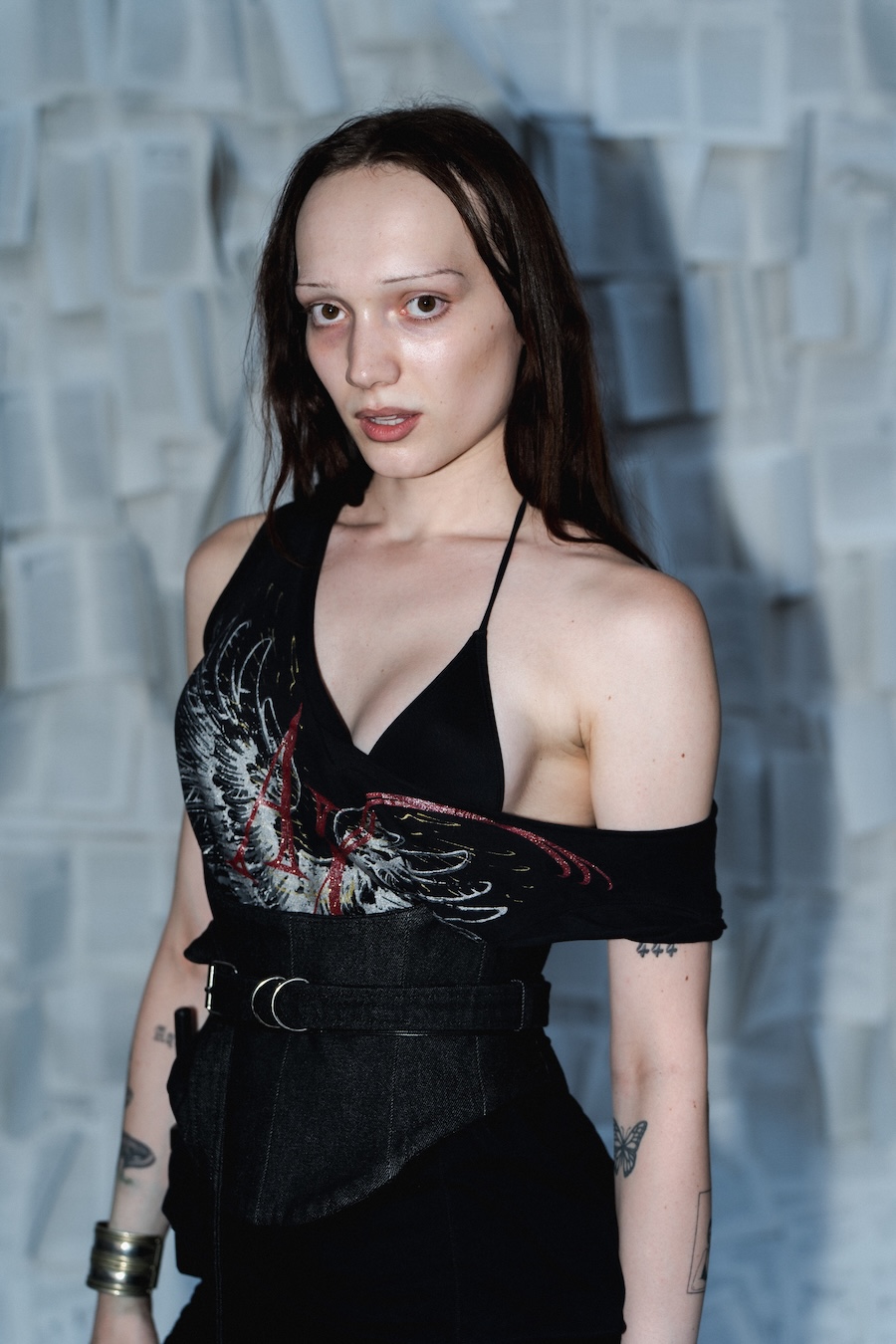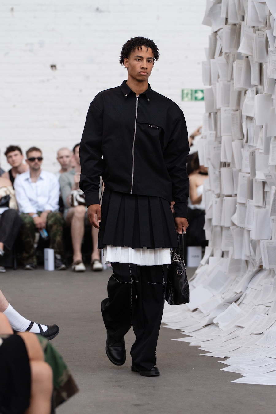 Under the visionary guidance of creative director Johann Ehrhardt, EXLIBRIS employs historical bookplates as a conceptual backbone. Silhouettes oscillate between sculptural impact and expressive fluidity, with tailored bombers and broad-shouldered coats commanding presence while corseted blouses and draped skirts introduce a dynamic softness. These designs pay homage to classical forms yet remain firmly anchored in contemporary sensibility, with each piece radiating intentional artistry.