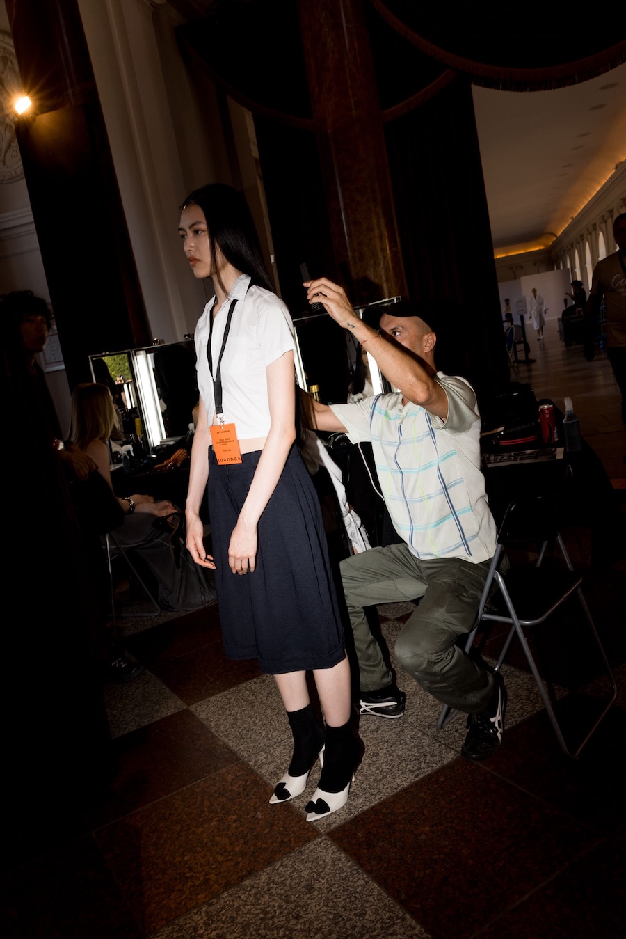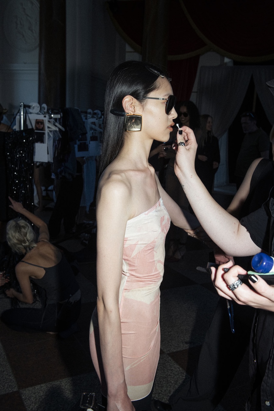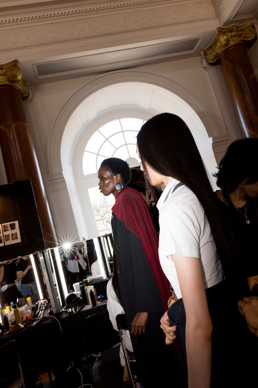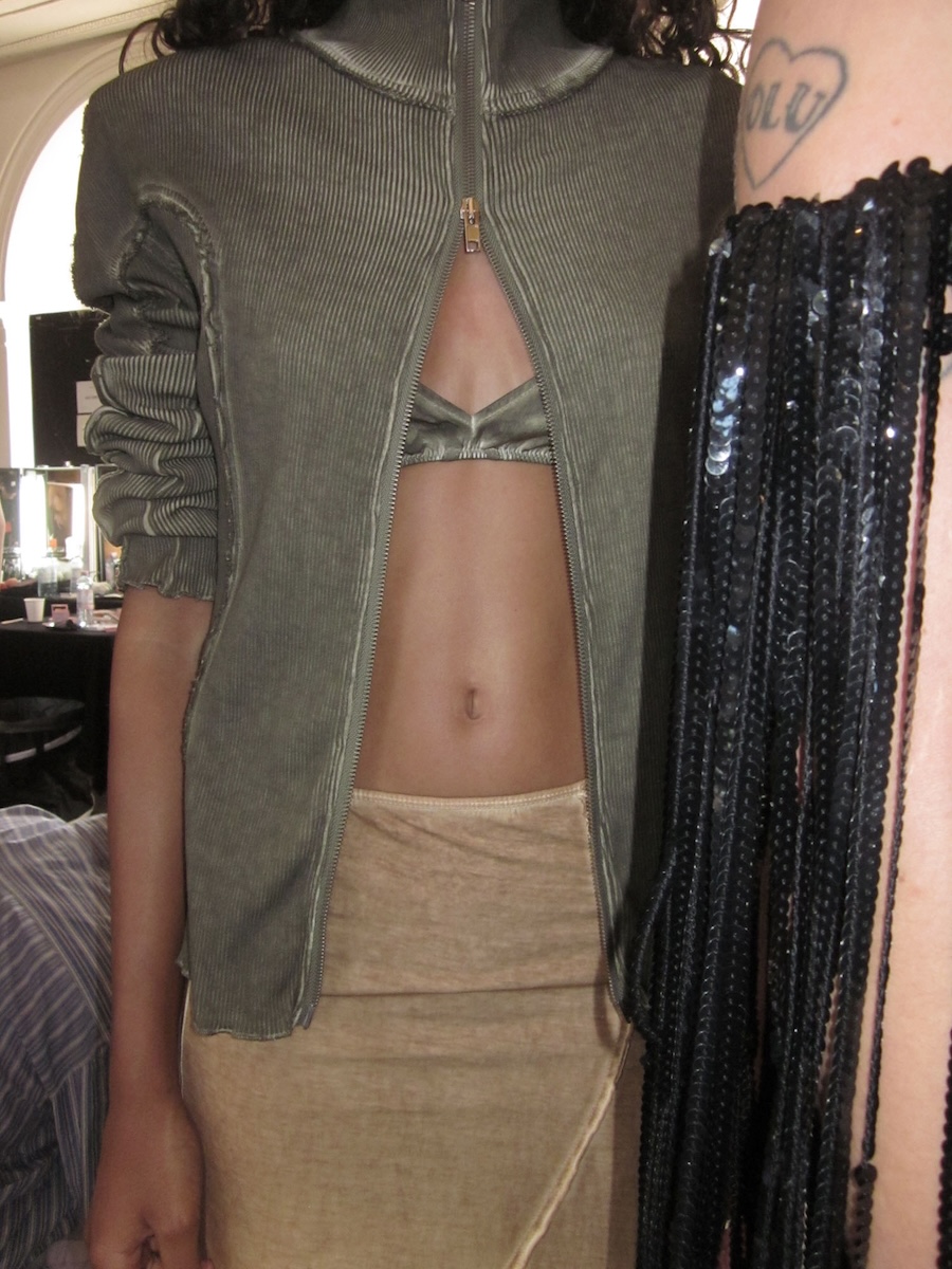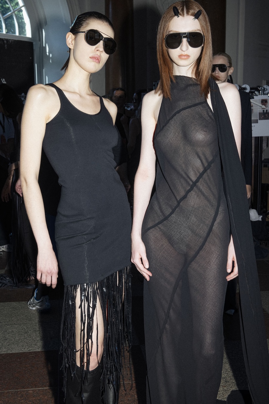 At the core of this collection lies a mixture of lightweight mesh, luxurious Supima cotton, and ethereal vegetable-dyed ruffles that convey an airy elegance. However, it’s the juxtaposition of these textiles with raw hems, sculptural outerwear, and structured cuts that creates an electrifying tactile tension. Transformative pieces—those that are adjustable and purposefully unfinished speak to a ritualistic quality that underscores self-care and the ongoing journey of self-discovery.