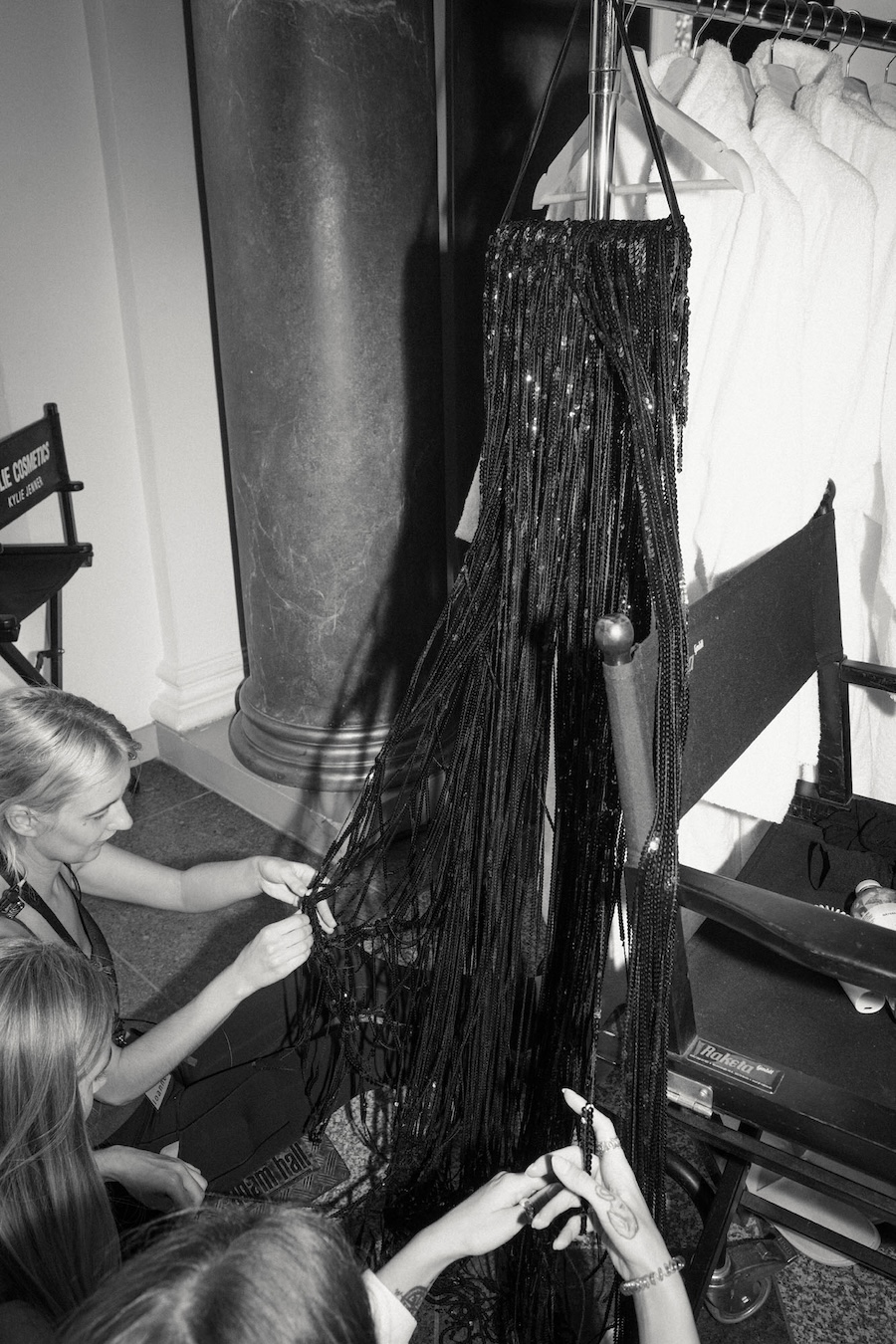 Signature materials, including patina-sprayed cotton, loosely textured knits, and innovative sequin tassels, which reinterpret adornment as a form of armour, invite a fresh exploration of texture and form. Among the collection highlights are the eye-catching vegetable-dyed ruffle pieces and the distinctive “Rococo” heel, alongside a versatile sequin garment that transforms with the wearer’s journey.