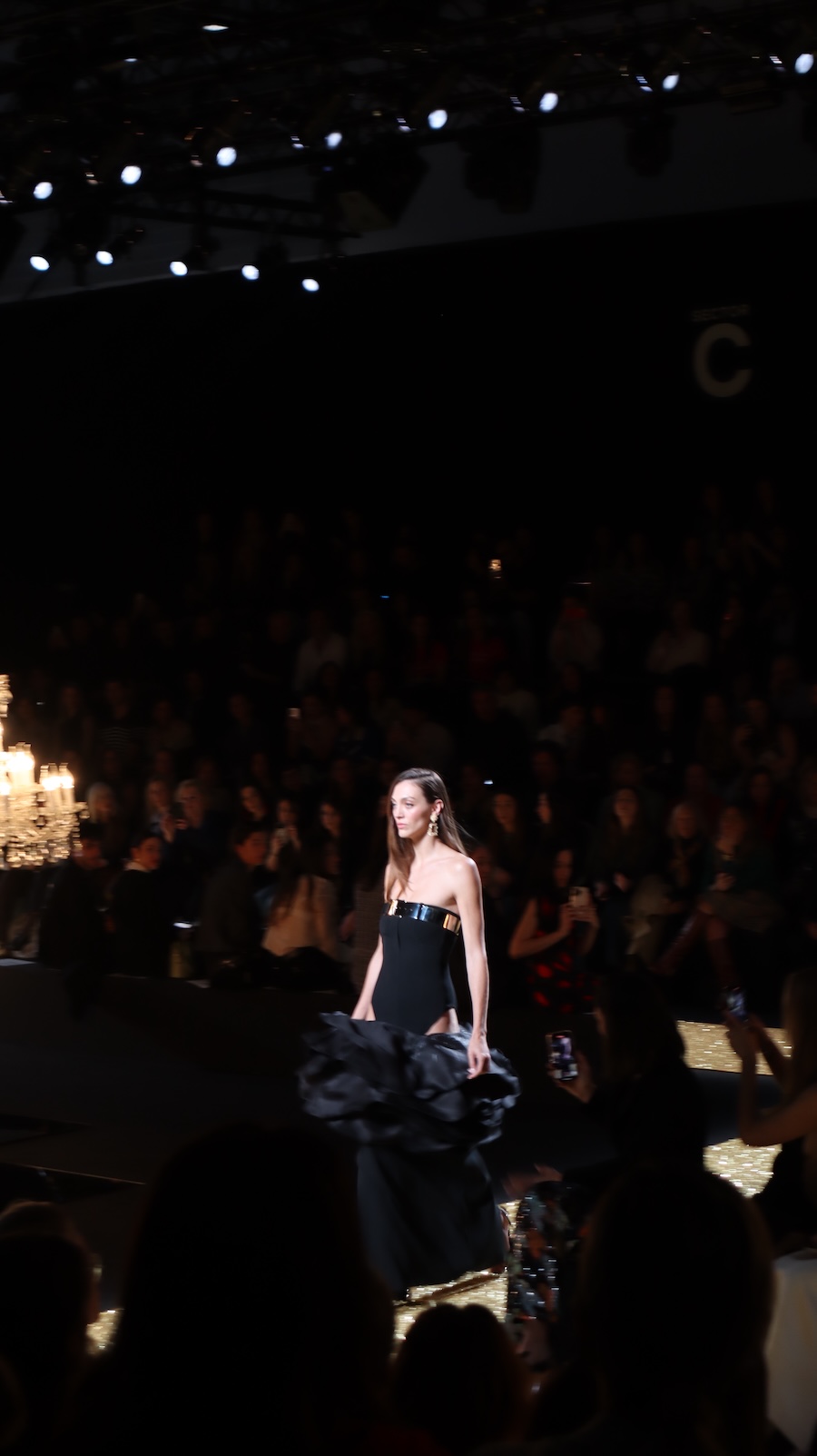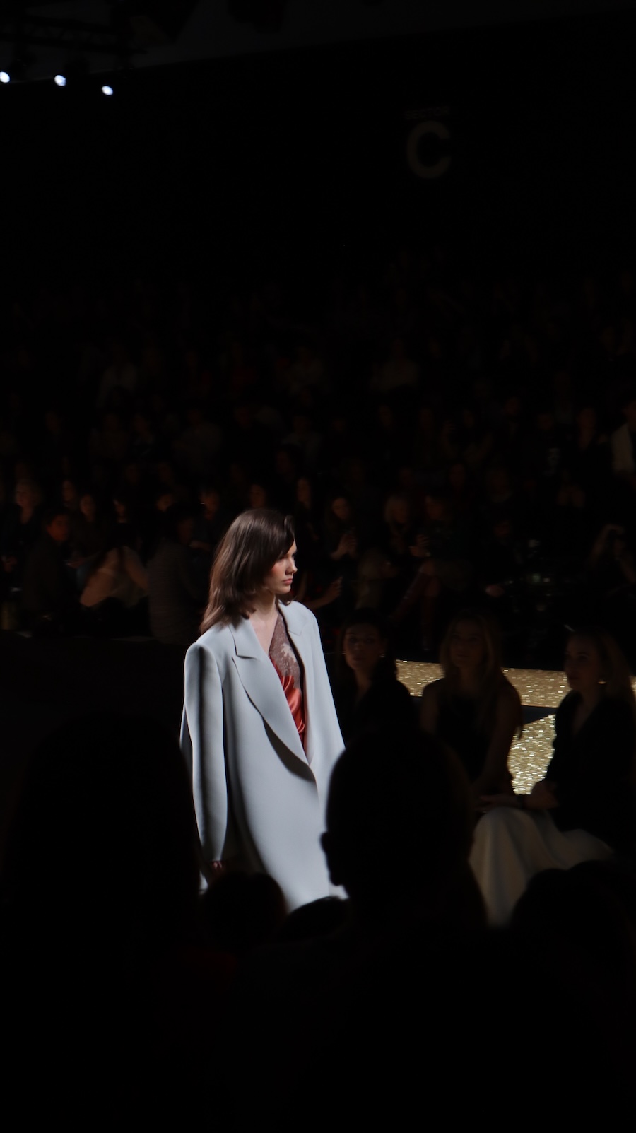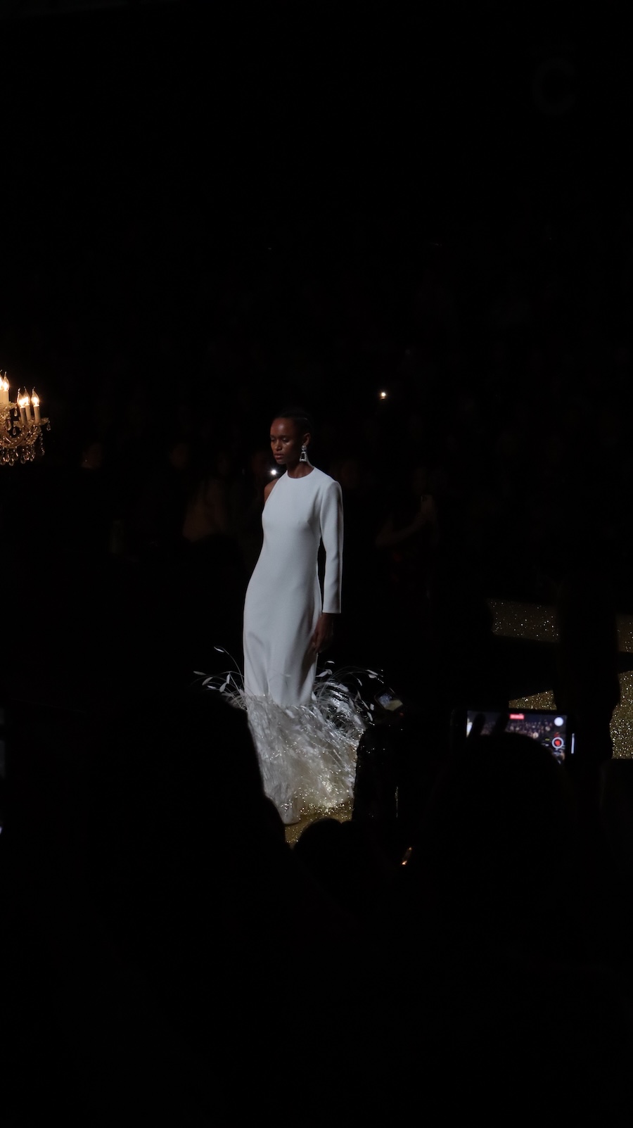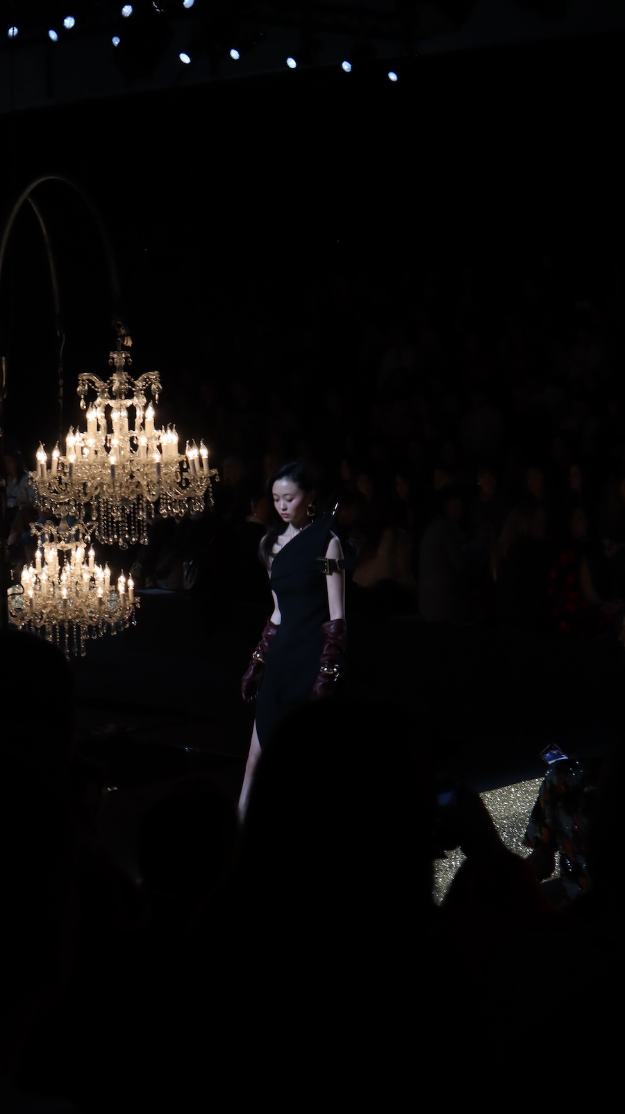 On the catwalk, the gasping is immediate as soon as these avant-garde technological designs are in sight, especially the white one with LED lights. The black moving rose is the last one to be shown, and the model takes her time to walk, as she stops from time to time to look at the audience and stare at us while the dress moves.