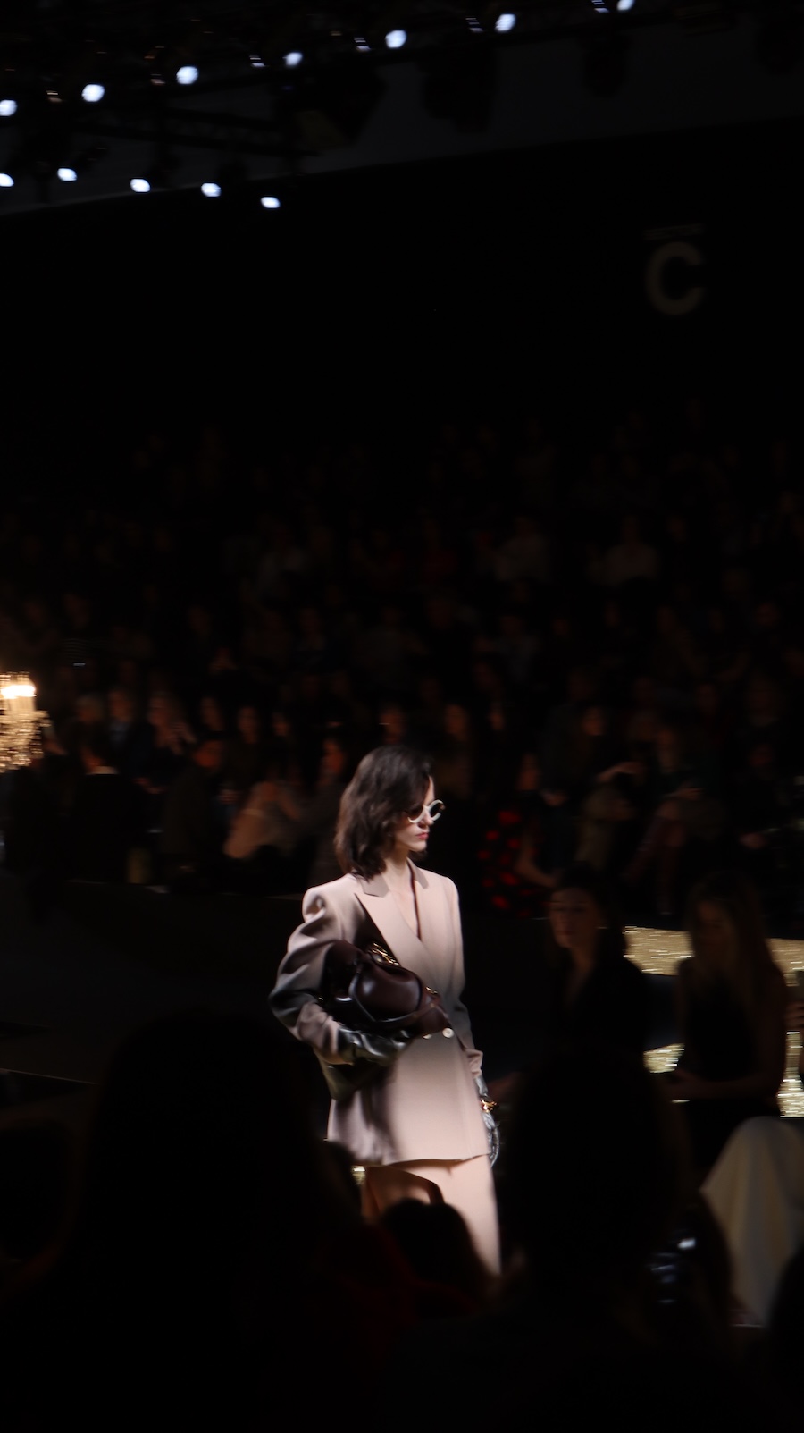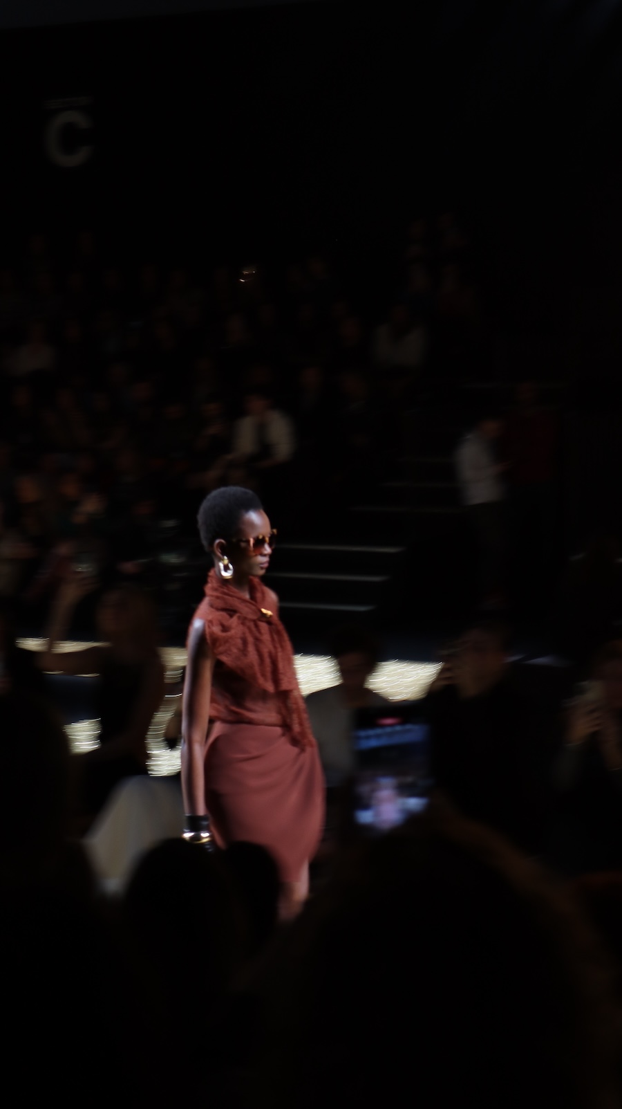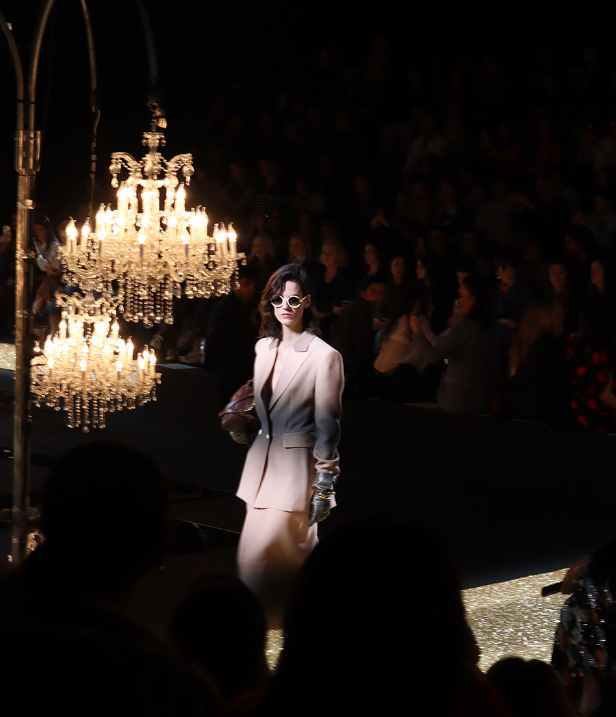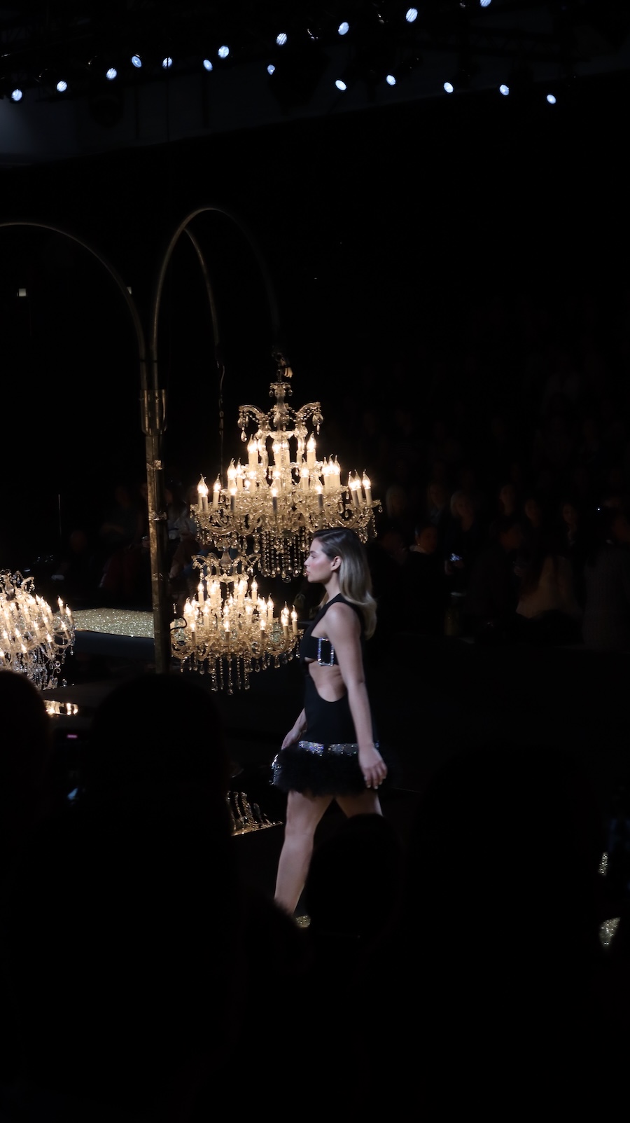 On the catwalk, the gasping is immediate as soon as these avant-garde technological designs are in sight, especially the white one with LED lights. The black moving rose is the last one to be shown, and the model takes her time to walk, as she stops from time to time to look at the audience and stare at us while the dress moves.