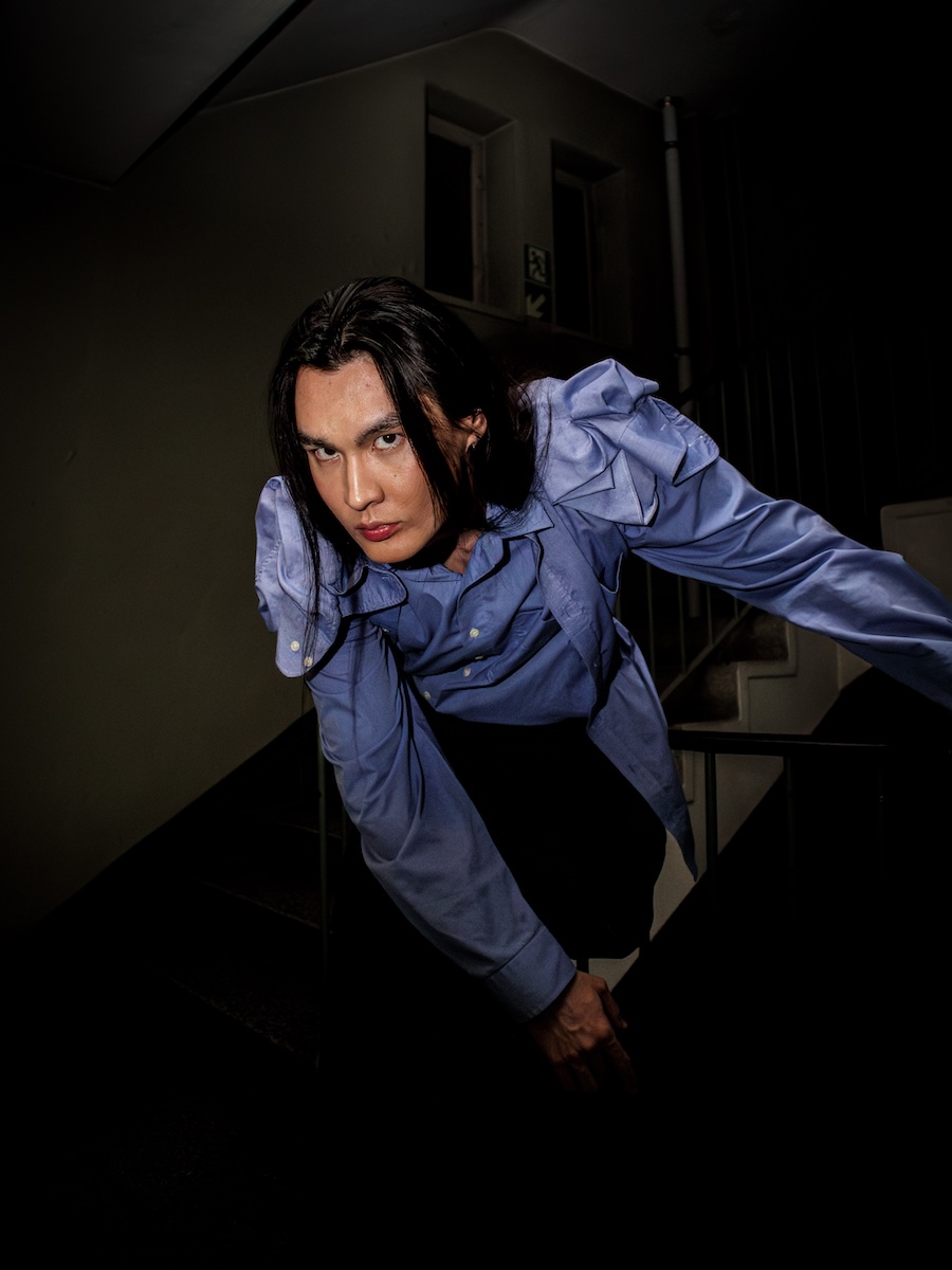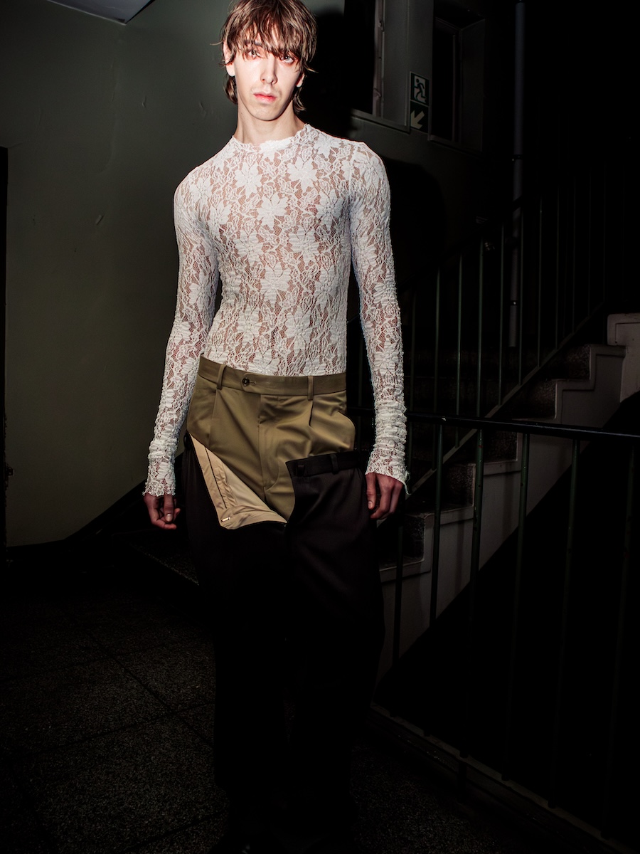 The show’s thematic essence, framed as a “Dialogue of Renewal,” reflects on the tensions between destruction and transformation. It speaks to the audience through an open philosophical conversation articulated by the garments themselves. In CONTRAARGUMENTUM, the collection contrasts transitional states, between dressed and undressed, masculine and feminine, and the delicate balance of control and collapse. Each outfit embodies nostalgia while simultaneously questioning the societal systems that have shaped our identities.