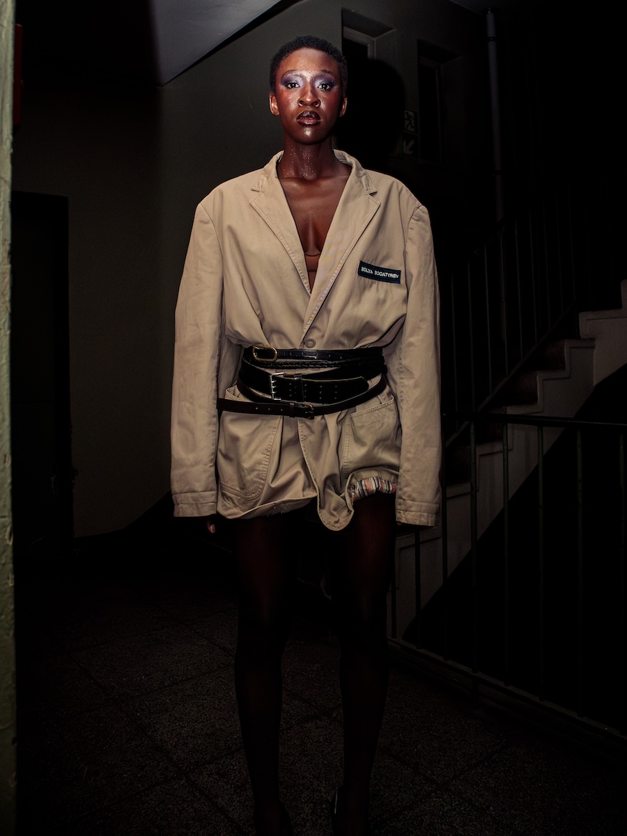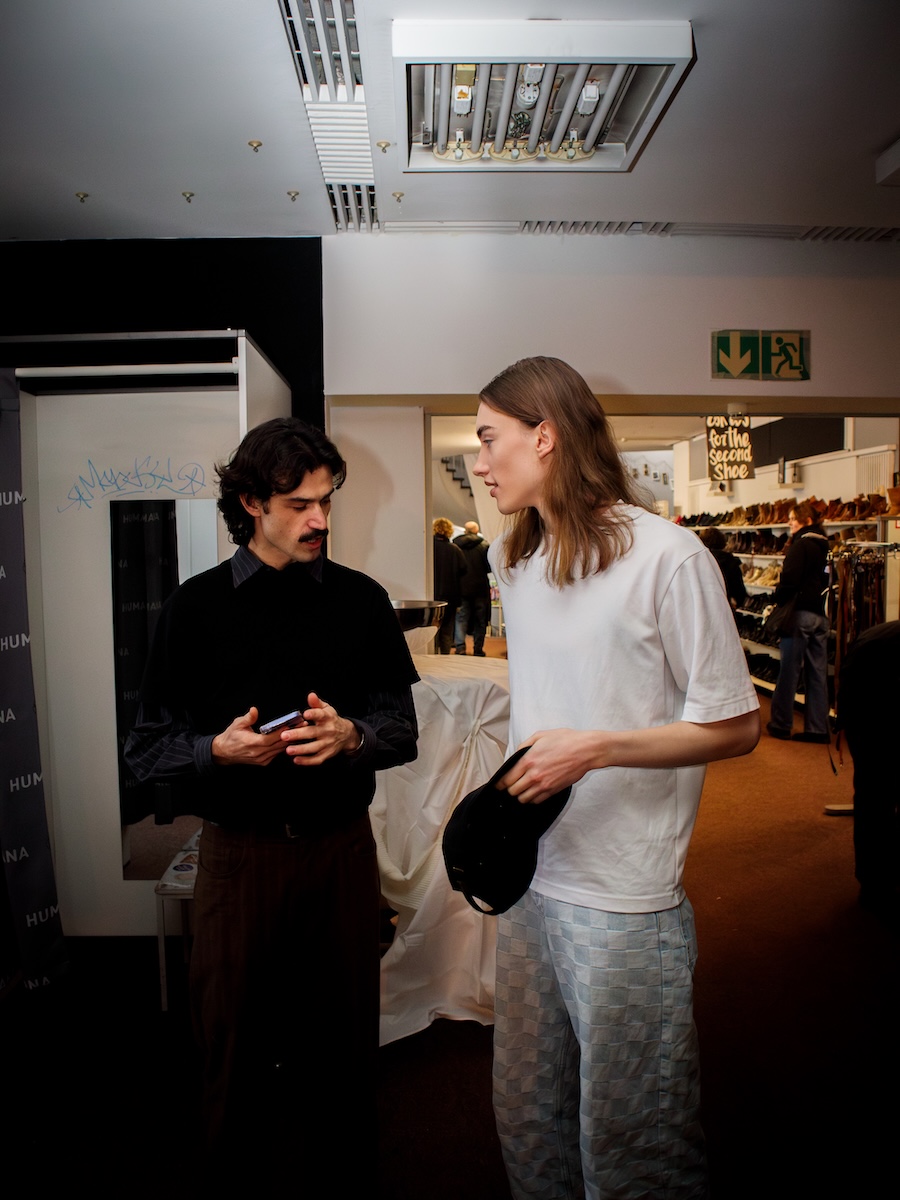 Held at the vibrant Humana Second Hand at Frankfurter Tor, the venue’s multi-level interior provided an evocative backdrop, echoing the brand’s philosophy of sustainability and circular fashion. KOLYA BOGATYREV creatively transforms discarded garments into striking visual narratives, inviting the audience to engage in a profound dialogue about the cyclical nature of waste and regeneration. In an age marked by the oversaturation of fast fashion, this collection emerges as a powerful statement against disposability, advocating for a future where creativity and awareness coexist symbiotically.