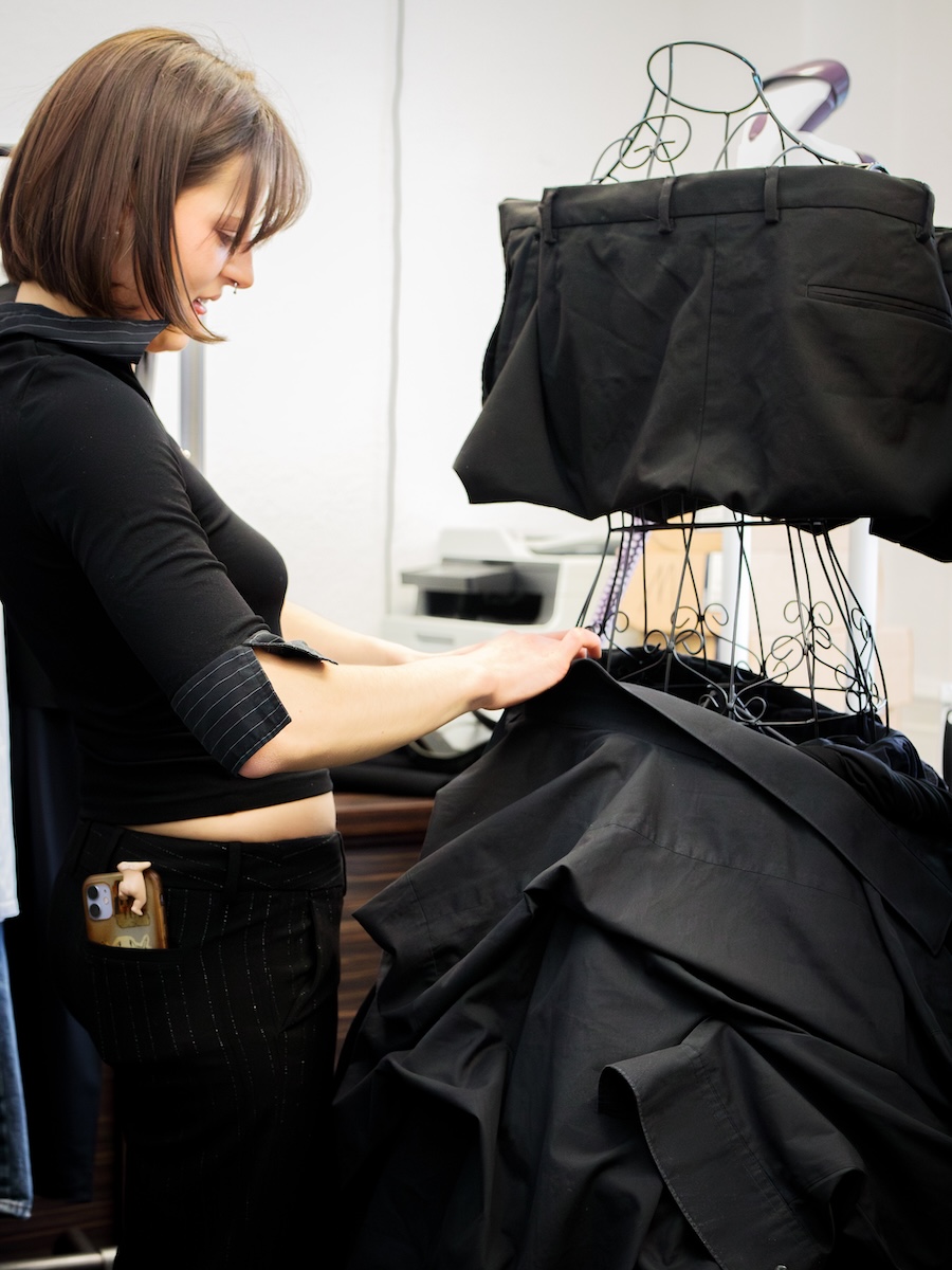 Founded in 2021 in Cherkassy, Ukraine, KOLYA BOGATYREV is rooted in a commitment to circularity and conscientious production. The heart of the brand lies in a custom-developed recycling system that melds traditional sewing techniques with a modern approach to upcycling. Each piece in this collection is crafted entirely from secondary materials; nothing is “new,” and what might typically be deemed waste is ingeniously repurposed into fashion statements that challenge the linearity of production.