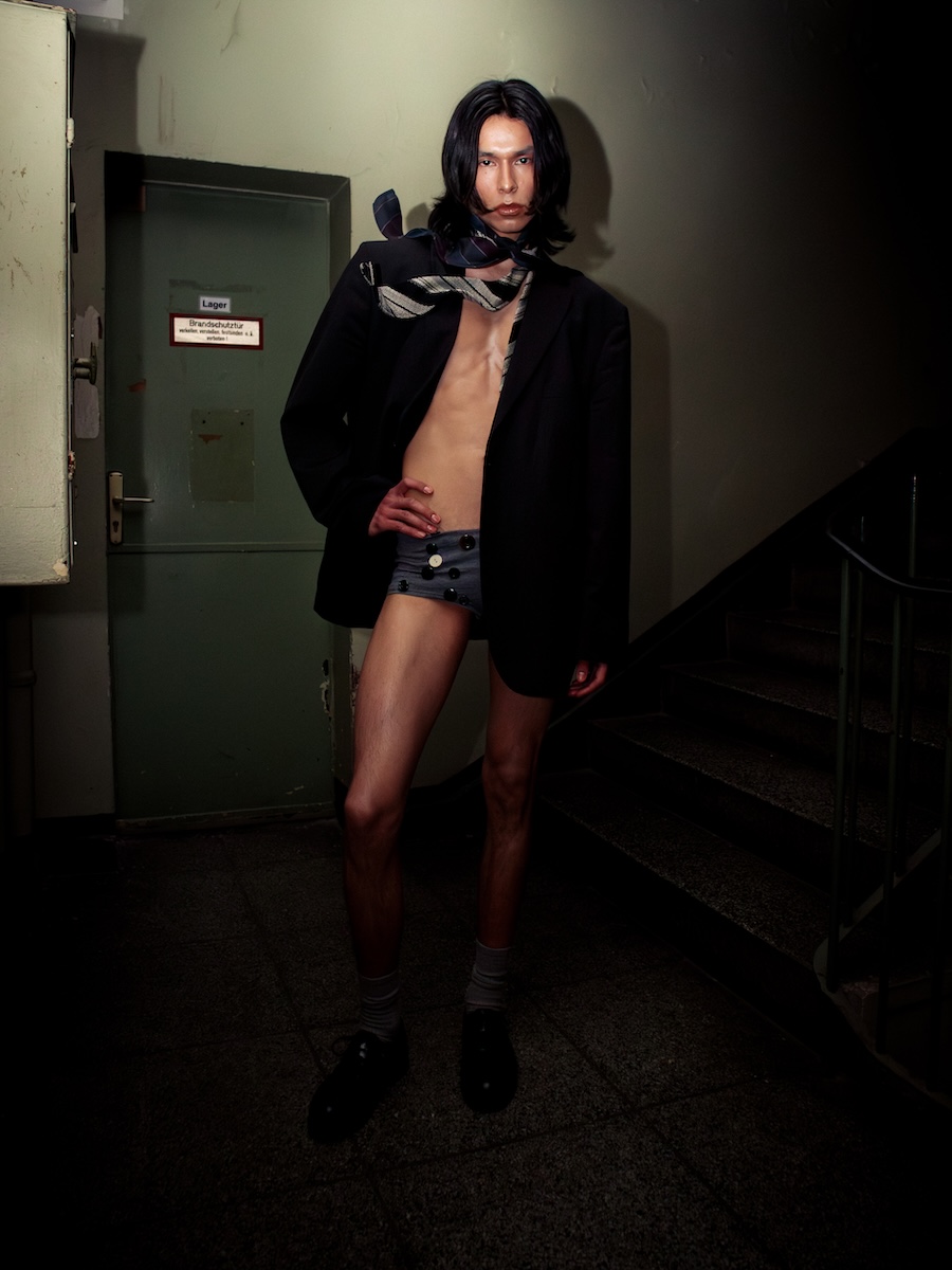 Photographed skillfully by Sasha Zhu, the visual narrative of the collection enhances its message of renewal and artistic responsibility. The garments juxtapose elements of formality and rebellion, reminiscent of classroom uniforms like crisp white shirts and socks, yet imbued with a sense of mischief that defies convention. This collection is for those who have navigated rigid structures and have chosen to step beyond them, embodying a new narrative that celebrates individuality and conscious choices.