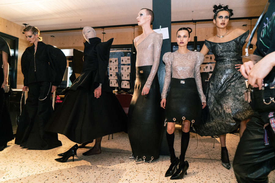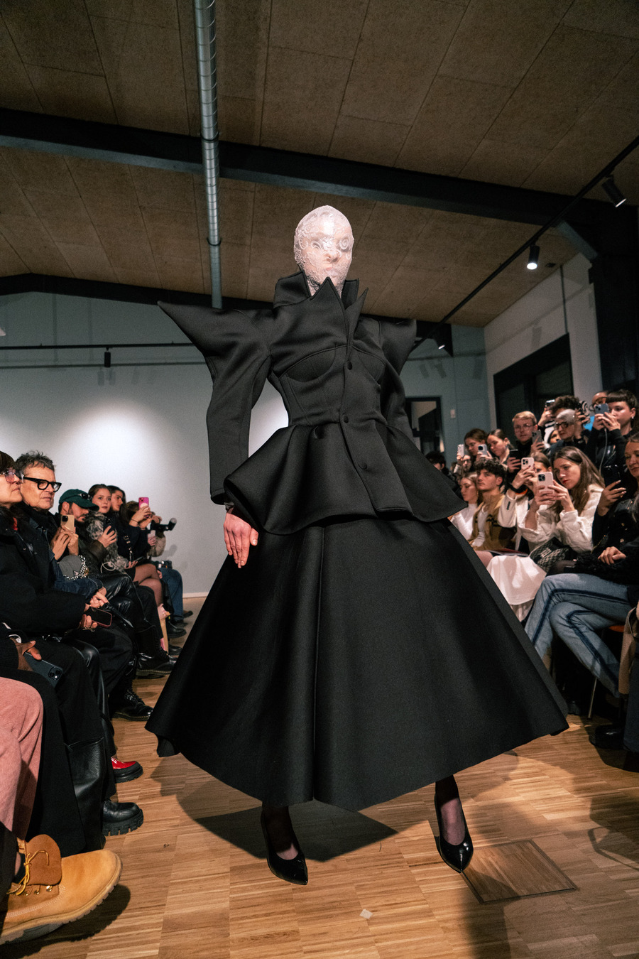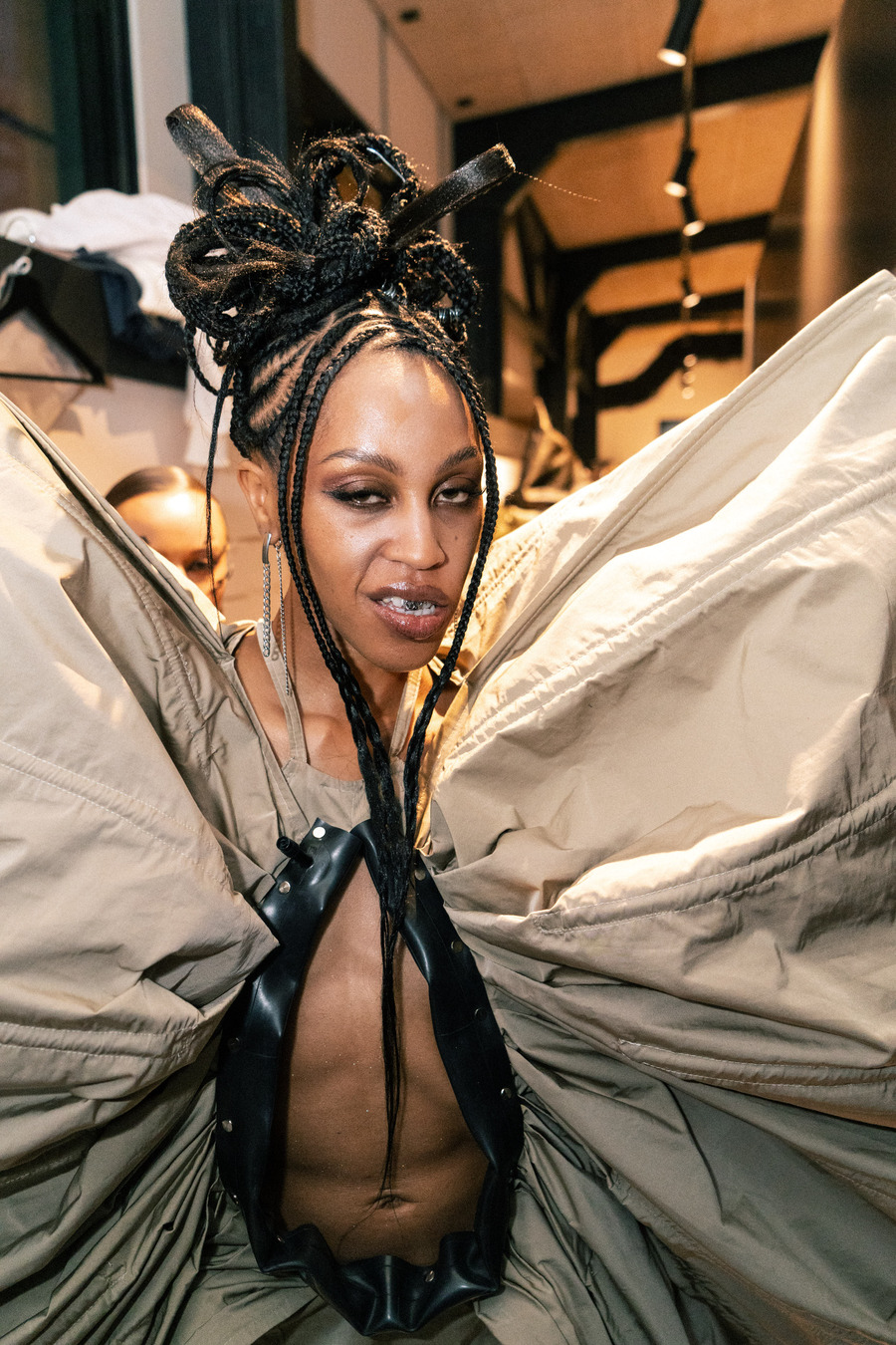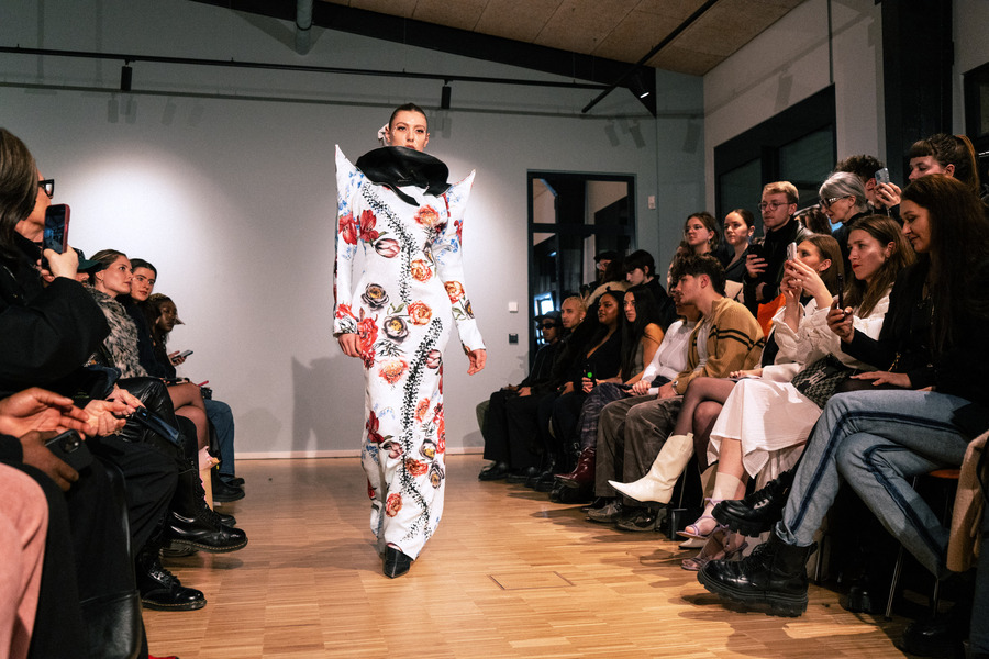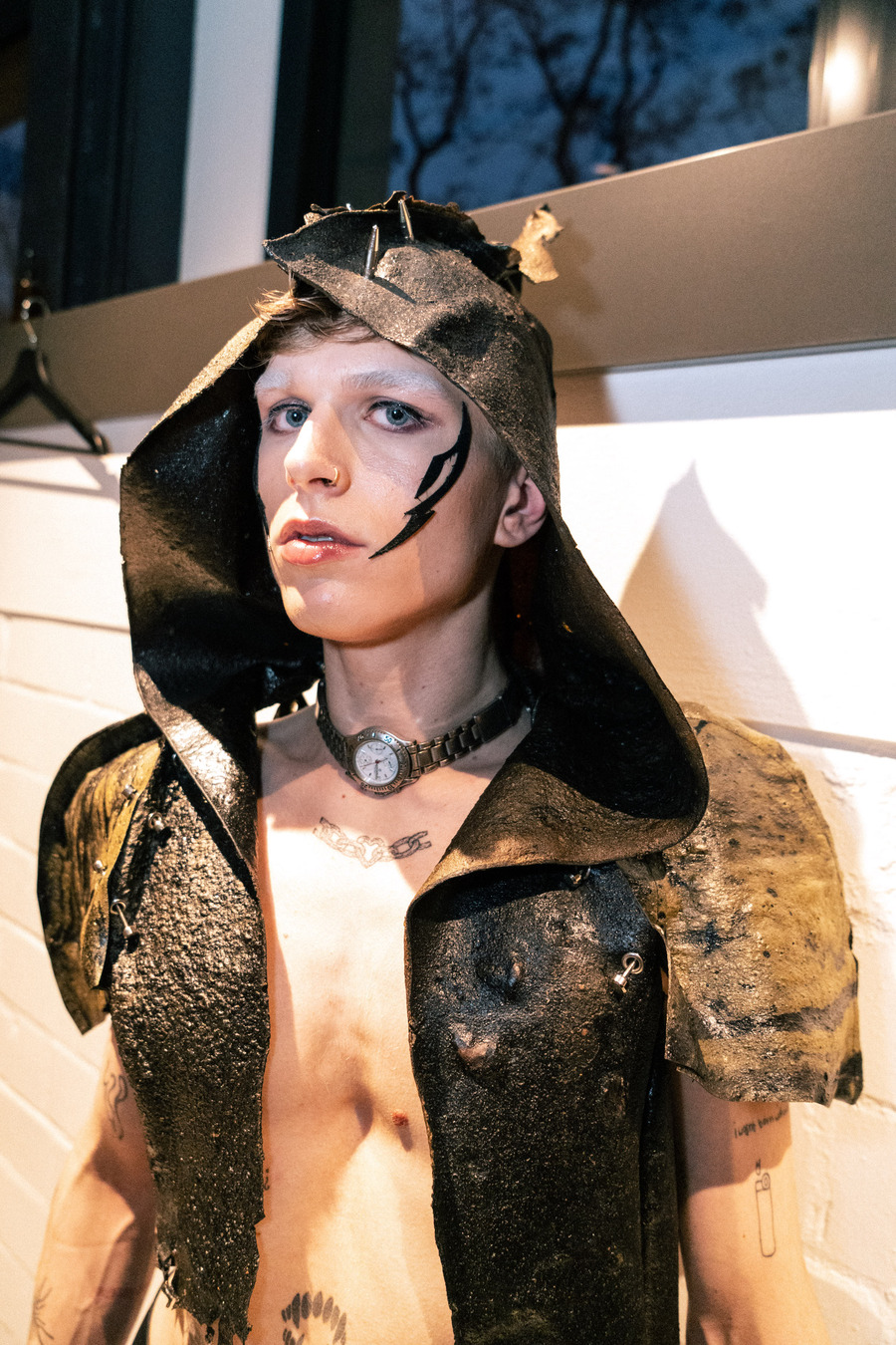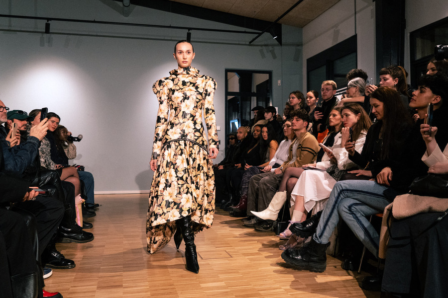 The jewellery in this collection, created by Genevieve-The Label and St. Grillz, along with hair and makeup accessories, utilize deadstock fabric and discarded tyre tubes. Accessories incorporate advanced 3D technology, developed by a talented team including Reem Jarhum, Chie Yamamoto, Takuya Usami, and Béanne Da Costa. Our hair and makeup designs also promote our commitment to upcycling and creativity. Additionally, the culinary offerings for the cast and crew reflect thoughtfulness, featuring organic, vegetarian, and vegan menus curated by Home of Dumpling and Spree Fumée. The venue supports sustainability with refillable drinking water faucets, minimizing single-use plastics. Accessibility is prioritized in the show design, including features such as a quiet zone to accommodate diverse needs.