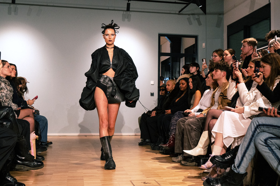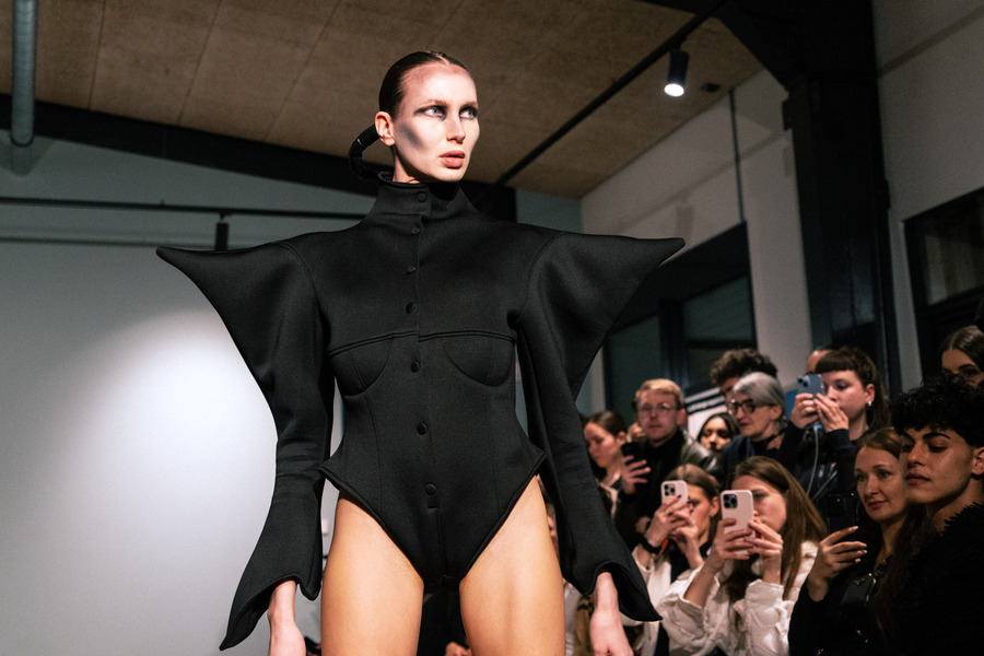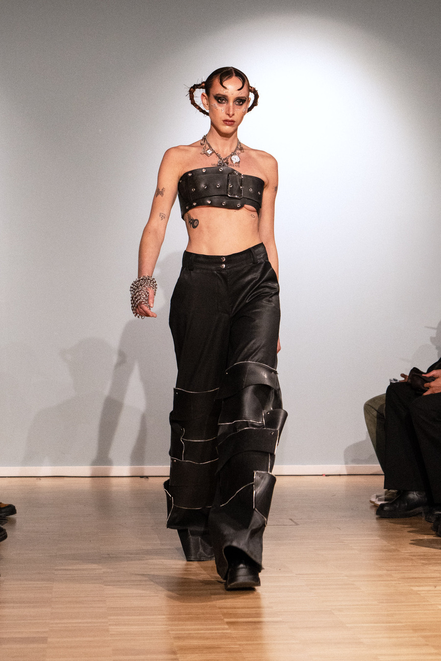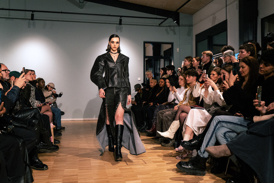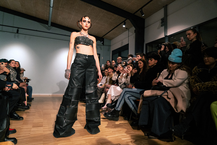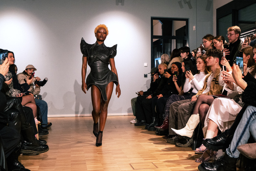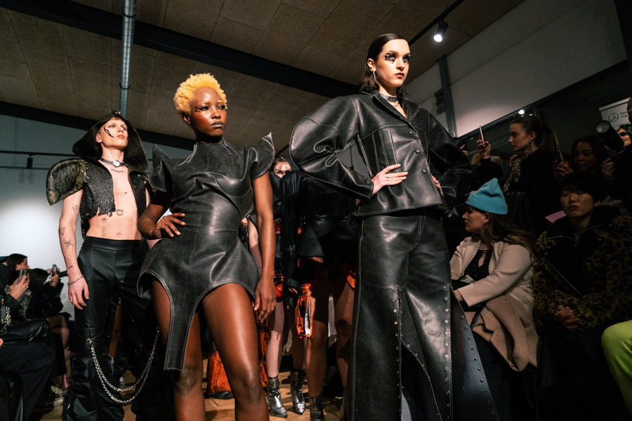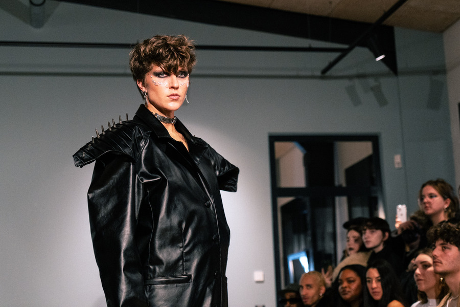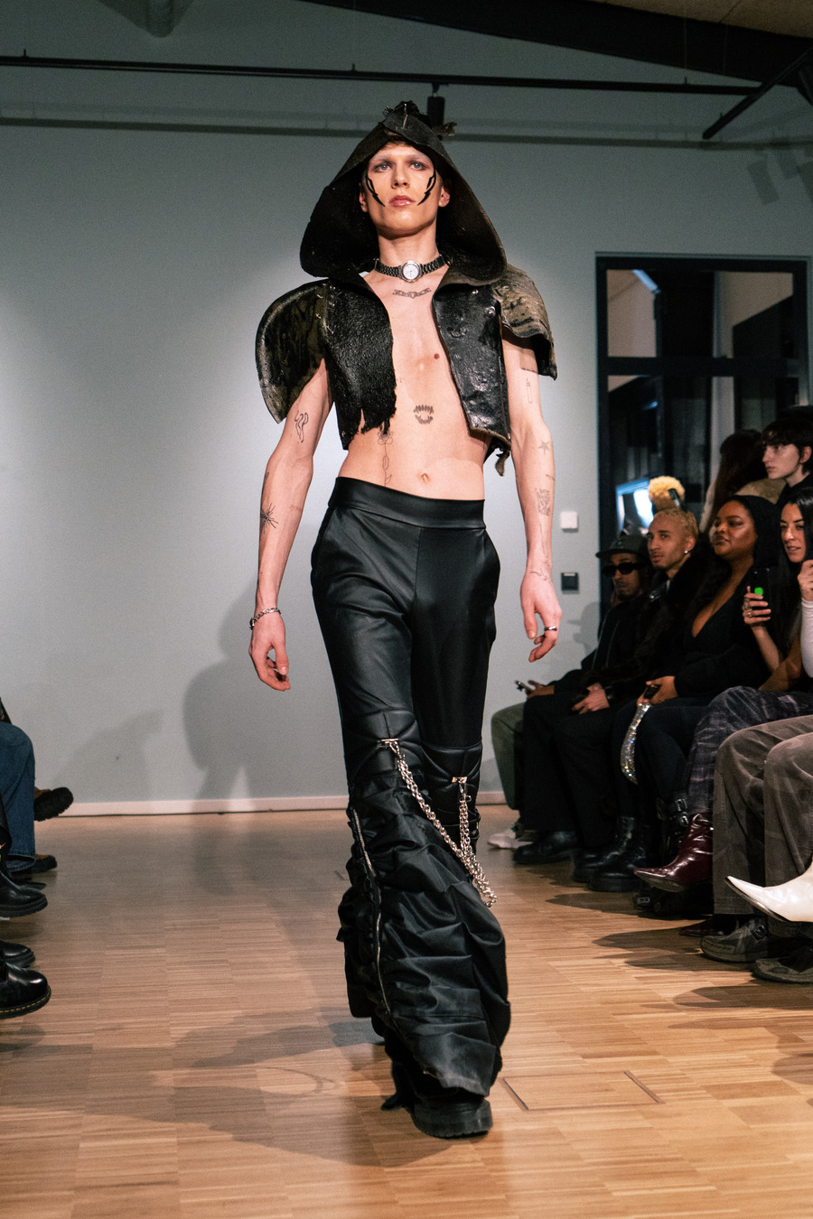 Berlin Fashion Week! ELYSIUM by Maria Chany is an innovative collection that emphasizes the transformation of waste into conscious fashion garments and accessories. This collection includes jackets, dresses, outerwear, and statement pieces made from reclaimed rubber, bio-materials derived from nuts, and deadstock fabrics. ELYSIUM merges rugged industrial elements with sleek, modern silhouettes, showcasing Maria Chany’s forward-thinking design aesthetic.