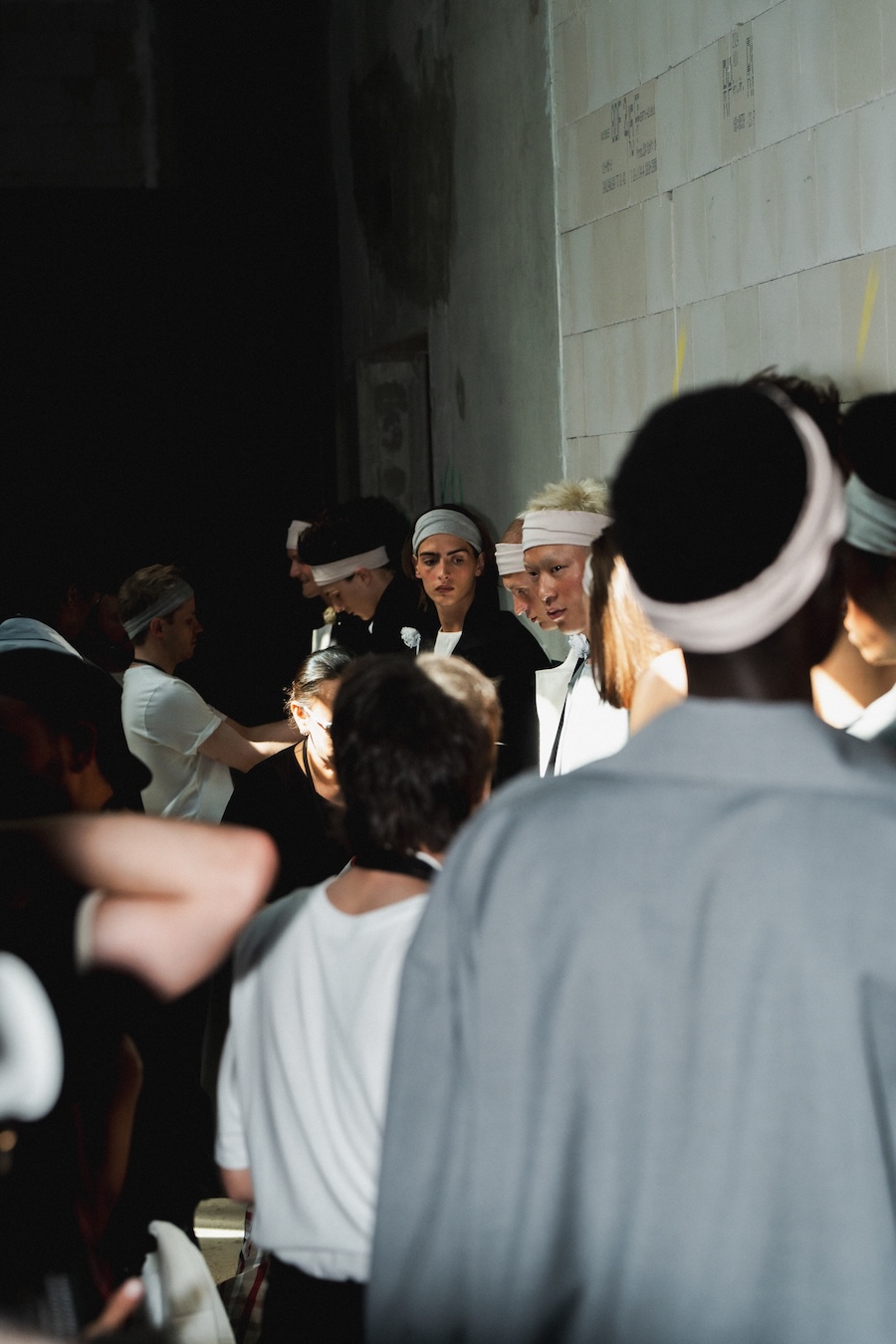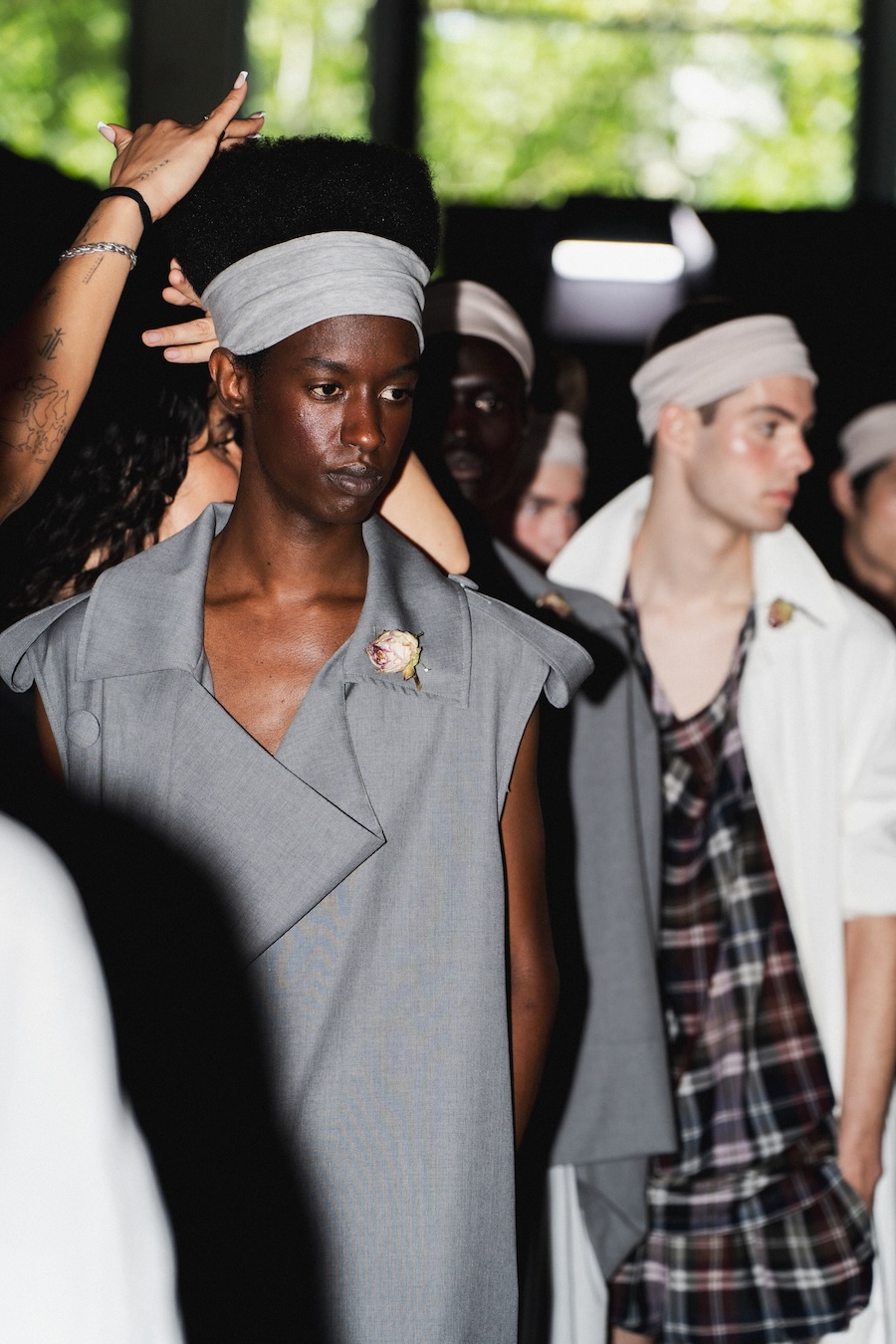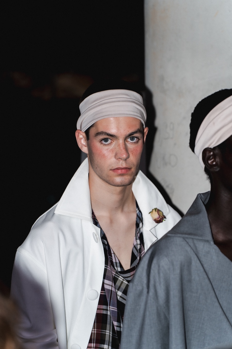 Photographer Shin Jeong Hoon graciously delved backstage for us, capturing the essence of this deeply intimate presentation. This collection is not just a showcase of fashion; it’s a quiet revolution that honours the lost narratives of queer youth, stories relegated to the shadows of time, obscured by shame and silence. MARKE weaves together elements of memory and fantasy to conjure a summer that should have been but never was.