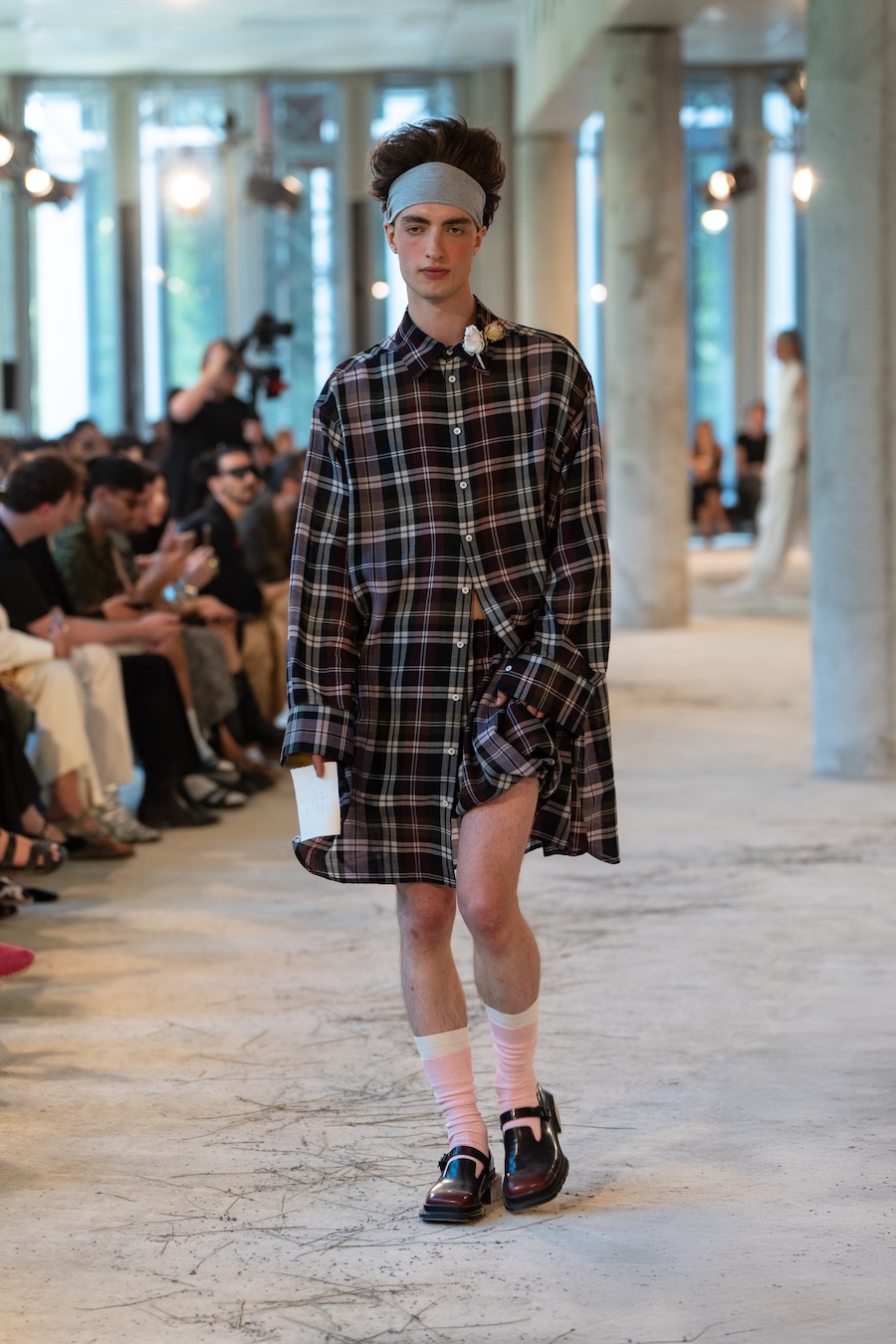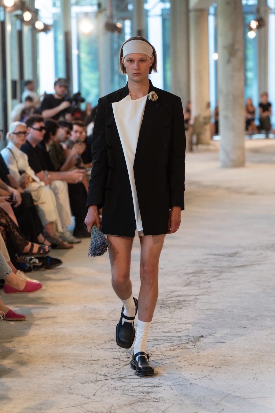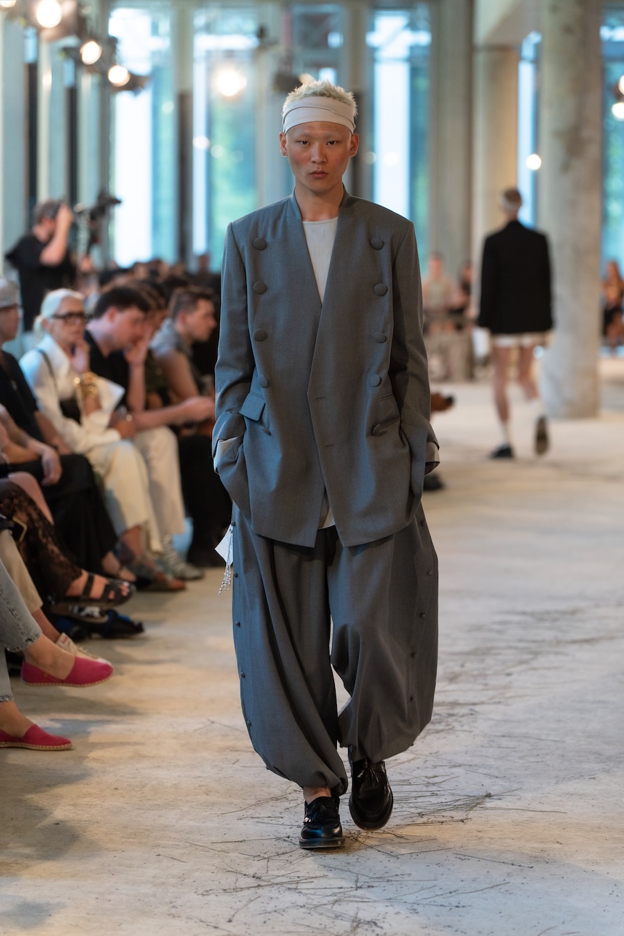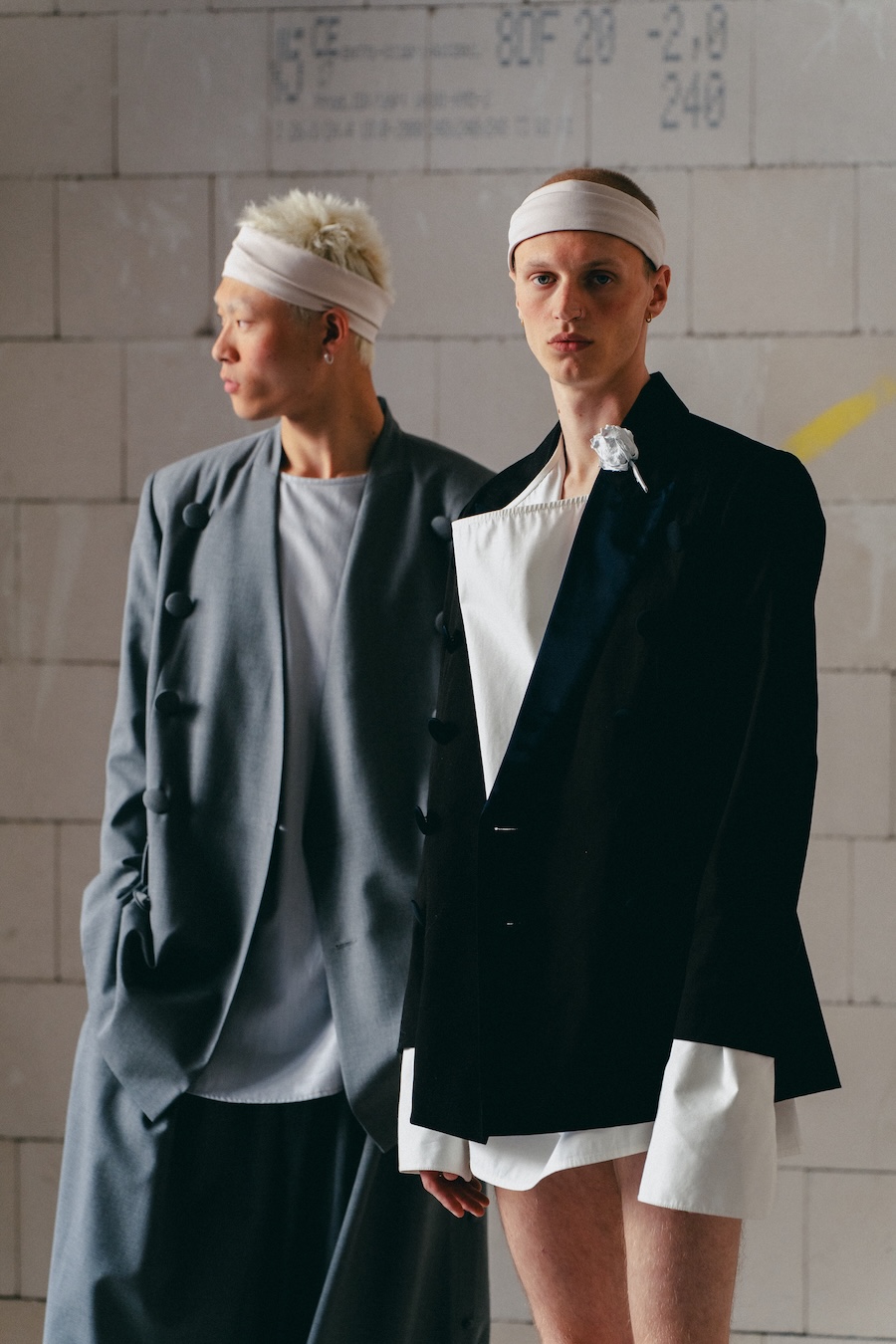 Photographer Shin Jeong Hoon graciously delved backstage for us, capturing the essence of this deeply intimate presentation. This collection is not just a showcase of fashion; it’s a quiet revolution that honours the lost narratives of queer youth, stories relegated to the shadows of time, obscured by shame and silence. MARKE weaves together elements of memory and fantasy to conjure a summer that should have been but never was.