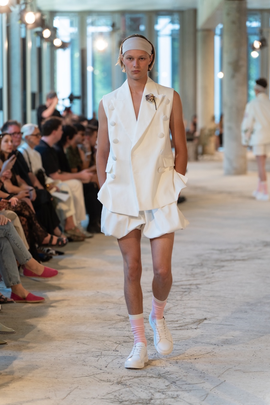 Through The Summer I Never Had, MARKE offers more than simply a collection; they present a powerful reclamation, an invitation to remember, or perhaps to imagine, the summers denied to queer youth. It is, undeniably, a love letter inscribed in fabric, motion, and sound. Presented as part of BERLIN CONTEMPORARY during BERLIN FASHION WEEK, this show is proudly supported by the Berlin Senate Department for Economic Affairs, Energy, and Public Enterprises in collaboration with the Fashion Council Germany and produced by NEWEST. Special thanks to LA BIOSTHETIQUE, FÜRST, and DR. MARTENS for their invaluable support.