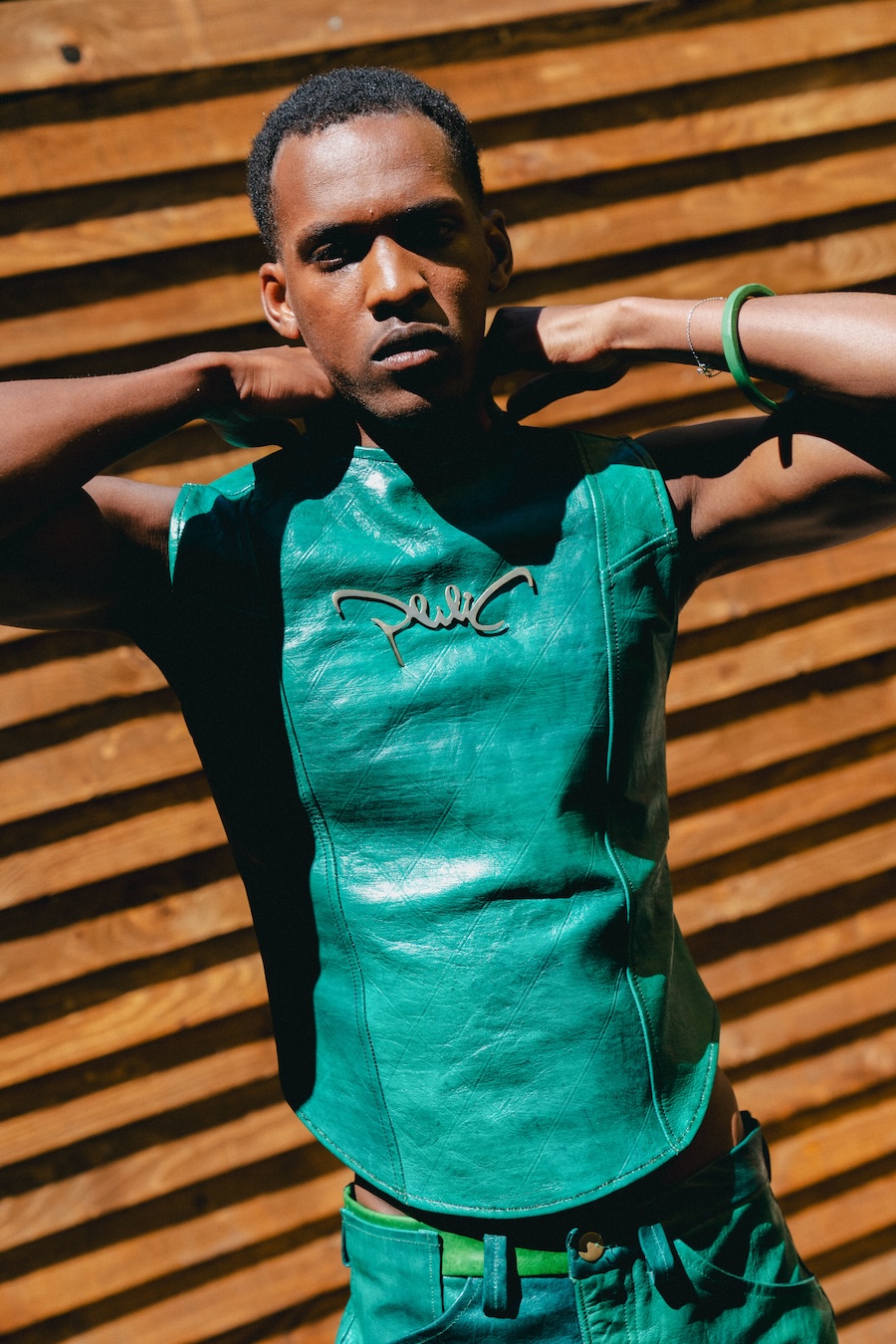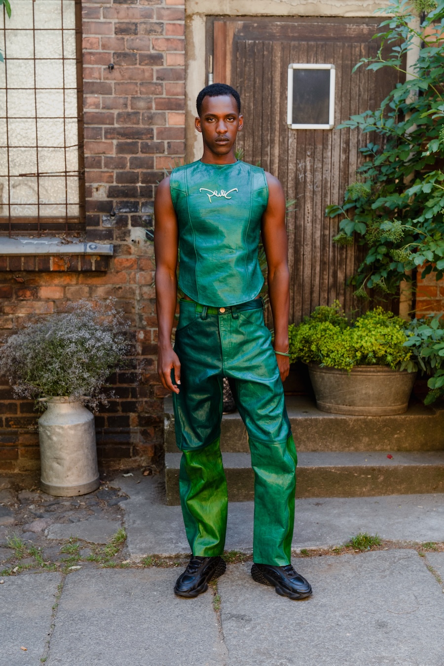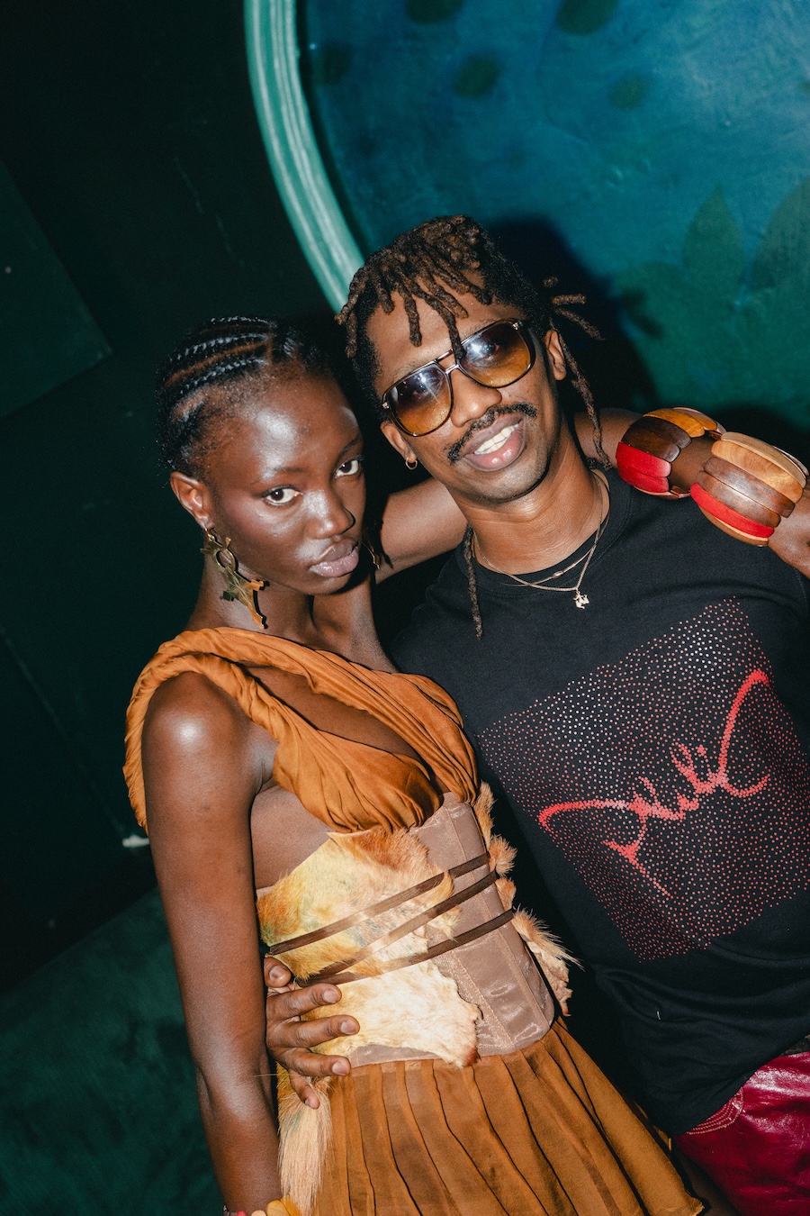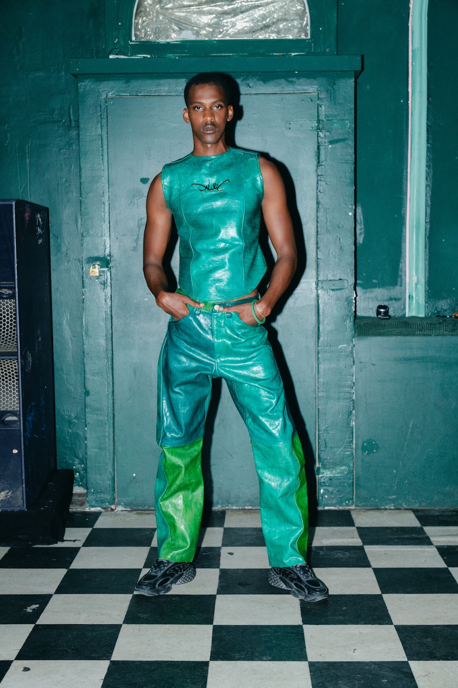 Craftsmanship remains at the core of PALMWINE IceCREAM’s identity. Each piece is meticulously handmade in Ghana, showcasing a deep respect for tradition while embracing innovation. A standout this season is the naturally dyed leather sourced from northern Ghana, meticulously coloured using tree bark and sun-drying techniques honed through generations. We also see the introduction of handwoven cotton, airy organza, and sumptuous deadstock fabrics.